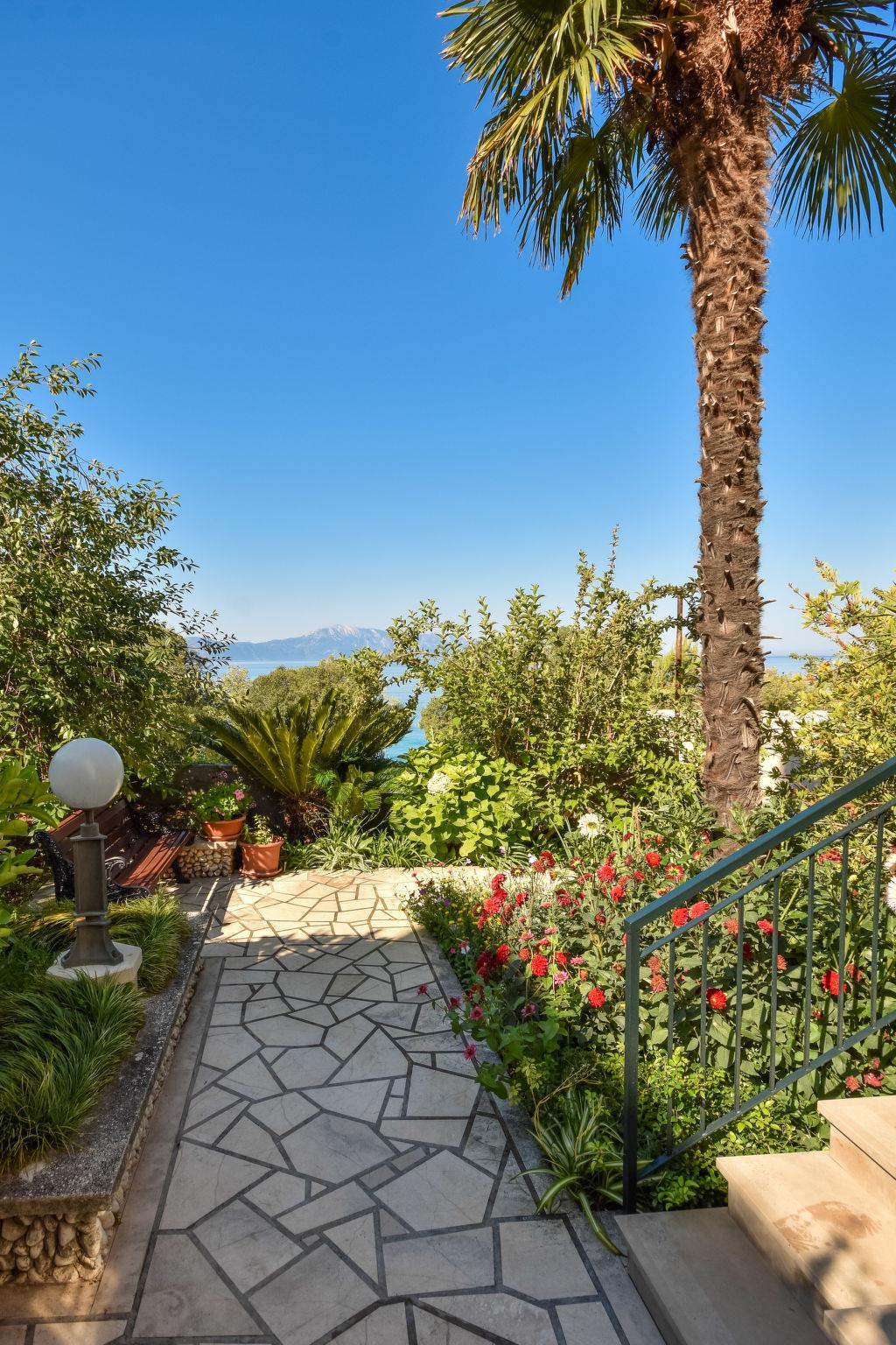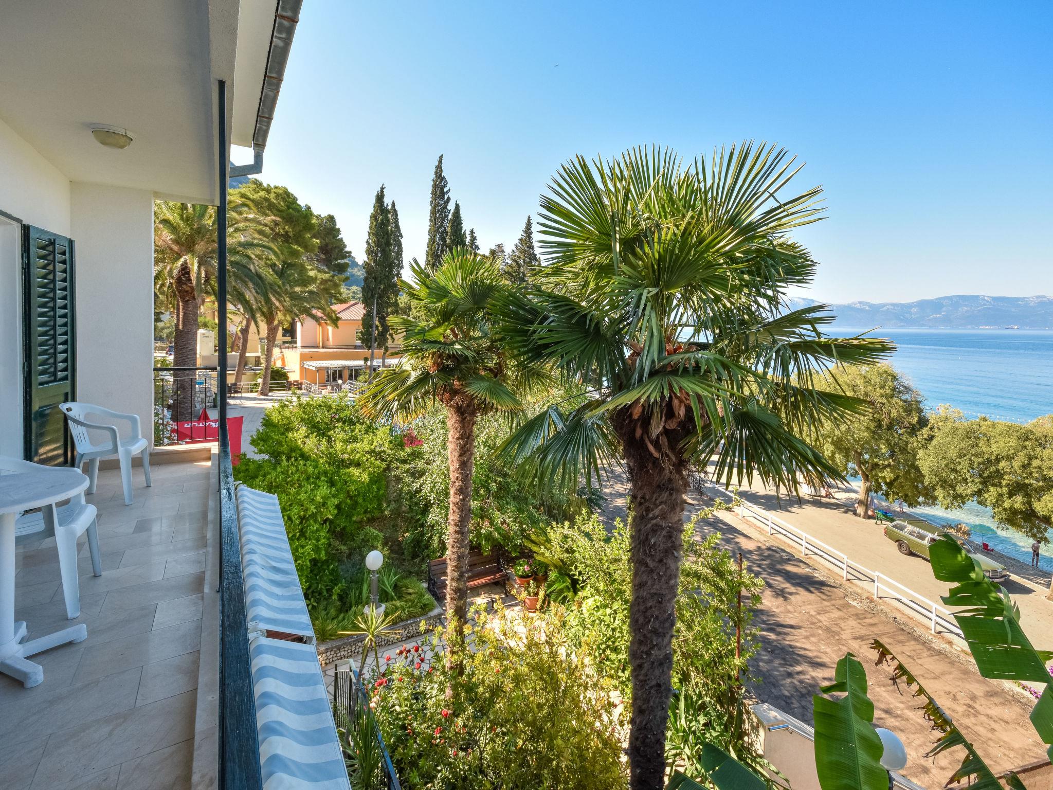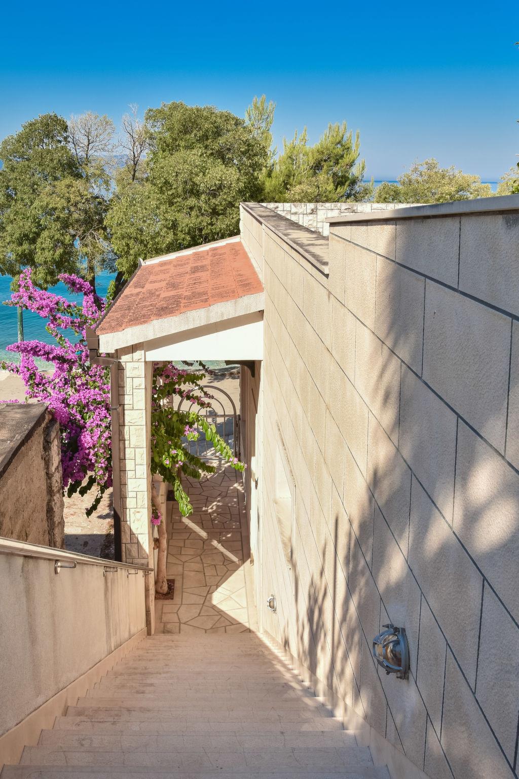 Single-family house "Lui", 2 storeys. In the resort 500 m from the centre of Gradac, in a sunny position, 5 m from the sea, 5 m from the beach, direct access to the beach, in a pedestrian area. Private: property 500 m2 (fenced), garden. In the house: internet access. Parking (for 2 cars) at 100 m. Supermarket 200 m, restaurant 5 m, 8 minute walk to the centre, bus stop 200 m, pebble beach 5 m. Please note: Loading and unloading of baggage is possible at the holiday house. The unit consists of 2 apartments, rented as one unit.