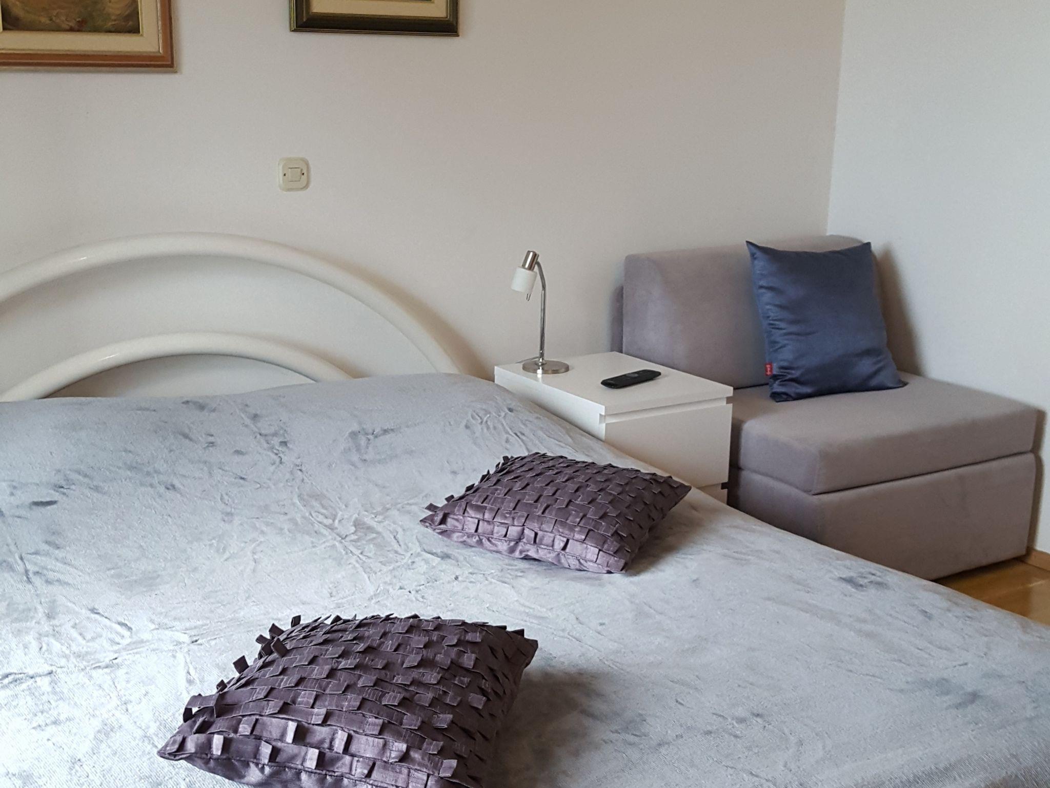 Ferienwohnung bietet Platz für 4 Gäste. Die Betten sind in Schlafzimmern, die es 1 gibt, und in Wohnzimmer, innerhalb einer Gesamtfläche von 36m2, angeordnet. Die Gäste haben eine eigene Terrasse zur Verfügung, auf der sie in warmen Sommernächten genießen können. Das Apartment bietet Meerblick. IM PREIS INBEGRIFFEN: Kurtaxe, Endreinigung, Klimatisierung, Parkplatz, Internet, Kinderbett, Bügeleisen, Bügelbrett, Föhn. VERBINDLICHE ZUSÄTZLICHE KOSTEN: Aufzahlung für Kurzaufenthalte (prozentualer Zuschlag pro Nächtigungsanzahl: 30% - 1, 20% - 2, 10% - 3). UNVERBINDLICHE ZUSÄTZLICHE KOSTEN: Zusatzbett (10,00 € pro Nacht). Die Verfügbarkeit zusätzlicher Dienstleistungen in Ihrem reservierten Termin und die Preise derselben (falls nicht aufgeführt) müssen im Voraus überprüft werden. Zusätzliche Dienstleistungen die in der Zahlungsaufforderung nicht aufgeführt sind werden direkt beim Vermieter bezahlt, angenommen der Gast nutzt auch diese. Ermäßigung auf den Grundpreis: Gratistag 14=13 (bei einem Aufenthalt von 14 Tagen oder mehr erhalten Sie einen Gratistag für den Aufenthalt bis 31.12.26).