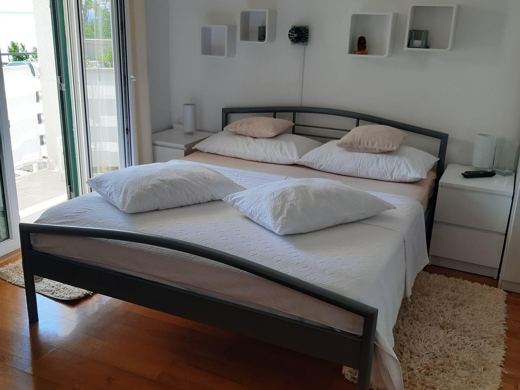 Studio bietet Platz für 2 Gäste. Die Betten sind in Schlafzimmern, die es 1 gibt, innerhalb einer Gesamtfläche von 24m2, angeordnet. Die Gäste haben einen eigenen Balkon zur Verfügung, auf der sie in warmen Sommernächten genießen können. Das Studio-Apartment bietet Meerblick. IM PREIS INBEGRIFFEN: Kurtaxe, Endreinigung, Klimatisierung, Parkplatz, Internet, Kinderbett, Bügeleisen, Bügelbrett, Föhn. VERBINDLICHE ZUSÄTZLICHE KOSTEN: Aufzahlung für Kurzaufenthalte (prozentualer Zuschlag pro Nächtigungsanzahl: 30% - 1, 20% - 2, 10% - 3). Die Verfügbarkeit zusätzlicher Dienstleistungen in Ihrem reservierten Termin und die Preise derselben (falls nicht aufgeführt) müssen im Voraus überprüft werden. Zusätzliche Dienstleistungen die in der Zahlungsaufforderung nicht aufgeführt sind werden direkt beim Vermieter bezahlt, angenommen der Gast nutzt auch diese. Ermäßigung auf den Grundpreis: Gratistag 14=13 (bei einem Aufenthalt von 14 Tagen oder mehr erhalten Sie einen Gratistag für den Aufenthalt bis 31.12.26).