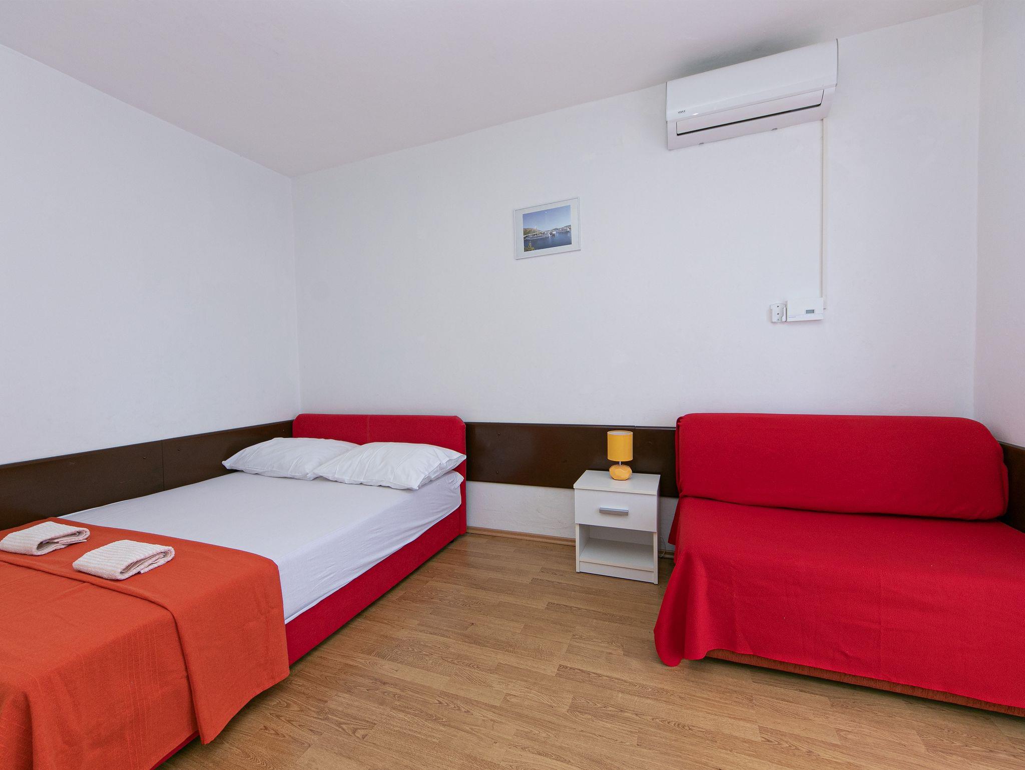 Ferienwohnung bietet Platz für 3 Gäste. Die Betten sind in Schlafzimmern, die es 1 gibt, und in Esszimmer, innerhalb einer Gesamtfläche von 26m2, angeordnet. Die Gäste haben einen eigenen Balkon zur Verfügung, auf der sie in warmen Sommernächten genießen können. Das Apartment bietet Meerblick. Es ist erlaubt, Speisen auf dem Gemeinschafts-Grill vorzubereiten. IM PREIS INBEGRIFFEN: Kurtaxe, Endreinigung, Parkplatz, Internet, Bügeleisen, Bügelbrett, Föhn, tragbarer Grill. VERBINDLICHE ZUSÄTZLICHE KOSTEN: Aufzahlung für Kurzaufenthalte (prozentualer Zuschlag pro Nächtigungsanzahl: 30% - 1, 20% - 2, 10% - 3). UNVERBINDLICHE ZUSÄTZLICHE KOSTEN: Klimatisierung (0,80 € pro Stunde). Die Verfügbarkeit zusätzlicher Dienstleistungen in Ihrem reservierten Termin und die Preise derselben (falls nicht aufgeführt) müssen im Voraus überprüft werden. Zusätzliche Dienstleistungen die in der Zahlungsaufforderung nicht aufgeführt sind werden direkt beim Vermieter bezahlt, angenommen der Gast nutzt auch diese. Ermäßigung auf den Grundpreis: Aktion (erzielen Sie während der Buchung zusätzliche Ermäßigung von 10%).