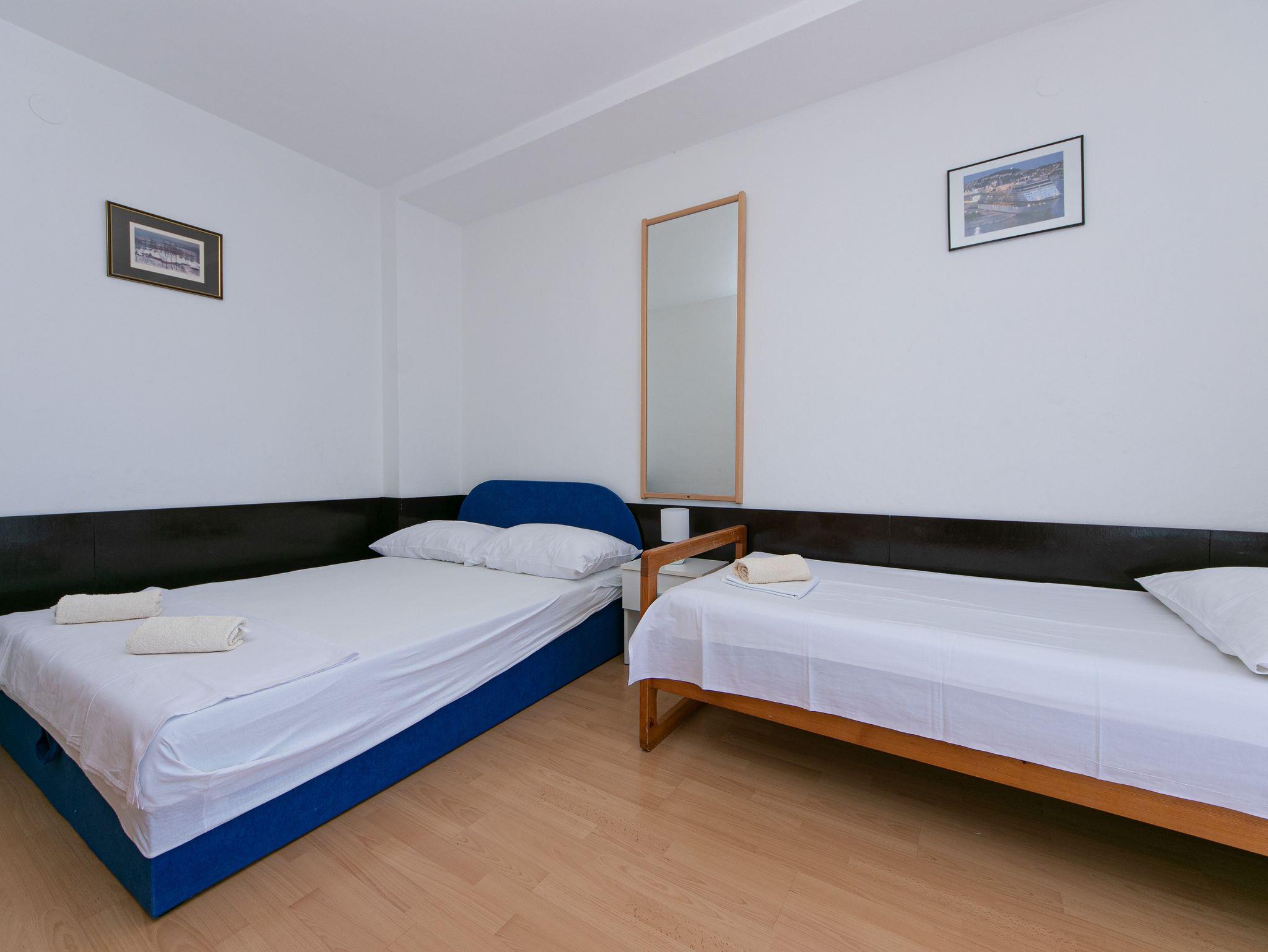 Ferienwohnung bietet Platz für 3 Gäste. Die Betten sind in Schlafzimmern, die es 1 gibt, innerhalb einer Gesamtfläche von 28m2, angeordnet. Die Gäste haben einen eigenen Balkon zur Verfügung, auf der sie in warmen Sommernächten genießen können. Das Apartment bietet Meerblick. Es ist erlaubt, Speisen auf dem Gemeinschafts-Grill vorzubereiten. IM PREIS INBEGRIFFEN: Kurtaxe, Endreinigung, Parkplatz, Internet, Bügeleisen, Bügelbrett, Föhn, tragbarer Grill. VERBINDLICHE ZUSÄTZLICHE KOSTEN: Aufzahlung für Kurzaufenthalte (prozentualer Zuschlag pro Nächtigungsanzahl: 30% - 1, 20% - 2, 10% - 3). UNVERBINDLICHE ZUSÄTZLICHE KOSTEN: Klimatisierung (0,80 € pro Stunde). Die Verfügbarkeit zusätzlicher Dienstleistungen in Ihrem reservierten Termin und die Preise derselben (falls nicht aufgeführt) müssen im Voraus überprüft werden. Zusätzliche Dienstleistungen die in der Zahlungsaufforderung nicht aufgeführt sind werden direkt beim Vermieter bezahlt, angenommen der Gast nutzt auch diese.