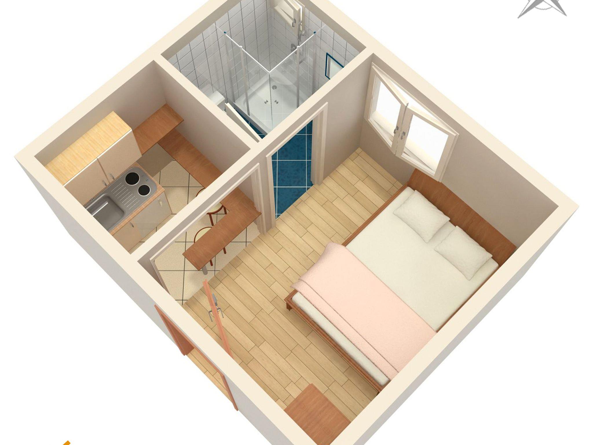 Studio bietet Platz für 2 Gäste. Die Betten sind in Schlafzimmern, die es 1 gibt, innerhalb einer Gesamtfläche von 10m2, angeordnet. Es ist erlaubt, Speisen auf dem Gemeinschafts-Grill vorzubereiten. Die reservierte Unterkunftseinheit hat keinen Balkon und keine Terrasse. IM PREIS INBEGRIFFEN: Kurtaxe, Endreinigung, Parkplatz, Internet, Bügeleisen, Bügelbrett, Föhn, tragbarer Grill. VERBINDLICHE ZUSÄTZLICHE KOSTEN: Aufzahlung für Kurzaufenthalte (prozentualer Zuschlag pro Nächtigungsanzahl: 30% - 1, 20% - 2, 10% - 3). Die Verfügbarkeit zusätzlicher Dienstleistungen in Ihrem reservierten Termin und die Preise derselben (falls nicht aufgeführt) müssen im Voraus überprüft werden. Zusätzliche Dienstleistungen die in der Zahlungsaufforderung nicht aufgeführt sind werden direkt beim Vermieter bezahlt, angenommen der Gast nutzt auch diese.