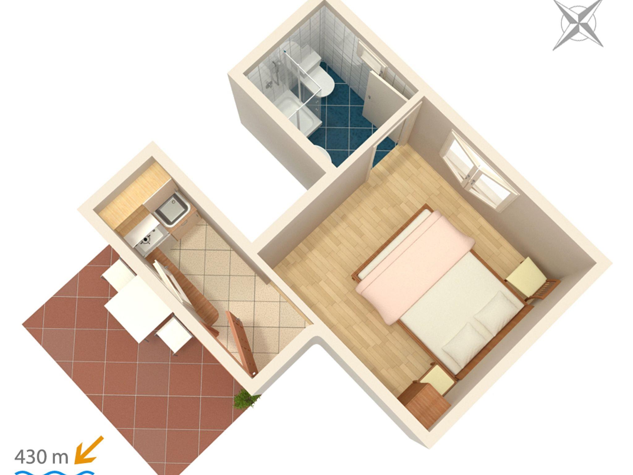 Studio bietet Platz für 2 Gäste. Die Betten sind in Schlafzimmern, die es 1 gibt, innerhalb einer Gesamtfläche von 16m2, angeordnet. Das Studio-Apartment bietet Meerblick. Es ist erlaubt, Speisen auf dem Gemeinschafts-Grill vorzubereiten. Die reservierte Unterkunftseinheit verfügt über einen gemeinsame Terrasse. IM PREIS INBEGRIFFEN: Kurtaxe, Endreinigung, Parkplatz, Internet, Bügeleisen, Bügelbrett, Föhn, tragbarer Grill. VERBINDLICHE ZUSÄTZLICHE KOSTEN: Aufzahlung für Kurzaufenthalte (prozentualer Zuschlag pro Nächtigungsanzahl: 30% - 1, 20% - 2, 10% - 3). UNVERBINDLICHE ZUSÄTZLICHE KOSTEN: Klimatisierung (0,80 € pro Stunde). Die Verfügbarkeit zusätzlicher Dienstleistungen in Ihrem reservierten Termin und die Preise derselben (falls nicht aufgeführt) müssen im Voraus überprüft werden. Zusätzliche Dienstleistungen die in der Zahlungsaufforderung nicht aufgeführt sind werden direkt beim Vermieter bezahlt, angenommen der Gast nutzt auch diese.