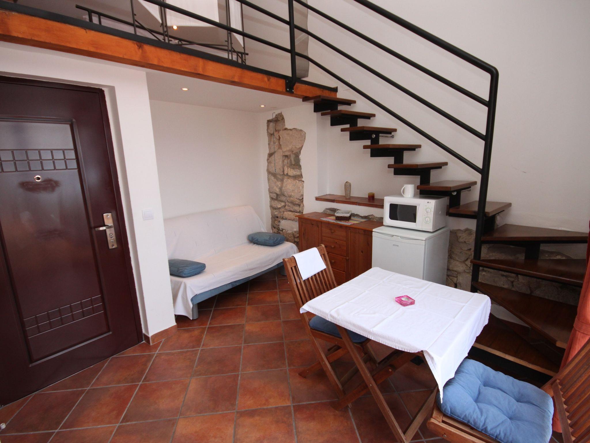Studio bietet Platz für 4 Gäste. Die Betten sind in Schlafzimmern, die es 1 gibt, und in Esszimmer, innerhalb einer Gesamtfläche von 28m2, angeordnet. Die Gäste haben einen eigenen Balkon zur Verfügung, auf der sie in warmen Sommernächten genießen können. Das Studio-Apartment bietet Meerblick. In der Unterkunftseinheit besteht die Möglichkeit des Mitbringens von Haustieren gegen Aufpreis. IM PREIS INBEGRIFFEN: Kurtaxe, Endreinigung, Klimatisierung, Parkplatz, Internet, Kinderbett, Bügeleisen, Föhn. VERBINDLICHE ZUSÄTZLICHE KOSTEN: Aufzahlung für Kurzaufenthalte (prozentualer Zuschlag pro Nächtigungsanzahl: 30% - 1, 20% - 2, 10% - 3). UNVERBINDLICHE ZUSÄTZLICHE KOSTEN: Wäschewaschen (5,00 € Waschen), Haustiere (5,00 € pro Nacht). Die Verfügbarkeit zusätzlicher Dienstleistungen in Ihrem reservierten Termin und die Preise derselben (falls nicht aufgeführt) müssen im Voraus überprüft werden. Zusätzliche Dienstleistungen die in der Zahlungsaufforderung nicht aufgeführt sind werden direkt beim Vermieter bezahlt, angenommen der Gast nutzt auch diese.