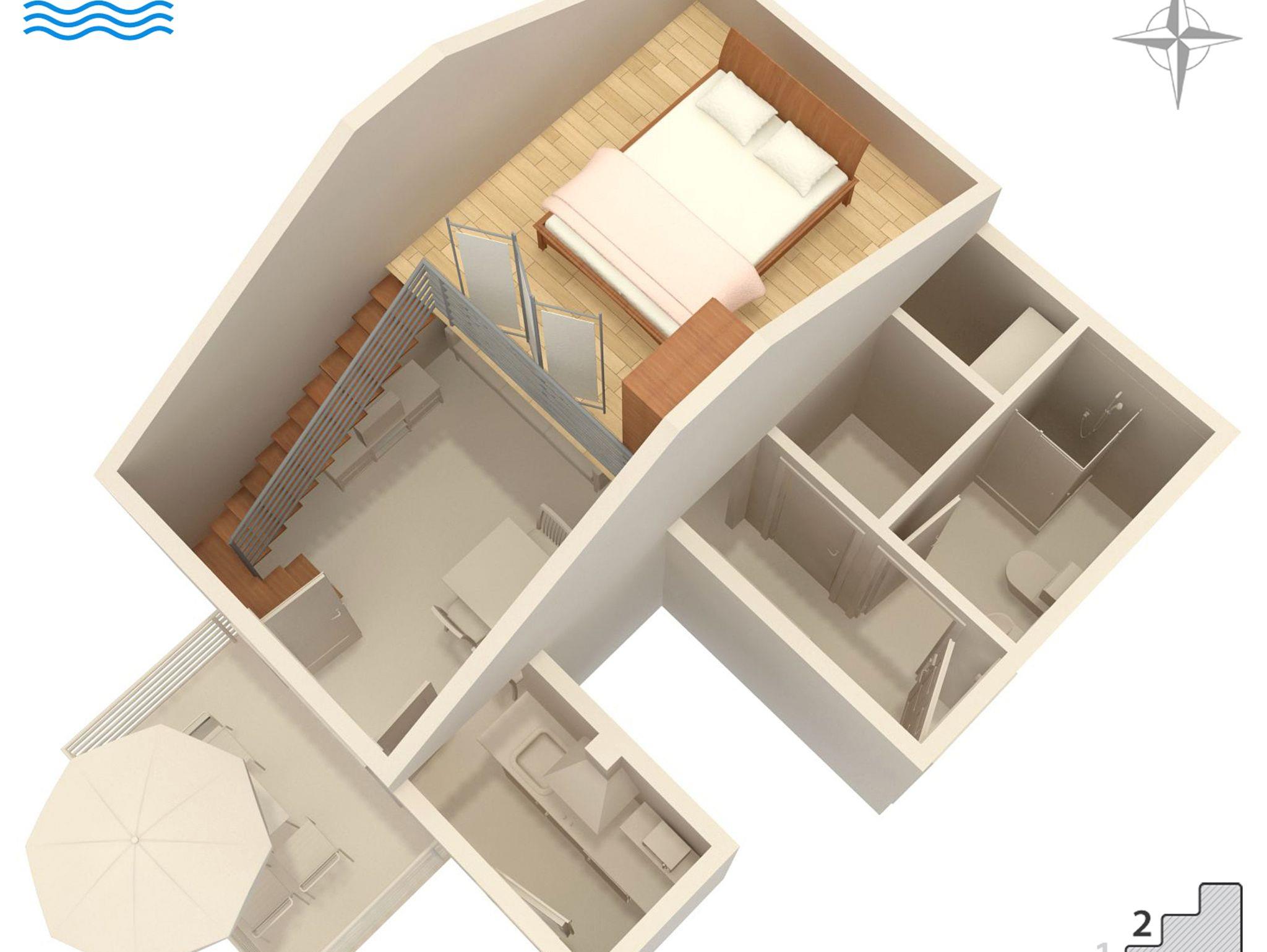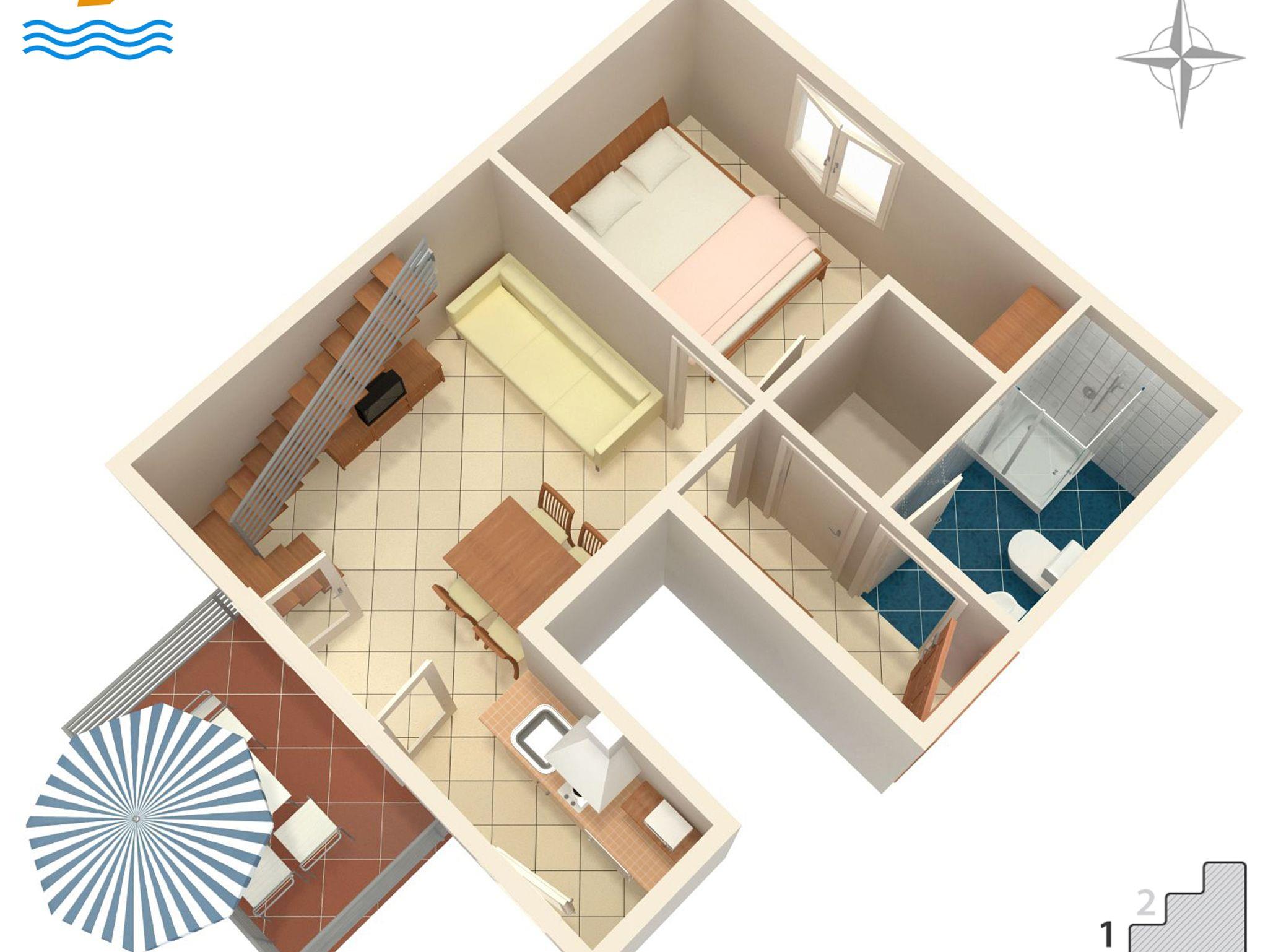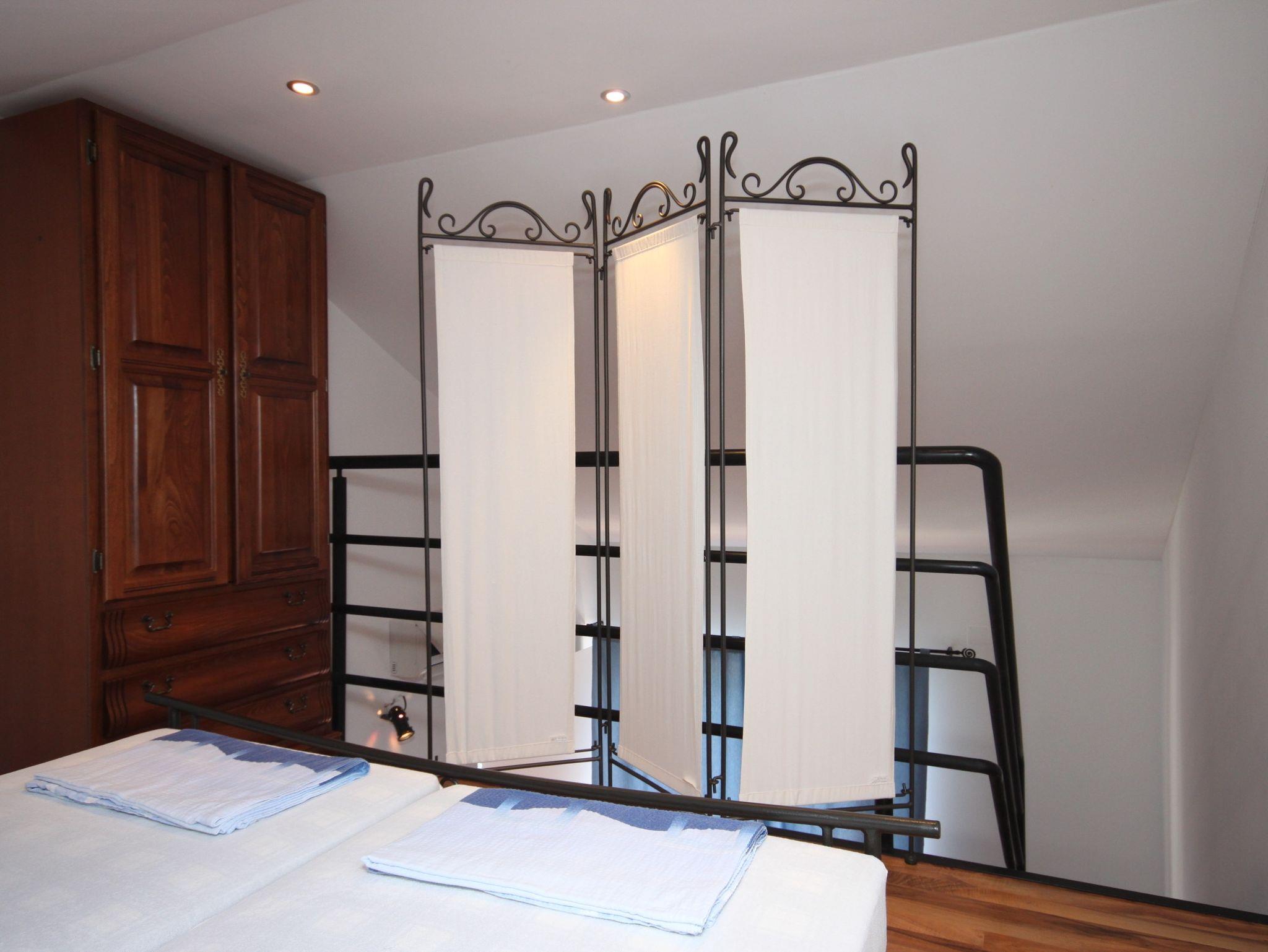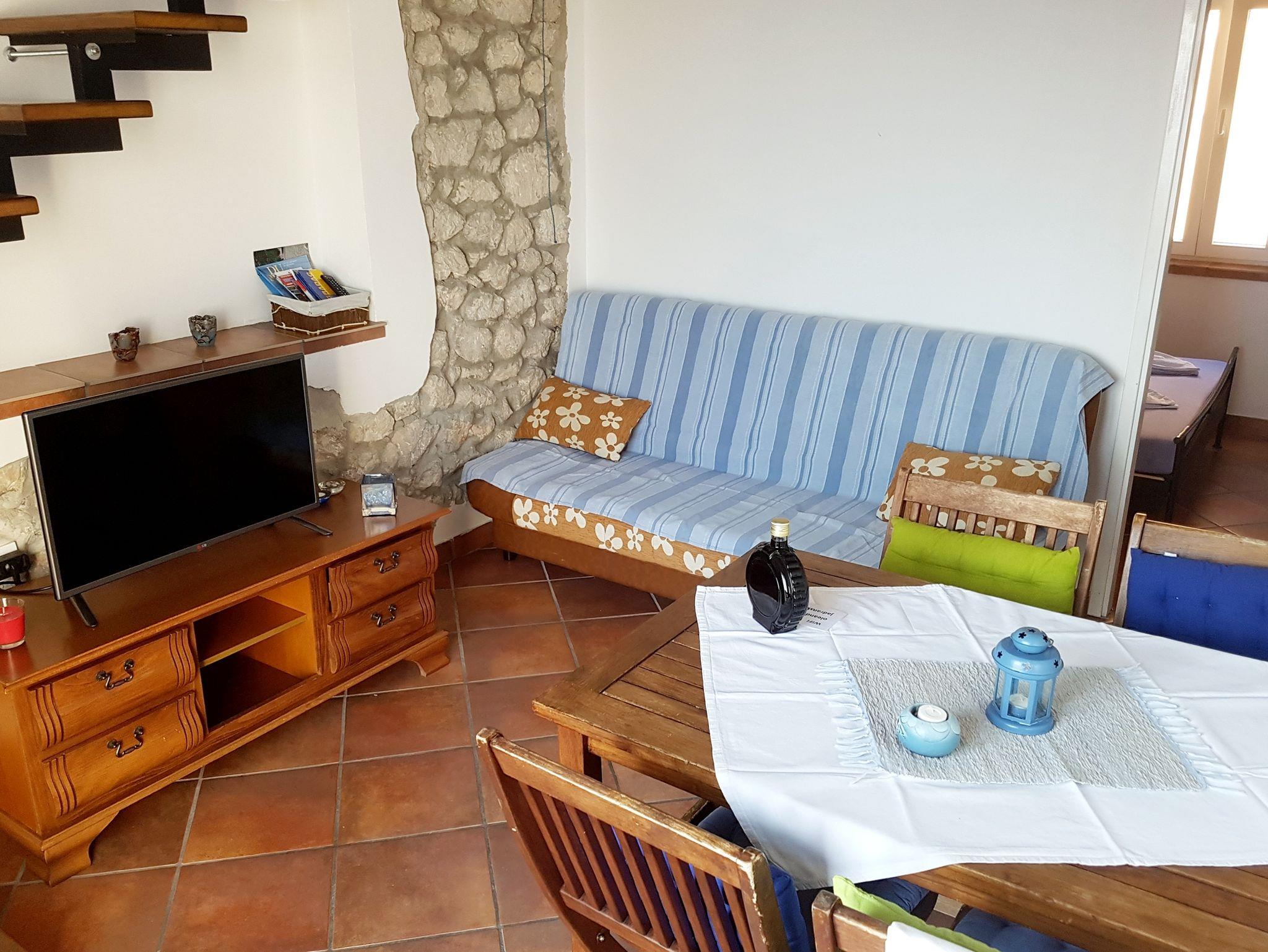 Ferienwohnung bietet Platz für 5 Gäste. Die Betten sind in Schlafzimmern, die es 2 gibt, und in Esszimmer, innerhalb einer Gesamtfläche von 41m2, angeordnet. Die Gäste haben einen eigenen Balkon zur Verfügung, auf der sie in warmen Sommernächten genießen können. Das Apartment bietet Meerblick. In der Unterkunftseinheit besteht die Möglichkeit des Mitbringens von Haustieren gegen Aufpreis. IM PREIS INBEGRIFFEN: Kurtaxe, Endreinigung, Klimatisierung, Parkplatz, Internet, Kinderbett, Bügeleisen, Föhn. VERBINDLICHE ZUSÄTZLICHE KOSTEN: Aufzahlung für Kurzaufenthalte (prozentualer Zuschlag pro Nächtigungsanzahl: 30% - 1, 20% - 2, 10% - 3). UNVERBINDLICHE ZUSÄTZLICHE KOSTEN: Wäschewaschen (5,00 € Waschen), Haustiere (5,00 € pro Nacht). Die Verfügbarkeit zusätzlicher Dienstleistungen in Ihrem reservierten Termin und die Preise derselben (falls nicht aufgeführt) müssen im Voraus überprüft werden. Zusätzliche Dienstleistungen die in der Zahlungsaufforderung nicht aufgeführt sind werden direkt beim Vermieter bezahlt, angenommen der Gast nutzt auch diese.