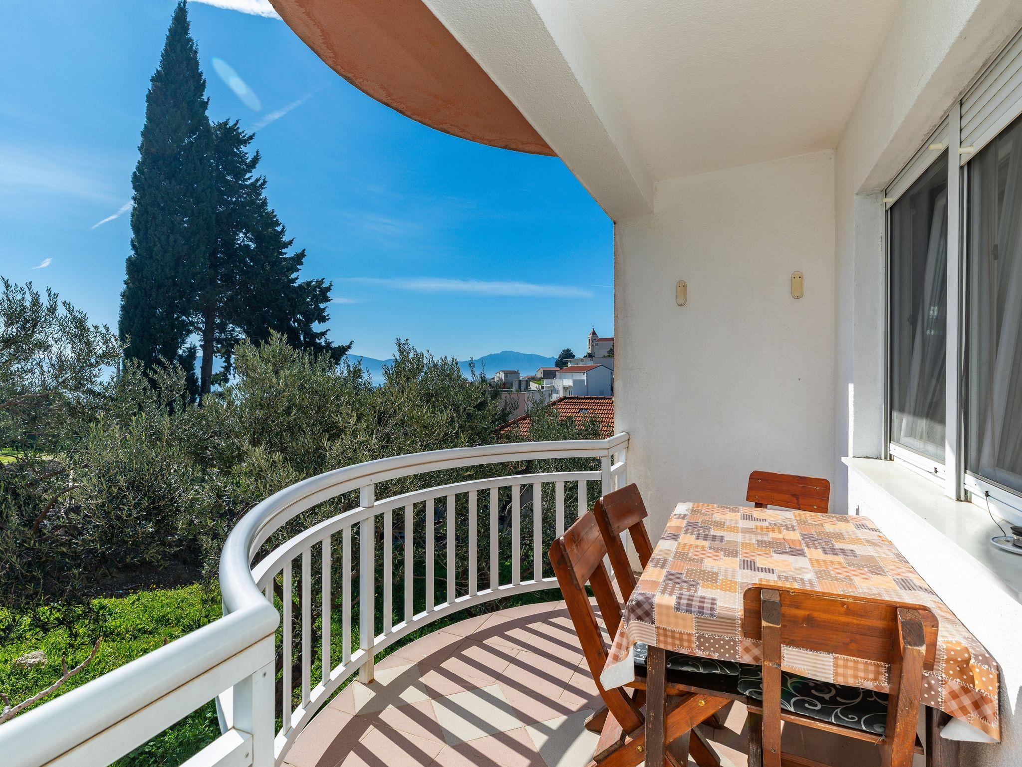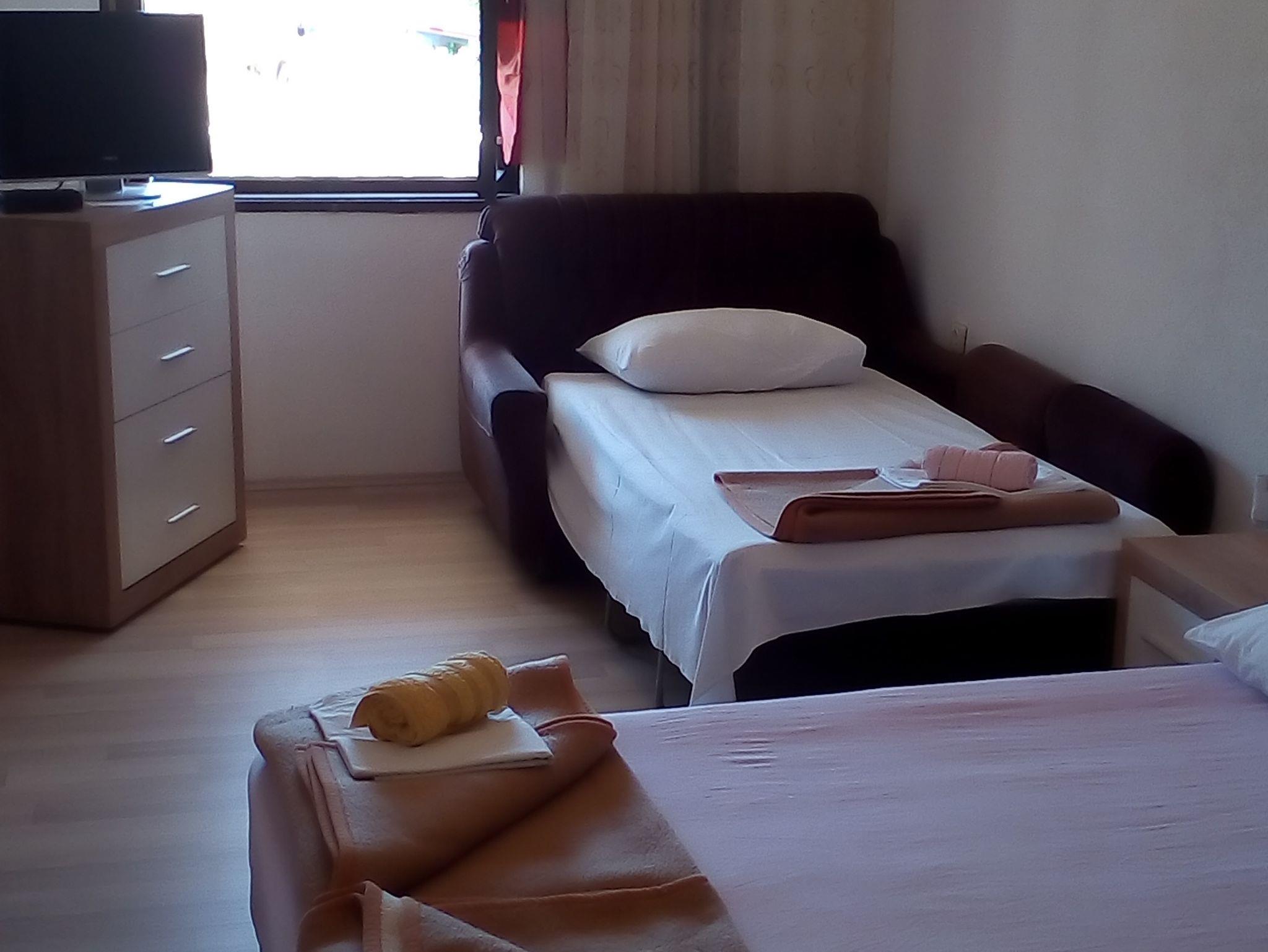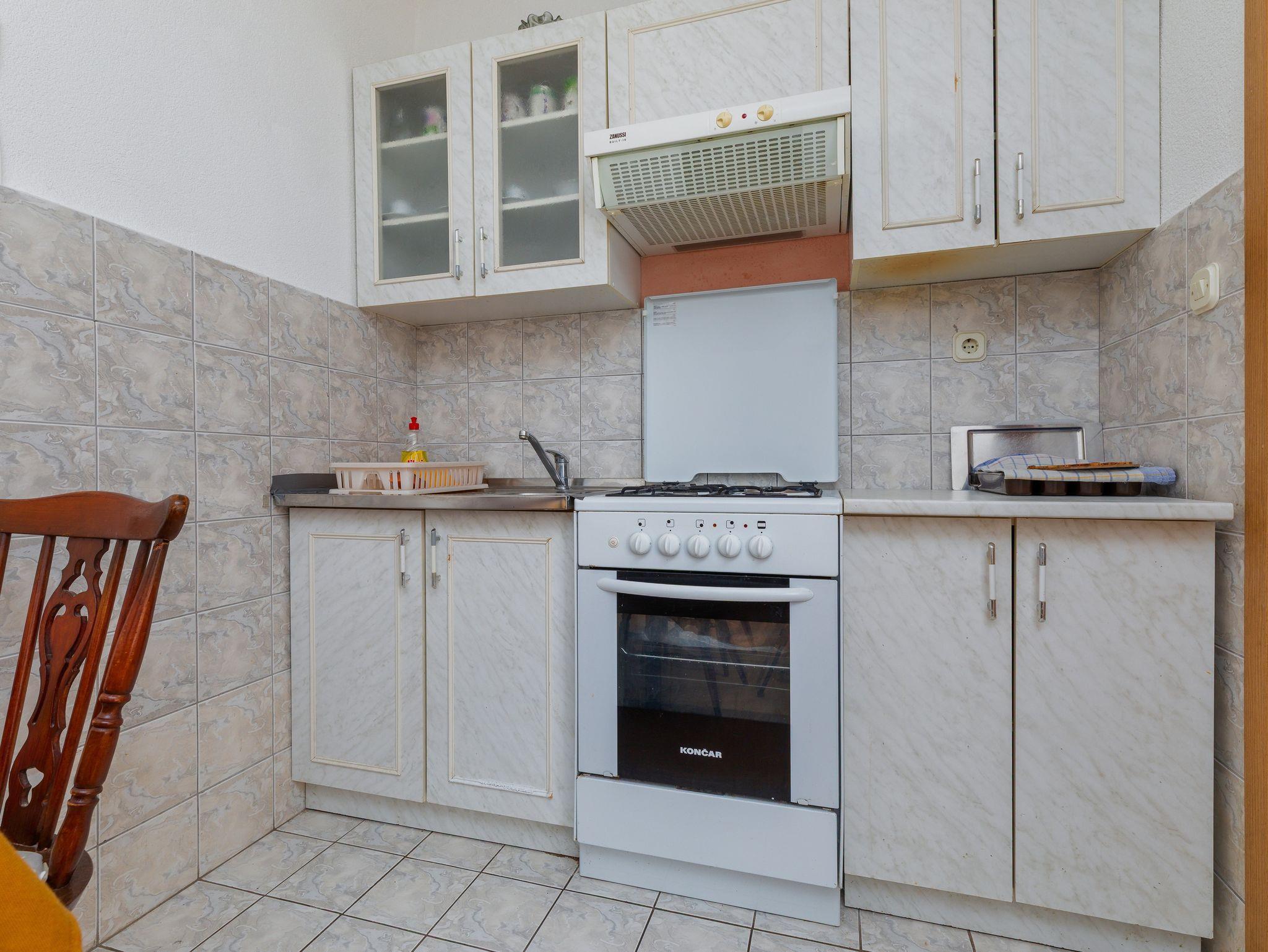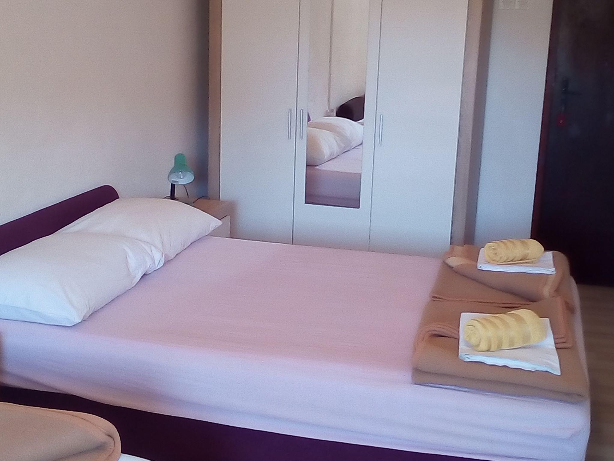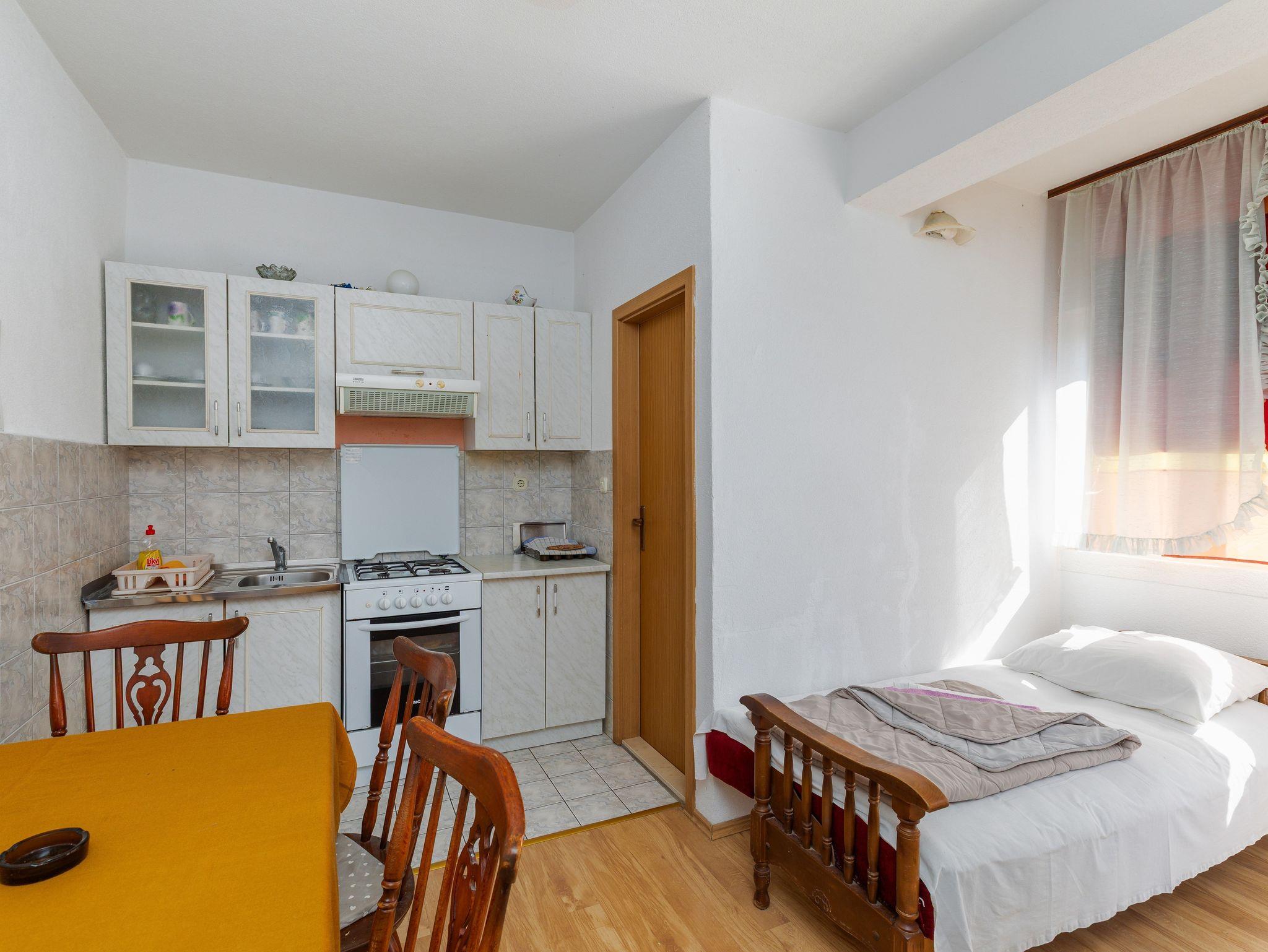 Ferienwohnung bietet Platz für 4 Gäste. Die Betten sind in Schlafzimmern, die es 1 gibt, und in Esszimmer, innerhalb einer Gesamtfläche von 33m2, angeordnet. Die Gäste haben einen eigenen Balkon zur Verfügung, auf der sie in warmen Sommernächten genießen können. Das Apartment bietet Meerblick. Es ist erlaubt, Speisen auf dem Gemeinschafts-Grill vorzubereiten. In der Unterkunftseinheit besteht die Möglichkeit des Mitbringens von Haustieren gegen Aufpreis. Eingang ins Schlafzimmer der gebuchten Unterkunftseinheit ist der Haupteingang in die ganze Unterkunftseinheit. IM PREIS INBEGRIFFEN: Kurtaxe, Endreinigung, Klimatisierung, Parkplatz, Internet, Wäschewaschen, Bügeleisen, Bügelbrett, Föhn, tragbarer Grill. VERBINDLICHE ZUSÄTZLICHE KOSTEN: Aufzahlung für Kurzaufenthalte (prozentualer Zuschlag pro Nächtigungsanzahl: 30% - 1, 20% - 2, 10% - 3). UNVERBINDLICHE ZUSÄTZLICHE KOSTEN: Haustiere (5,00 € pro Nacht). Die Verfügbarkeit zusätzlicher Dienstleistungen in Ihrem reservierten Termin und die Preise derselben (falls nicht aufgeführt) müssen im Voraus überprüft werden. Zusätzliche Dienstleistungen die in der Zahlungsaufforderung nicht aufgeführt sind werden direkt beim Vermieter bezahlt, angenommen der Gast nutzt auch diese.