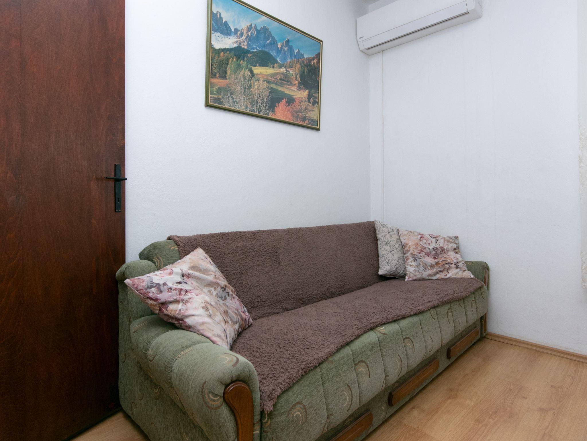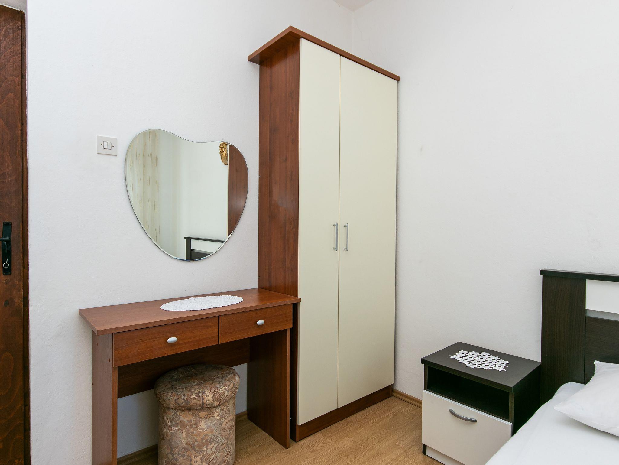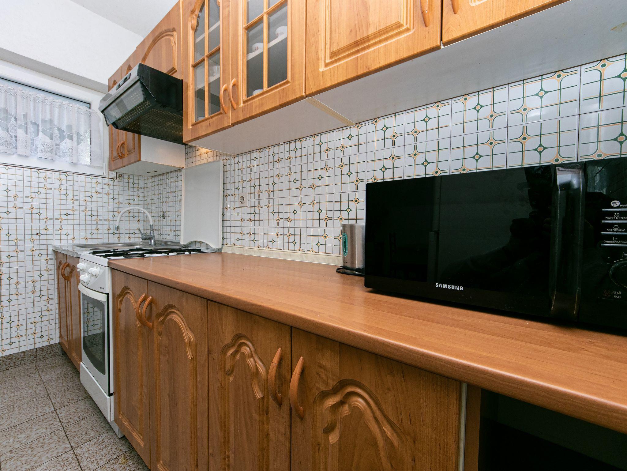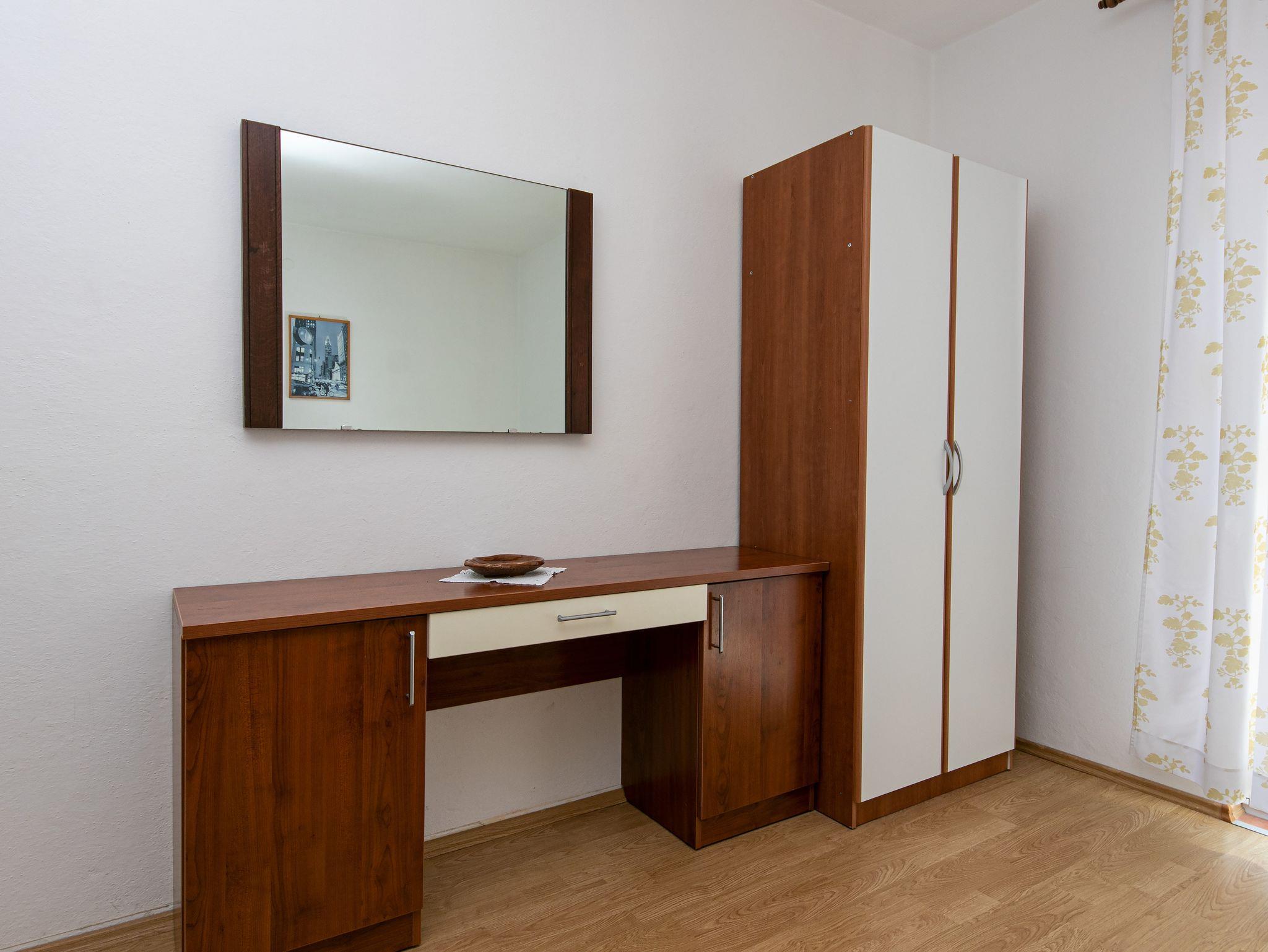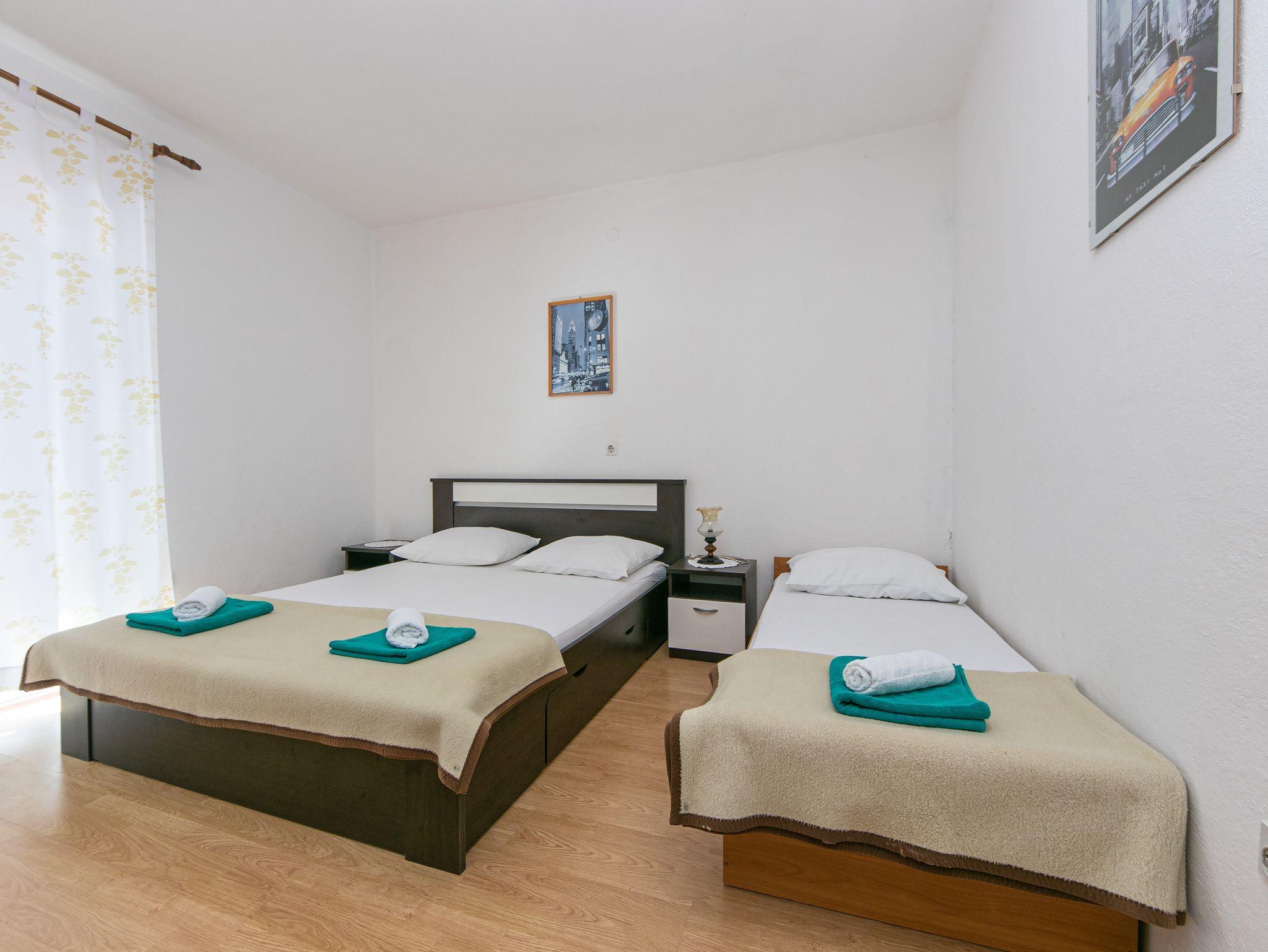 Ferienwohnung bietet Platz für 6 Gäste. Die Betten sind in Schlafzimmern, die es 2 gibt, und in Esszimmer, innerhalb einer Gesamtfläche von 54m2, angeordnet. Die Gäste haben einen eigenen Balkon zur Verfügung, auf der sie in warmen Sommernächten genießen können. Das Apartment bietet Meerblick. Es ist erlaubt, Speisen auf dem Gemeinschafts-Grill vorzubereiten. IM PREIS INBEGRIFFEN: Kurtaxe, Endreinigung, Klimatisierung, Parkplatz, Internet, Bügeleisen, Bügelbrett, Föhn. Die Verfügbarkeit zusätzlicher Dienstleistungen in Ihrem reservierten Termin und die Preise derselben (falls nicht aufgeführt) müssen im Voraus überprüft werden. Zusätzliche Dienstleistungen die in der Zahlungsaufforderung nicht aufgeführt sind werden direkt beim Vermieter bezahlt, angenommen der Gast nutzt auch diese. Ermäßigung auf den Grundpreis: Gratistag 14=13 (bei einem Aufenthalt von 14 Tagen oder mehr erhalten Sie einen Gratistag für den Aufenthalt bis 31.12.26).
