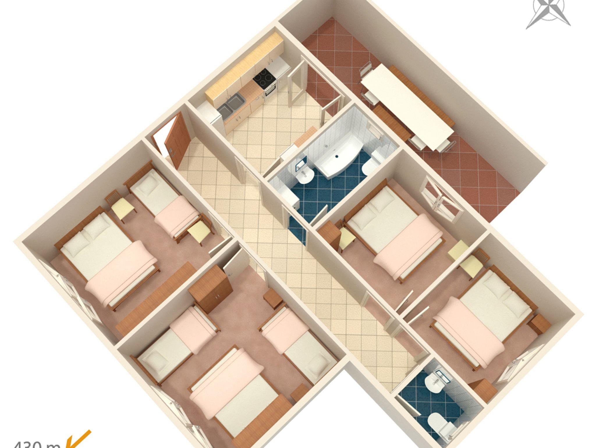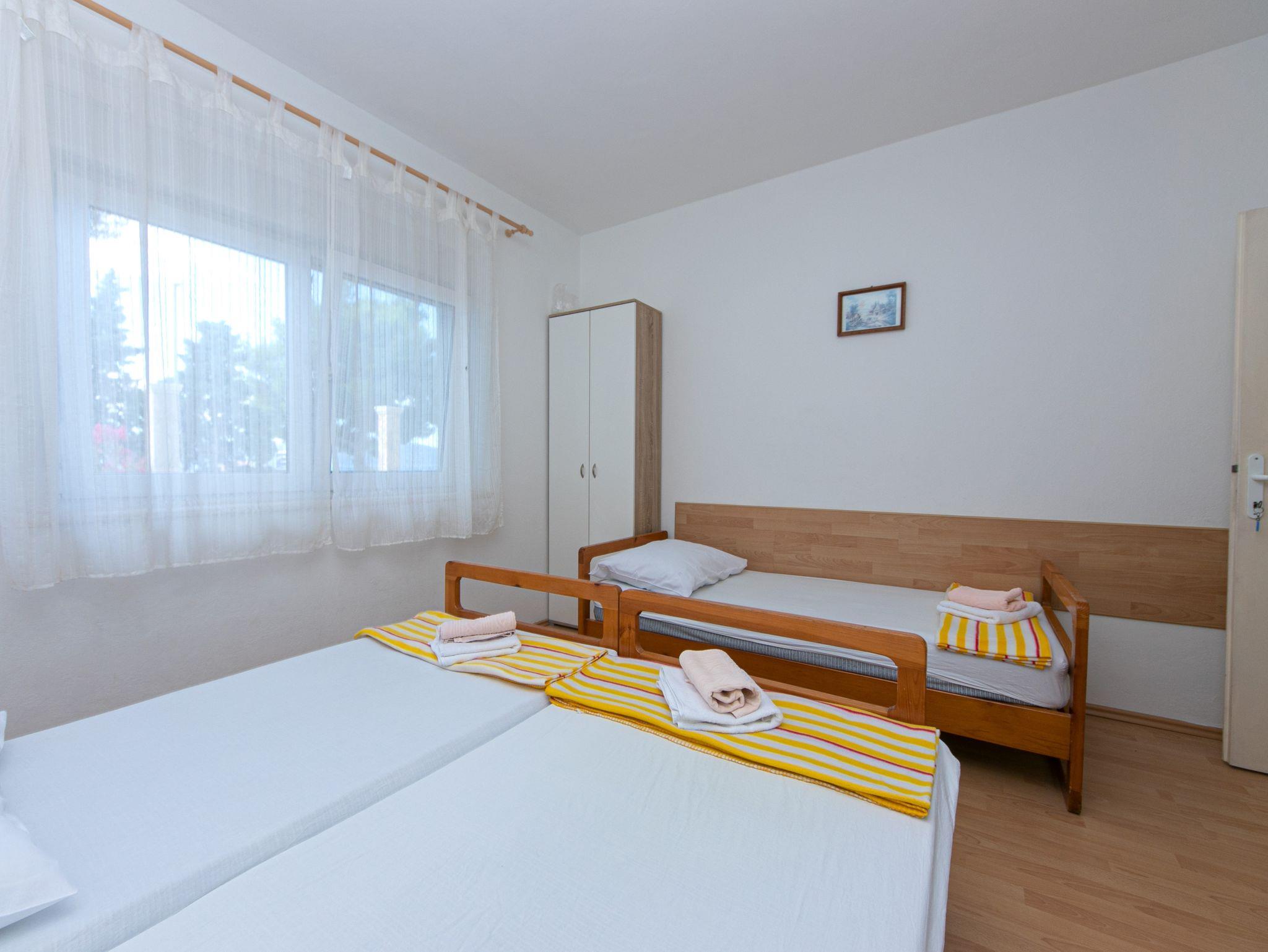 Ferienwohnung bietet Platz für 11 Gäste. Die Betten sind in Schlafzimmern, die es 4 gibt, innerhalb einer Gesamtfläche von 70m2, angeordnet. Die Gäste haben eine eigene Terrasse zur Verfügung, auf der sie in warmen Sommernächten genießen können. Für vollen Genuss und Entspannung gibt es einen privaten Grill für Gäste dieser Unterkunft. IM PREIS INBEGRIFFEN: Kurtaxe, Endreinigung, Parkplatz, Internet, Bügeleisen, Bügelbrett, Föhn, tragbarer Grill. VERBINDLICHE ZUSÄTZLICHE KOSTEN: Aufzahlung für Kurzaufenthalte (prozentualer Zuschlag pro Nächtigungsanzahl: 30% - 1, 20% - 2, 10% - 3). Die Verfügbarkeit zusätzlicher Dienstleistungen in Ihrem reservierten Termin und die Preise derselben (falls nicht aufgeführt) müssen im Voraus überprüft werden. Zusätzliche Dienstleistungen die in der Zahlungsaufforderung nicht aufgeführt sind werden direkt beim Vermieter bezahlt, angenommen der Gast nutzt auch diese.
