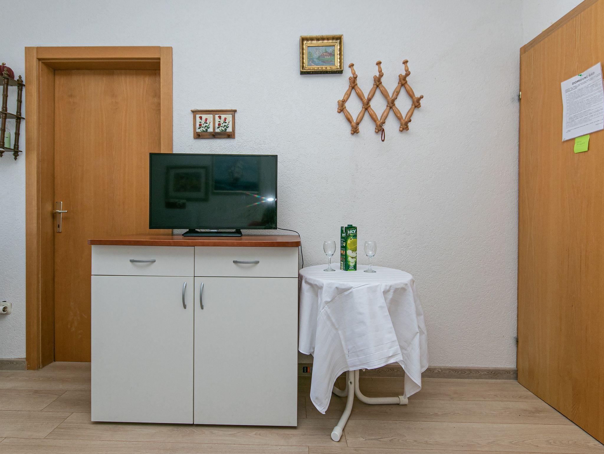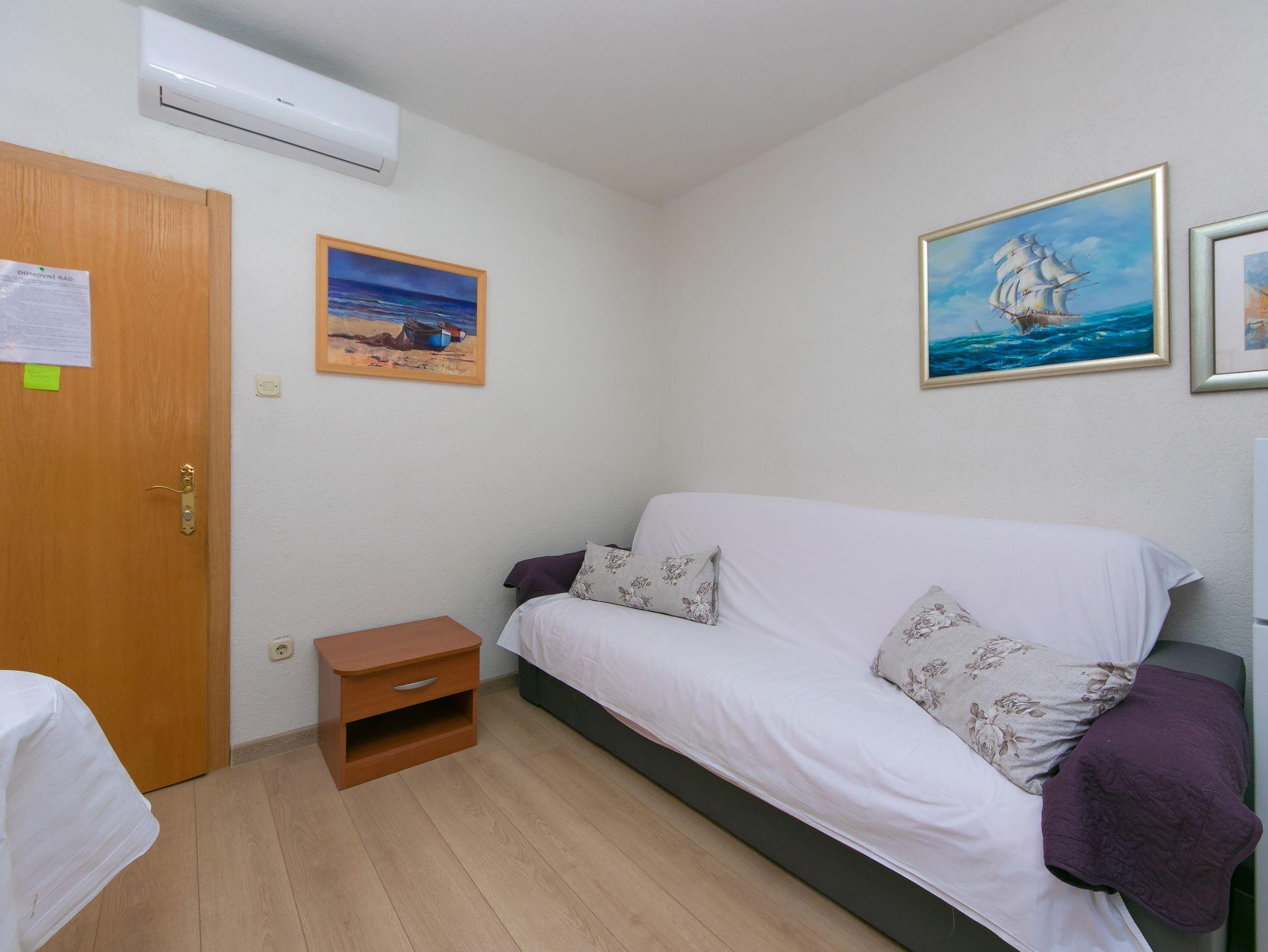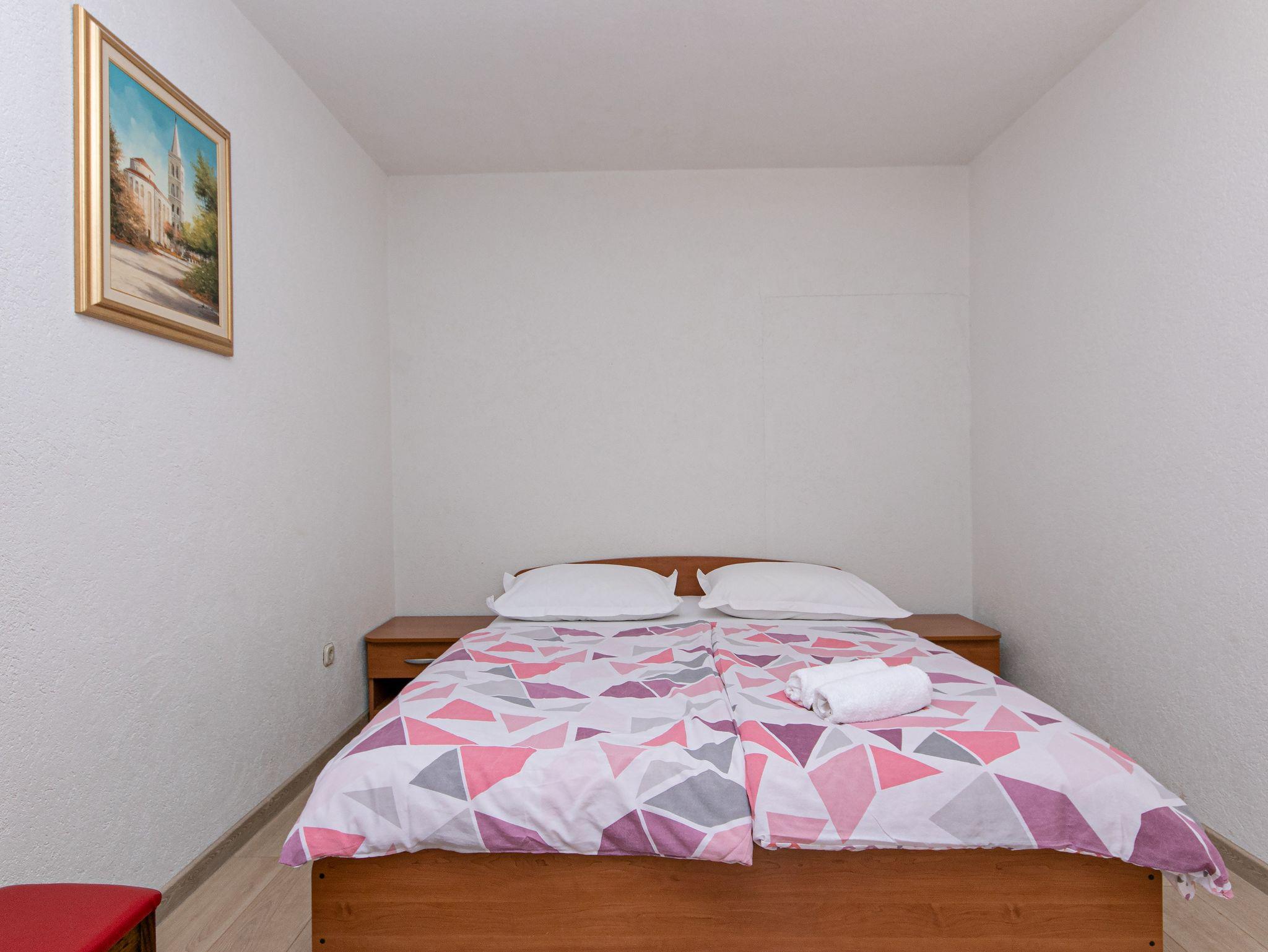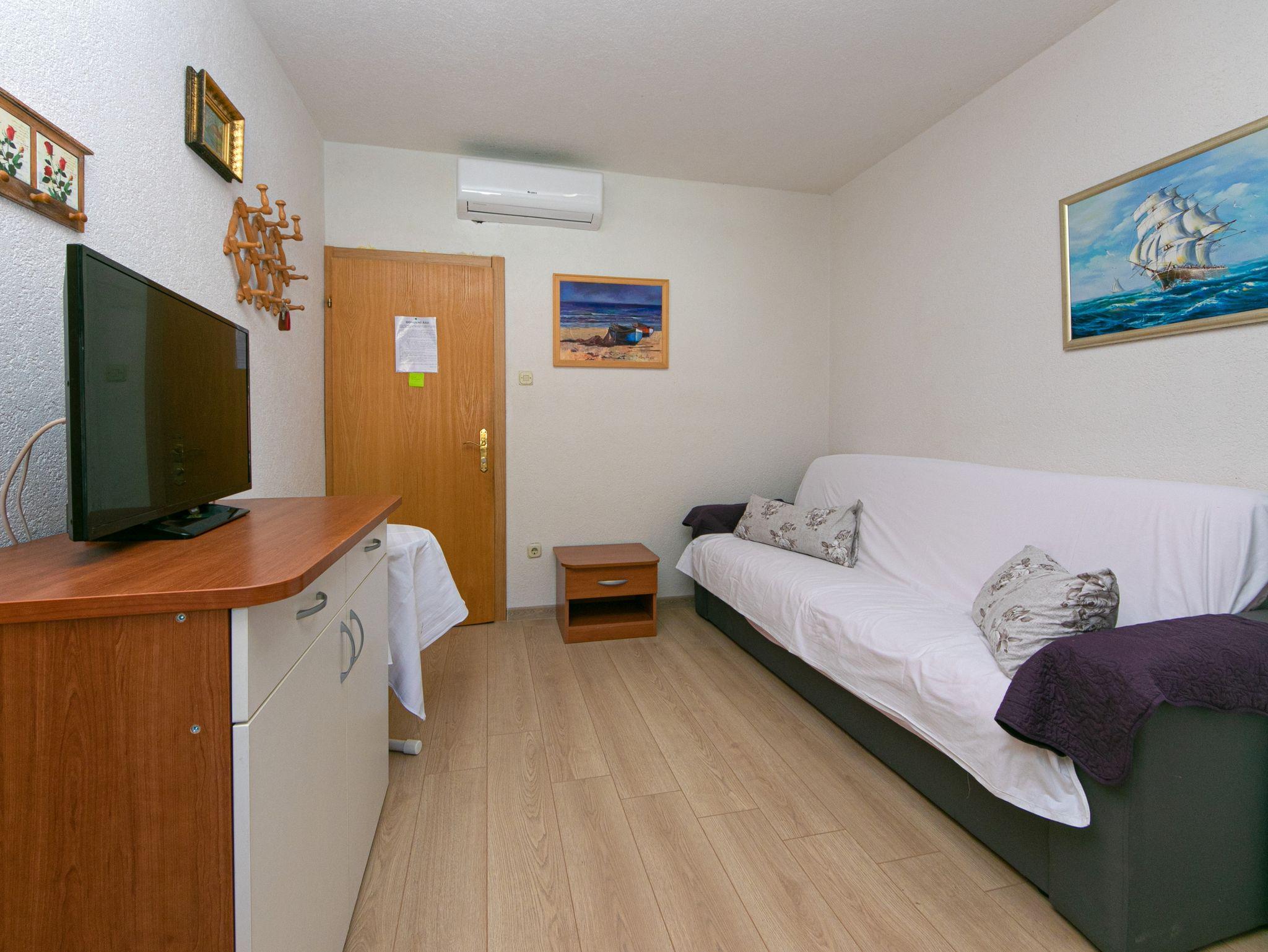 Ferienwohnung bietet Platz für 3 Gäste. Die Betten sind in Schlafzimmern, die es 1 gibt, und in Wohnzimmer, innerhalb einer Gesamtfläche von 25m2, angeordnet. Die Gäste haben eine eigene Terrasse zur Verfügung, auf der sie in warmen Sommernächten genießen können. Das Apartment bietet Meerblick. Es ist erlaubt, Speisen auf dem Gemeinschafts-Grill vorzubereiten. IM PREIS INBEGRIFFEN: Kurtaxe, Endreinigung, Klimatisierung, Parkplatz, Internet. VERBINDLICHE ZUSÄTZLICHE KOSTEN: Aufzahlung für Kurzaufenthalte (prozentualer Zuschlag pro Nächtigungsanzahl: 30% - 1, 20% - 2, 10% - 3). Die Verfügbarkeit zusätzlicher Dienstleistungen in Ihrem reservierten Termin und die Preise derselben (falls nicht aufgeführt) müssen im Voraus überprüft werden. Zusätzliche Dienstleistungen die in der Zahlungsaufforderung nicht aufgeführt sind werden direkt beim Vermieter bezahlt, angenommen der Gast nutzt auch diese. Ermäßigung auf den Grundpreis: Gratistag 14=13 (bei einem Aufenthalt von 14 Tagen oder mehr erhalten Sie einen Gratistag für den Aufenthalt bis 31.12.26).