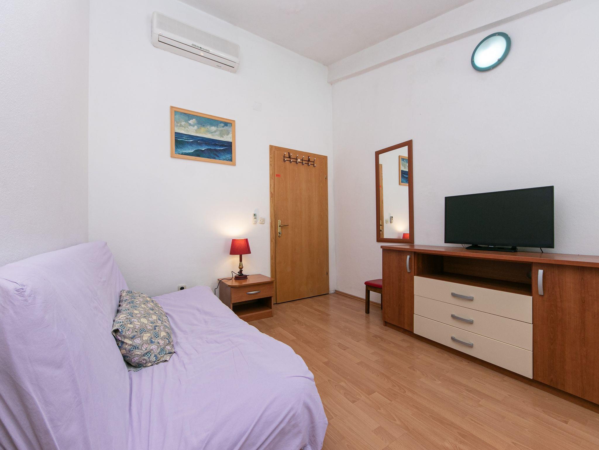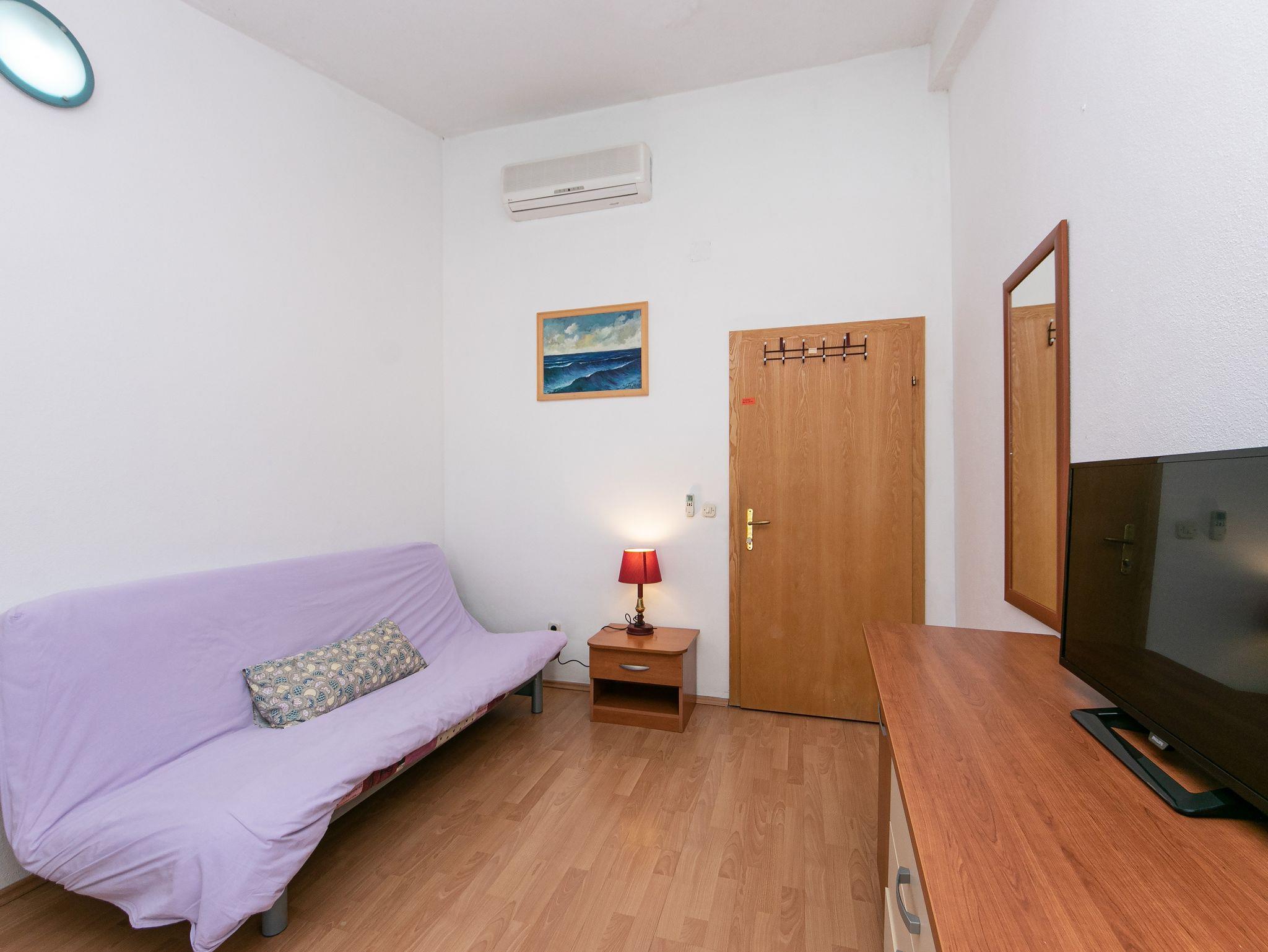 Ferienwohnung bietet Platz für 4 Gäste. Die Betten sind in Schlafzimmern, die es 1 gibt, und in Wohnzimmer, innerhalb einer Gesamtfläche von 25m2, angeordnet. Die Gäste haben eine eigene Terrasse zur Verfügung, auf der sie in warmen Sommernächten genießen können. Das Apartment bietet Meerblick. Es ist erlaubt, Speisen auf dem Gemeinschafts-Grill vorzubereiten. IM PREIS INBEGRIFFEN: Kurtaxe, Endreinigung, Klimatisierung, Parkplatz, Internet. VERBINDLICHE ZUSÄTZLICHE KOSTEN: Aufzahlung für Kurzaufenthalte (prozentualer Zuschlag pro Nächtigungsanzahl: 30% - 1, 20% - 2, 10% - 3). Die Verfügbarkeit zusätzlicher Dienstleistungen in Ihrem reservierten Termin und die Preise derselben (falls nicht aufgeführt) müssen im Voraus überprüft werden. Zusätzliche Dienstleistungen die in der Zahlungsaufforderung nicht aufgeführt sind werden direkt beim Vermieter bezahlt, angenommen der Gast nutzt auch diese. Ermäßigung auf den Grundpreis: Gratistag 14=13 (bei einem Aufenthalt von 14 Tagen oder mehr erhalten Sie einen Gratistag für den Aufenthalt bis 31.12.26).