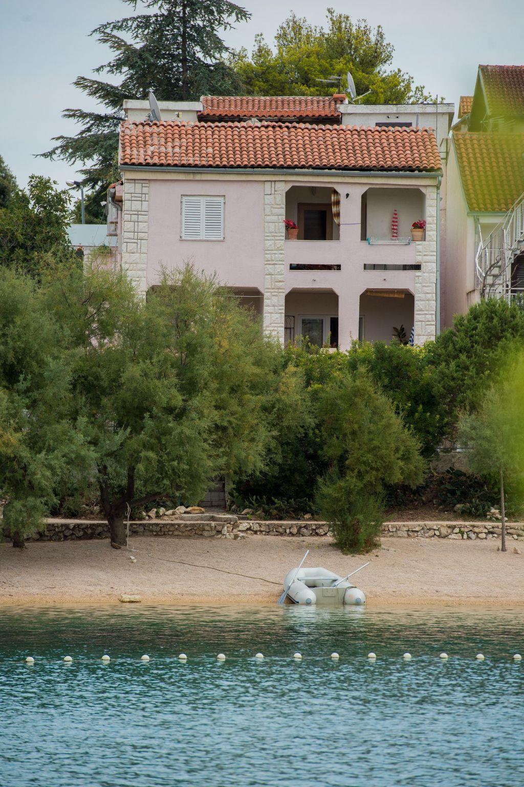 Flat house with garden in a quiet location, beautiful view, directly on the fine pebble beach opposite the Ostrica peninsula. The house has two private moorings (buoys) for mooring your boat. Each flat has its own terrace. Along the waterfront you will find cafés and restaurants offering Dalmatian specialities as well as shops and stalls with vegetables and fish from the locals, who traditionally live from farming and fishing. Larger purchases can be made in the nearby towns of Sibenik and Primosten. Nearby: town centre 400 m, shopping 400 m, restaurant 200 m, sea, pebble beach 10 m, boat mooring 70 m, Sibenik, Primosten 12 km, Krka waterfalls 25 km What your accommodation offers: 4 accommodation units, Luxory, Adria, Prestige and Superior holiday flats, garden, parking, barbecue, outdoor shower For all types: *Holiday flat, individually furnished according to the taste of the landlord * Satellite TV, also German programmes, *WLAN, WiFi, safe, air conditioning (cold/warm), electric radiators Note: Landlord lives in the same house, dog allowed, 2 bicycles allowed.