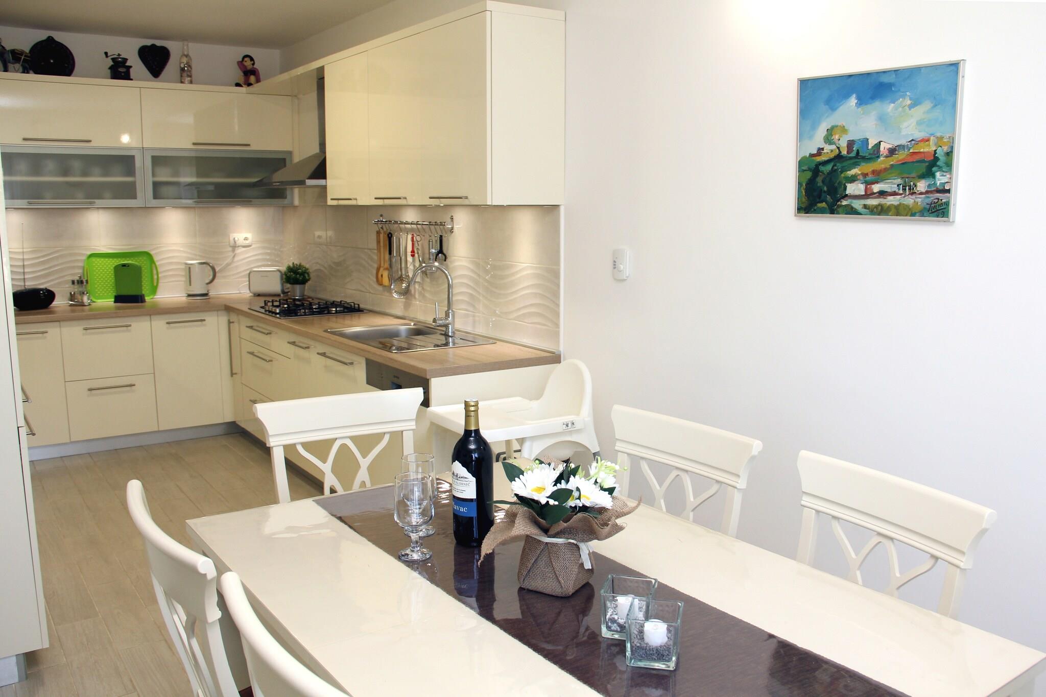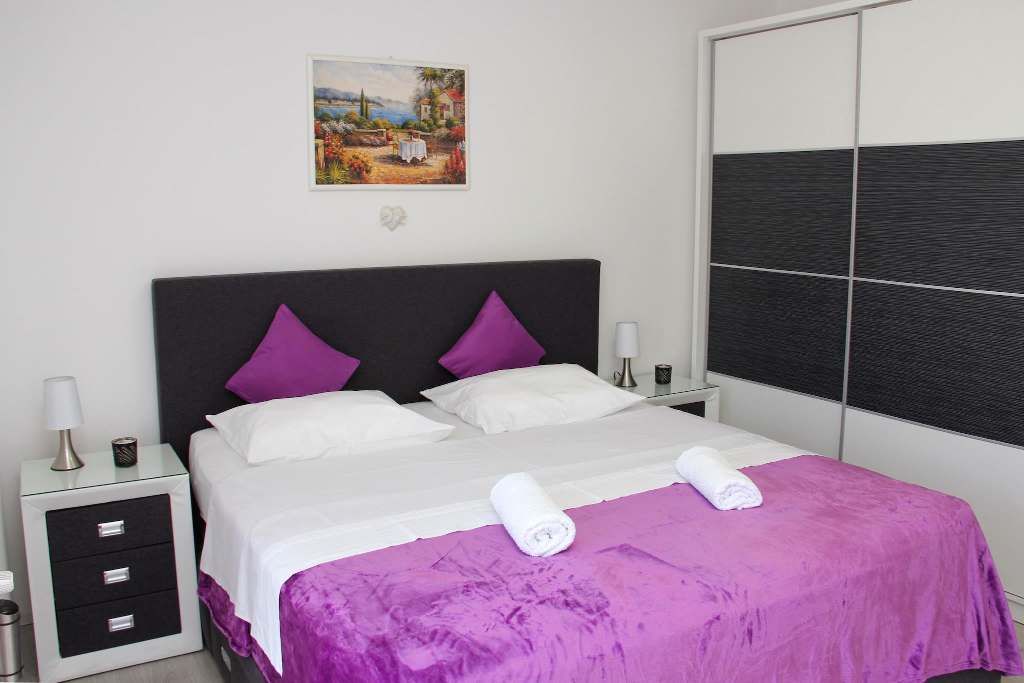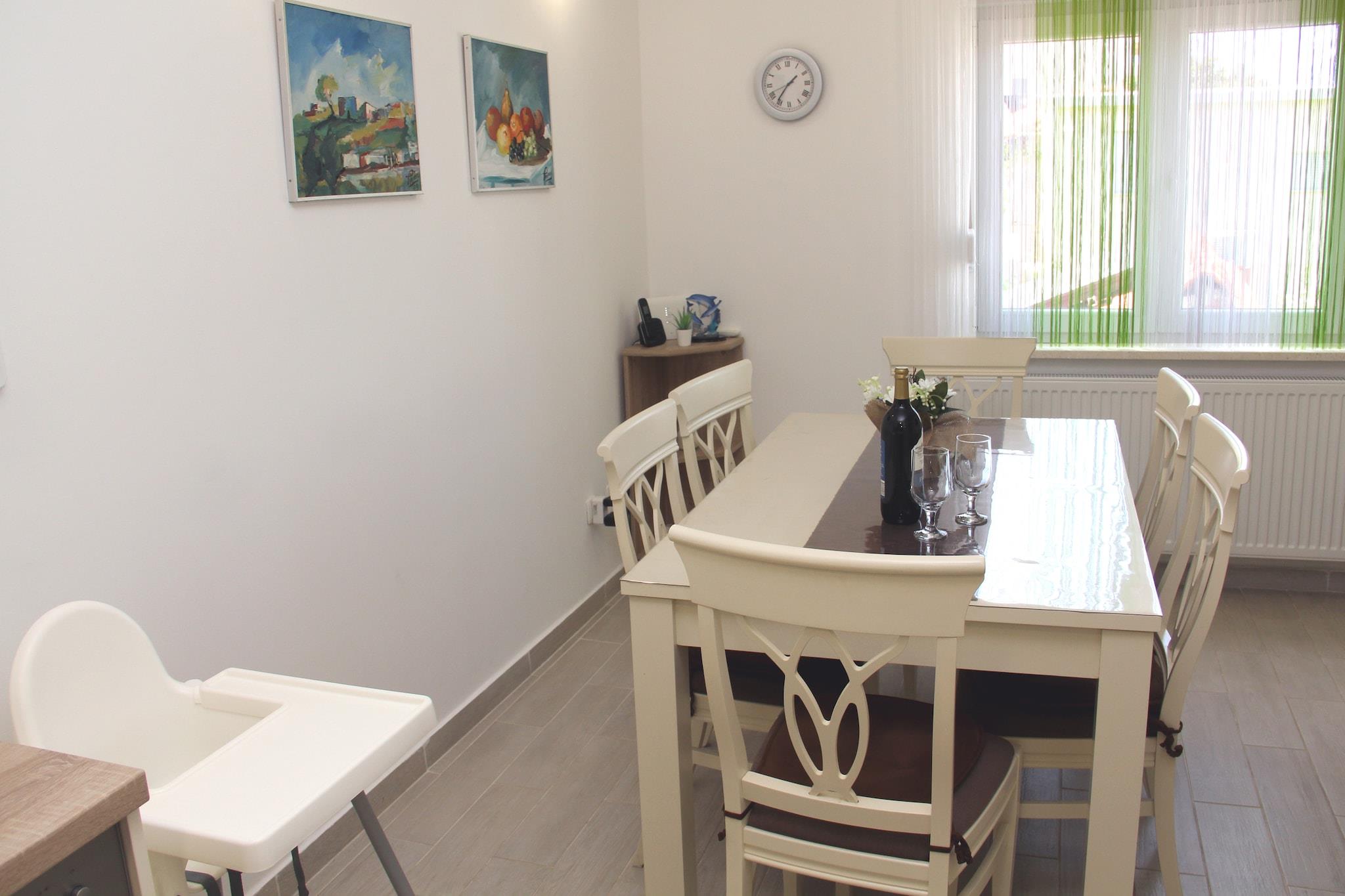 Denne dejlige lejlighed i Grebaštica tilbyder en fremragende beliggenhed nær havet, perfekt til familier eller små grupper. Med 2 soveværelser, der kan rumme op til 5 gæster, har den en privat terrasse, hvor du kan nyde måltider, mens du nyder den smukke havudsigt. En grillfacilitet tilføjer charmen og gør udendørs spisning til en dejlig oplevelse. Praktisk beliggende kun 100 meter fra byens centrum, butikker og forsyninger, er alt hvad du behøver inden for rækkevidde. Restauranter ligger 2 km væk, og stranden, som er ideel til at slikke sol og svømme, ligger 15 km fra ejendommen. Offentlig transport er tilgængelig kun 200 meter fra lejligheden. Indvendigt har lejligheden et åbent køkken udstyret med alt det nødvendige for nem madlavning. Opholds- og spiseområdet omfatter et komfortabelt siddearrangement og spisebord, hvor du kan nyde måltider sammen. Aircondition sikrer komfort på varmere dage, og der er parkering på stedet. Liggestole fuldender dette feriested ved havet. Den nærmeste lufthavn ligger 30 km derfra.
