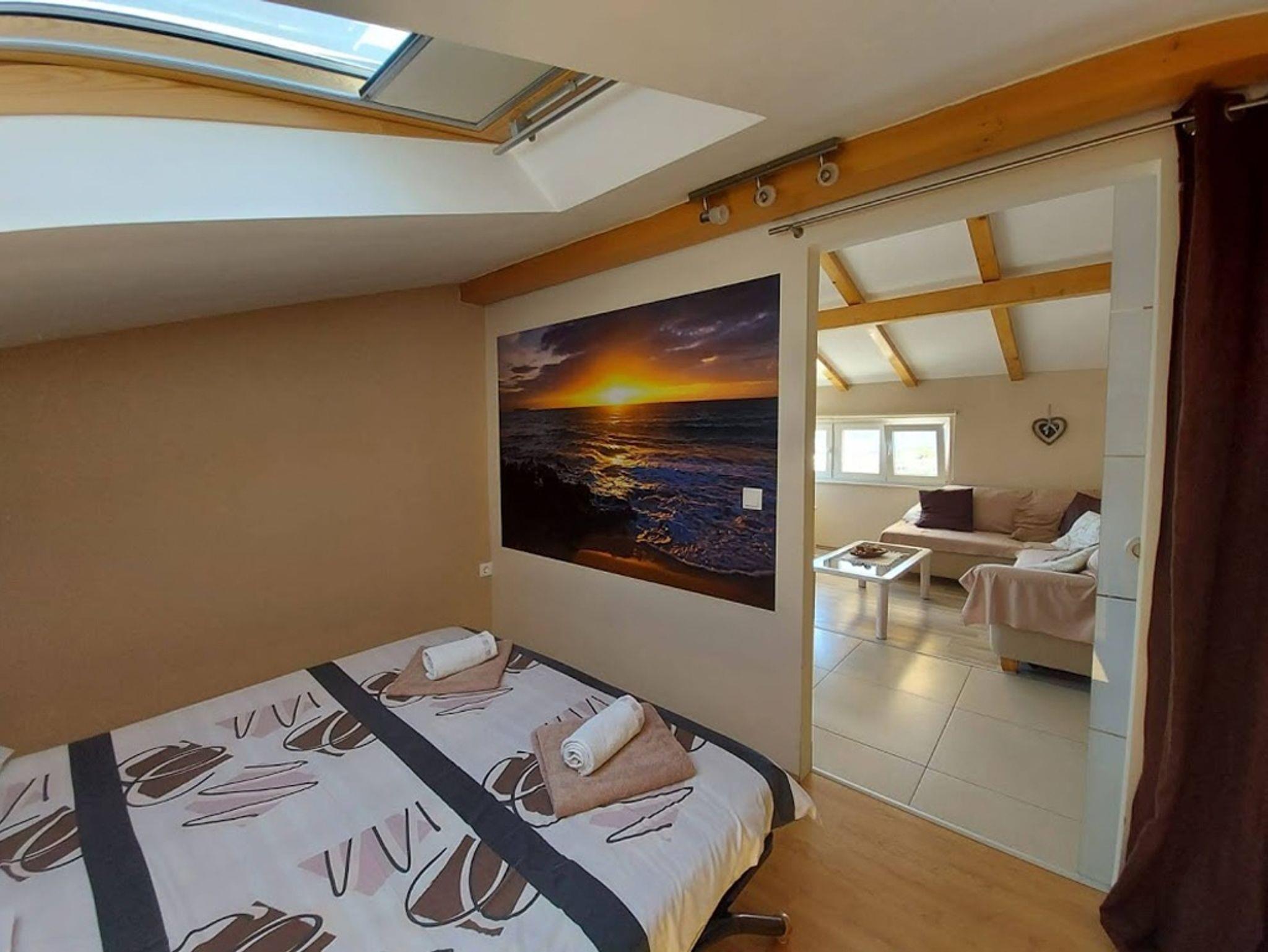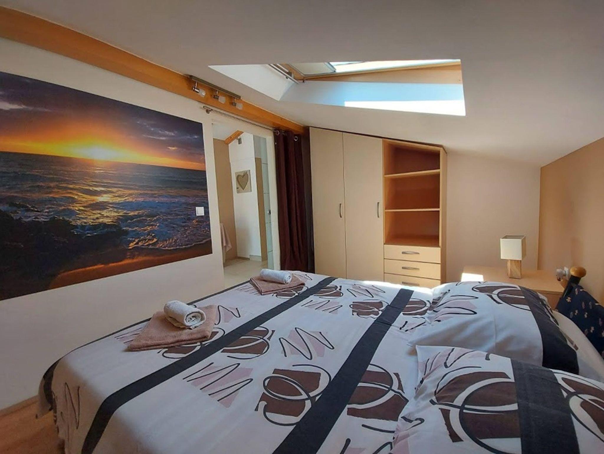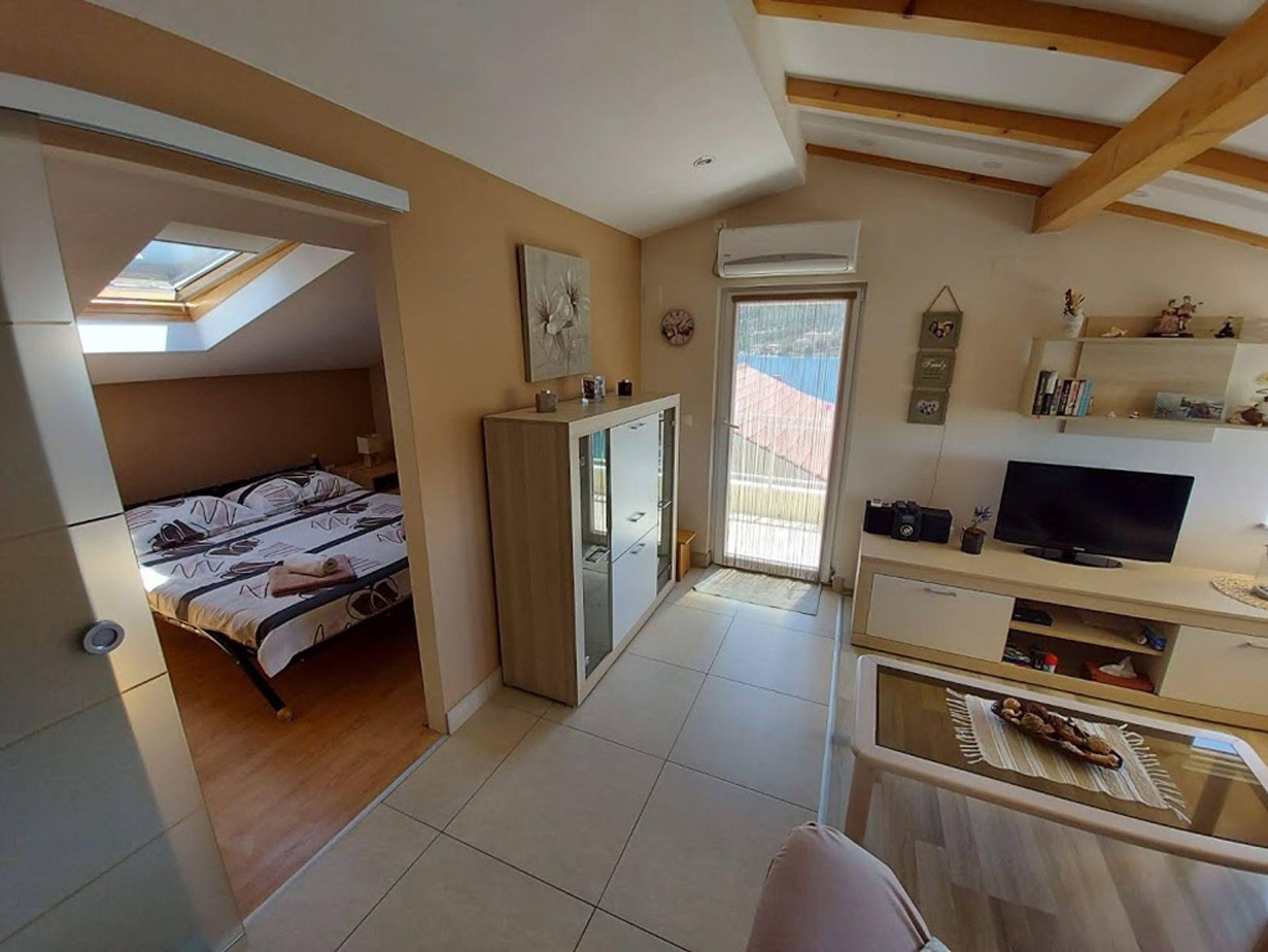 Ferienwohnung bietet Platz für 4 Gäste. Die Betten sind in Schlafzimmern, die es 2 gibt, innerhalb einer Gesamtfläche von 48m2, angeordnet. Die Gäste haben eine eigene Terrasse zur Verfügung, auf der sie in warmen Sommernächten genießen können. Das Apartment bietet Meerblick. Es ist erlaubt, Speisen auf dem Gemeinschafts-Grill vorzubereiten. IM PREIS INBEGRIFFEN: Kurtaxe, Endreinigung, Klimatisierung, Parkplatz, Internet, Kinderbett, Bügeleisen, Bügelbrett, Föhn. UNVERBINDLICHE ZUSÄTZLICHE KOSTEN: Bootsanlegeplatz (10,00 € pro Nacht). Die Verfügbarkeit zusätzlicher Dienstleistungen in Ihrem reservierten Termin und die Preise derselben (falls nicht aufgeführt) müssen im Voraus überprüft werden. Zusätzliche Dienstleistungen die in der Zahlungsaufforderung nicht aufgeführt sind werden direkt beim Vermieter bezahlt, angenommen der Gast nutzt auch diese. Ermäßigung auf den Grundpreis: Gratistag 28=25 (bei einem Aufenthalt von 28 oder mehr Tagen erhalten Sie 3 kostenlose Tage für den Aufenthalt bis 31.12.26).