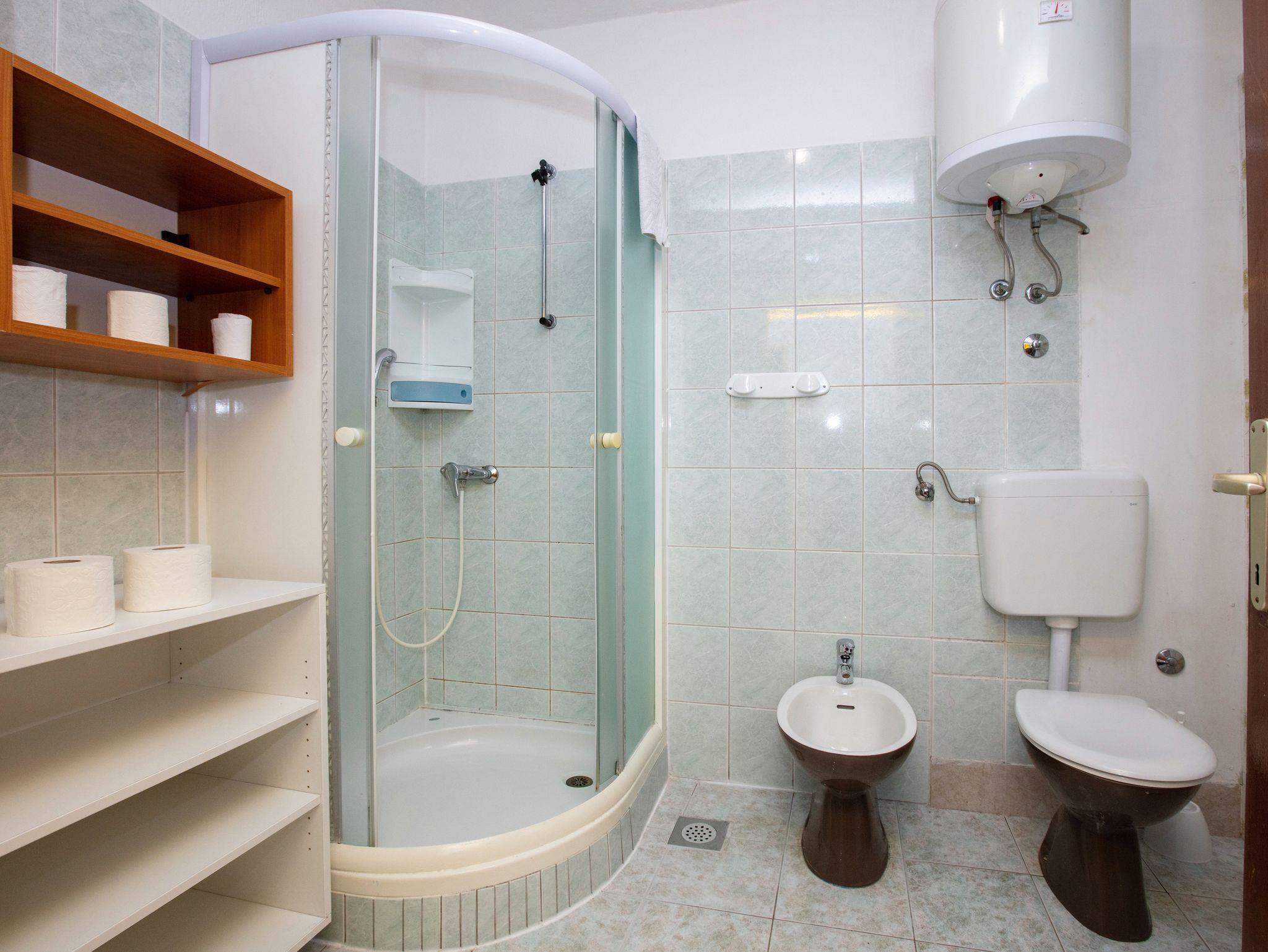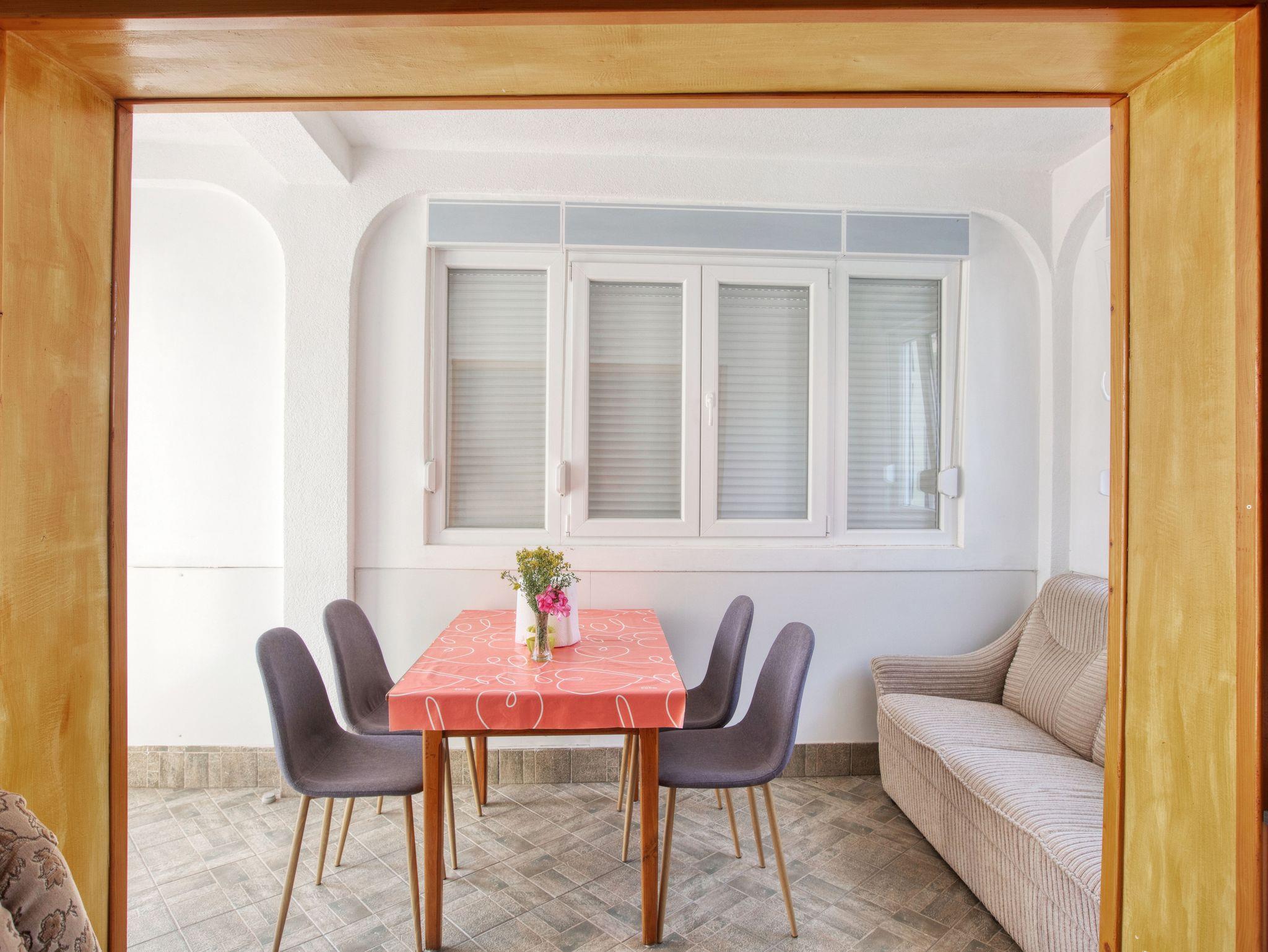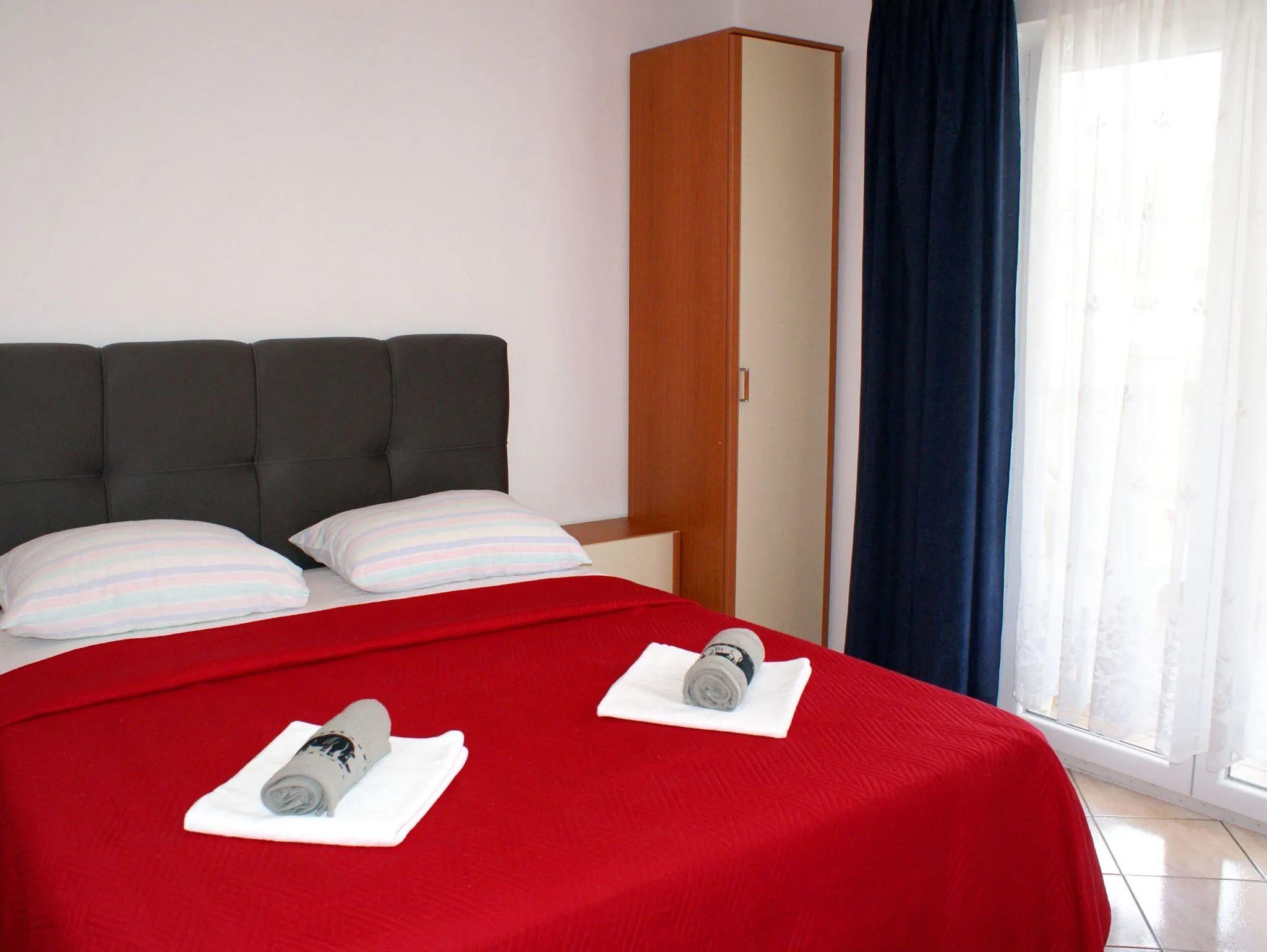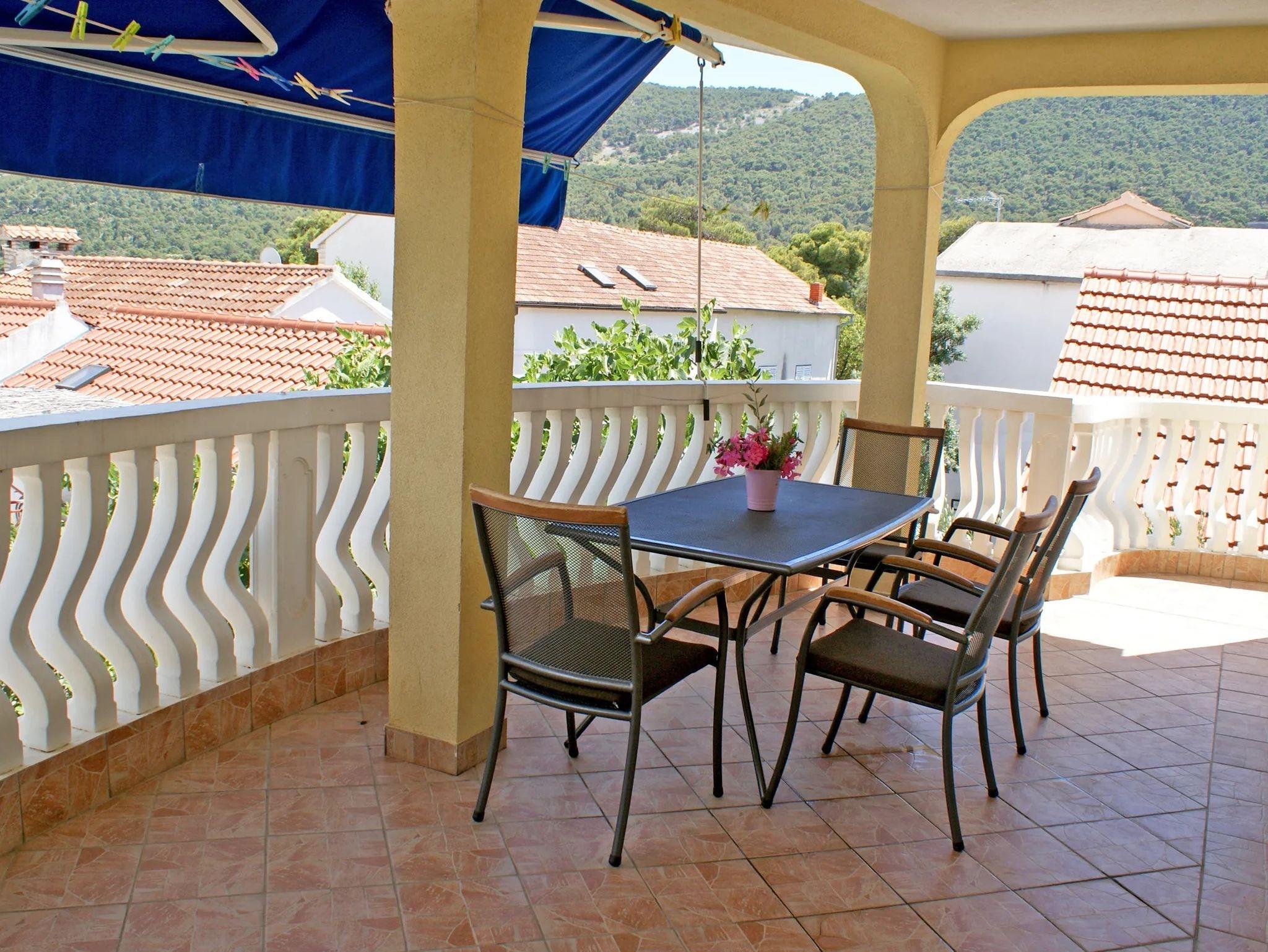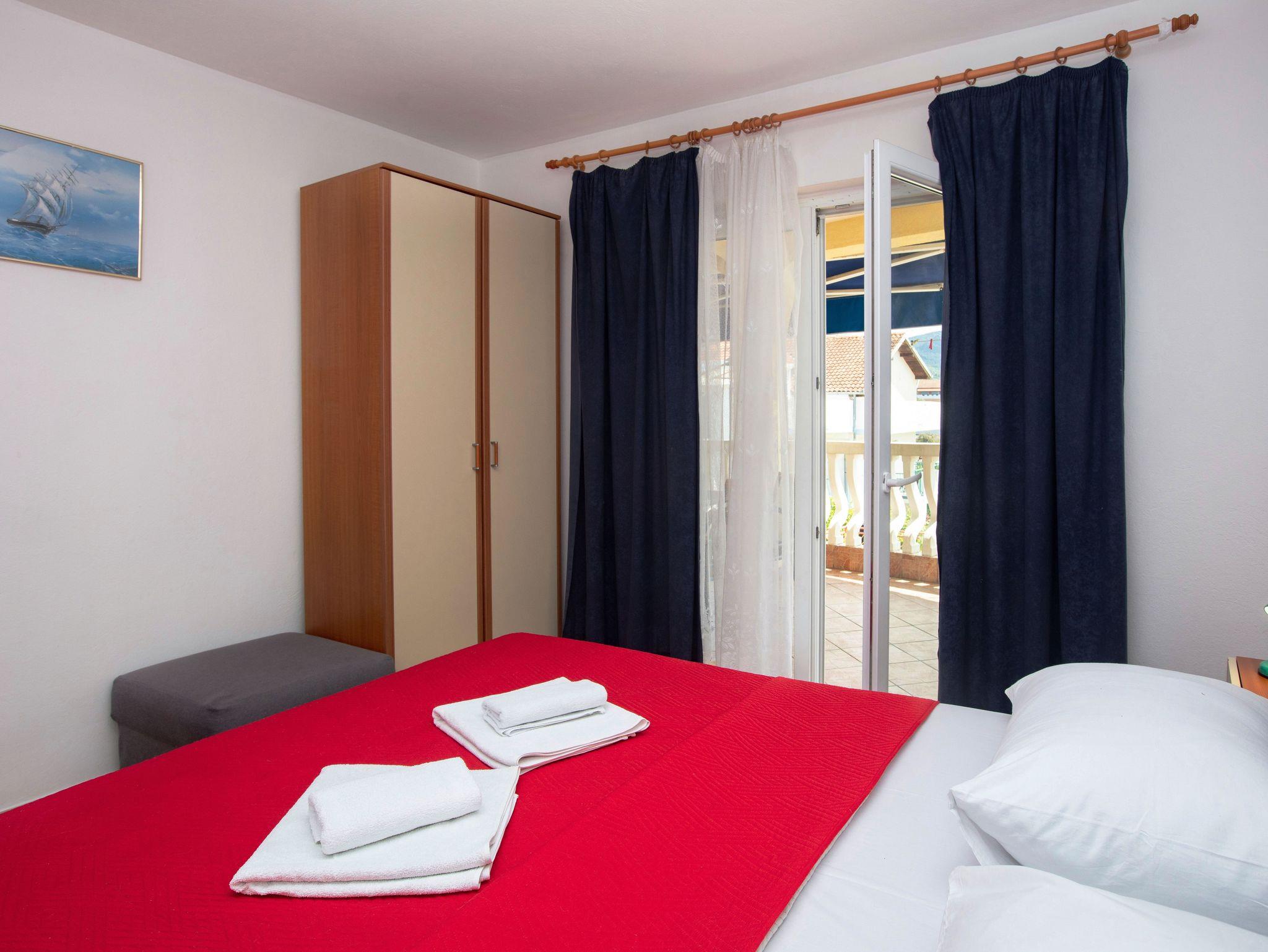 Ferienwohnung bietet Platz für 4 Gäste. Die Betten sind in Schlafzimmern, die es 2 gibt, innerhalb einer Gesamtfläche von 50m2, angeordnet. Die Gäste haben eine eigene Terrasse zur Verfügung, auf der sie in warmen Sommernächten genießen können. Das Apartment bietet Meerblick. Es ist erlaubt, Speisen auf dem Gemeinschafts-Grill vorzubereiten. IM PREIS INBEGRIFFEN: Kurtaxe, Endreinigung, Klimatisierung, Parkplatz, Internet, Wäschewaschen, Bootsanlegeplatz, Kinderbett, Bügeleisen, Bügelbrett, Föhn, tragbarer Grill. VERBINDLICHE ZUSÄTZLICHE KOSTEN: Aufzahlung für Kurzaufenthalte (prozentualer Zuschlag pro Nächtigungsanzahl: 30% - 1, 20% - 2, 10% - 3). UNVERBINDLICHE ZUSÄTZLICHE KOSTEN: Zusatzbett (8,00 € pro Nacht). Die Verfügbarkeit zusätzlicher Dienstleistungen in Ihrem reservierten Termin und die Preise derselben (falls nicht aufgeführt) müssen im Voraus überprüft werden. Zusätzliche Dienstleistungen die in der Zahlungsaufforderung nicht aufgeführt sind werden direkt beim Vermieter bezahlt, angenommen der Gast nutzt auch diese. Ermäßigung auf den Grundpreis: Gratistag 14=13 (bei einem Aufenthalt von 14 Tagen oder mehr erhalten Sie einen Gratistag für den Aufenthalt bis 31.12.26).