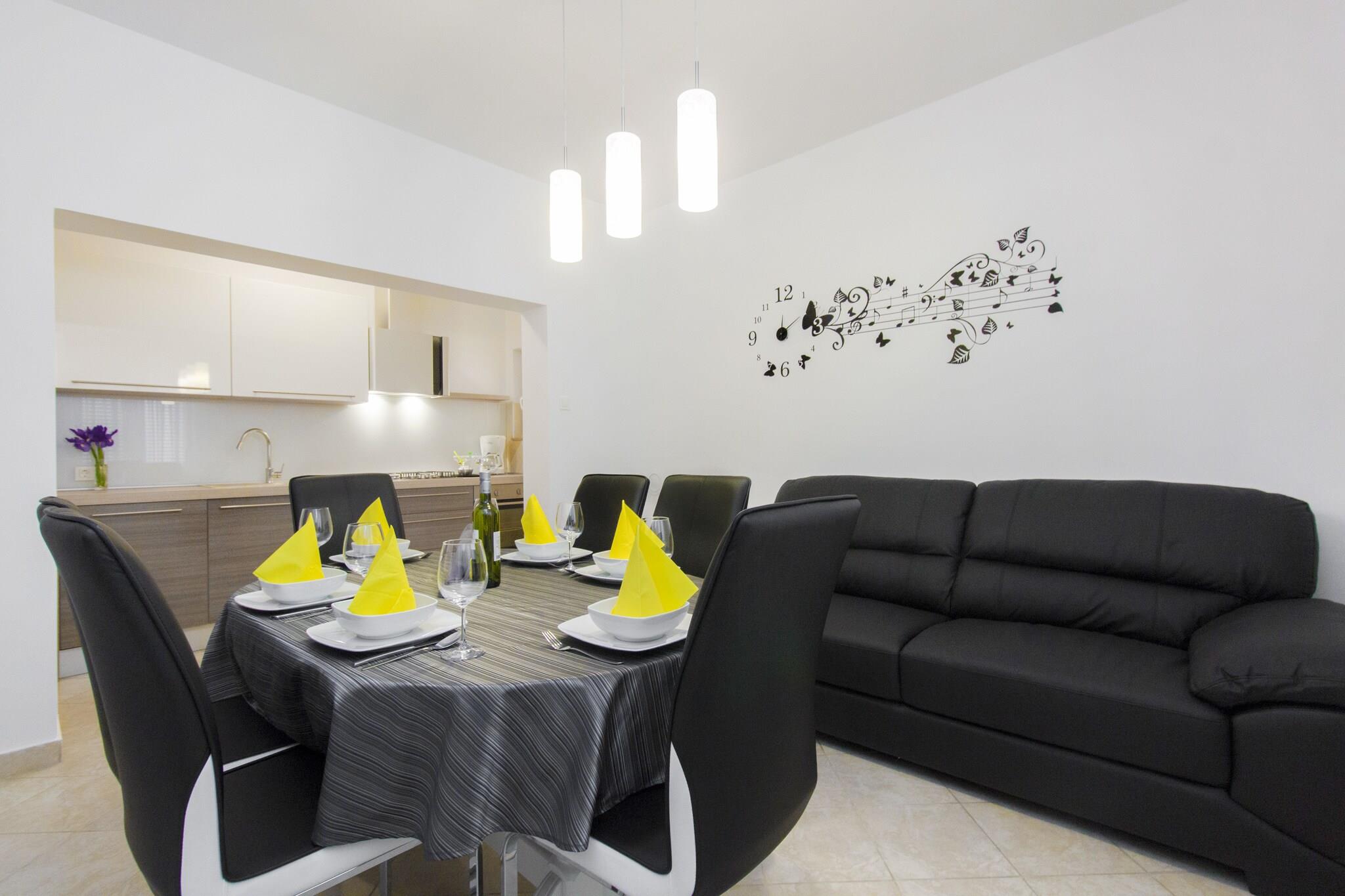 Denne elegante 6-værelses villa ligger mellem Šibenik og Primošten og tilbyder et luksuriøst tilflugtssted for op til 12 gæster. Kun en kort gåtur fra havet og beliggende mellem to strande, er det ideelt for familier eller grupper, der søger sol, komfort og bekvemmelighed. Butikker, restauranter og byens centrum ligger kun 200 m væk, og der er offentlig transport 500 m væk. Villaen har en privat swimmingpool med boblebad, en indhegnet have og en overdækket terrasse med udendørs siddepladser og en grill, perfekt til udendørs spisning. Indenfor sikrer rummelige værelser og moderne bekvemmeligheder et afslappet ophold, mens børn kan nyde legeområdet, og gæsterne kan anmode om cykler til lokal udforskning. Med Split Lufthavn 50 km væk, og nærliggende attraktioner som Krka National Park, Trogir og Split, er denne villa en velindrettet base for at opdage den dalmatiske kyst.