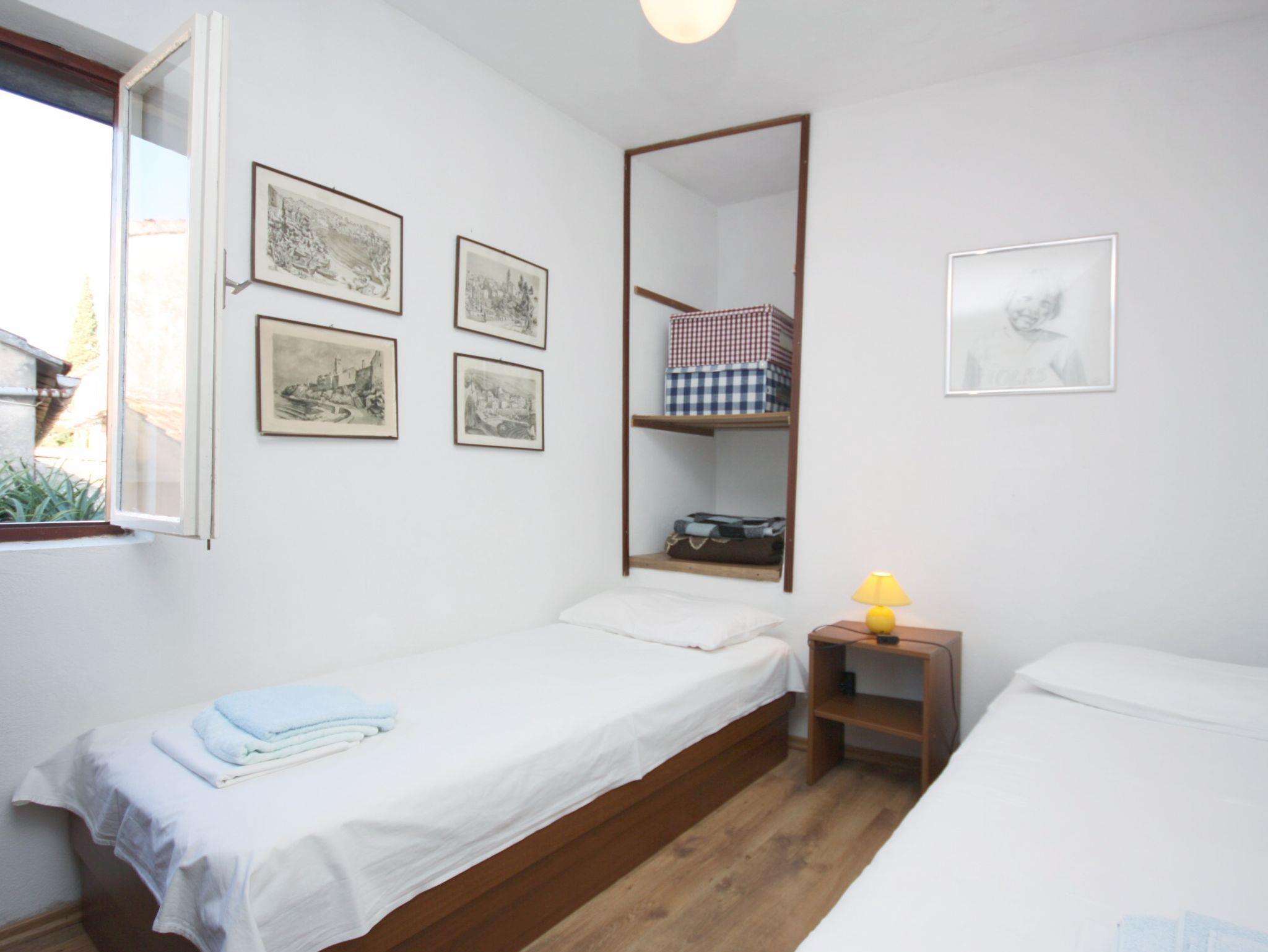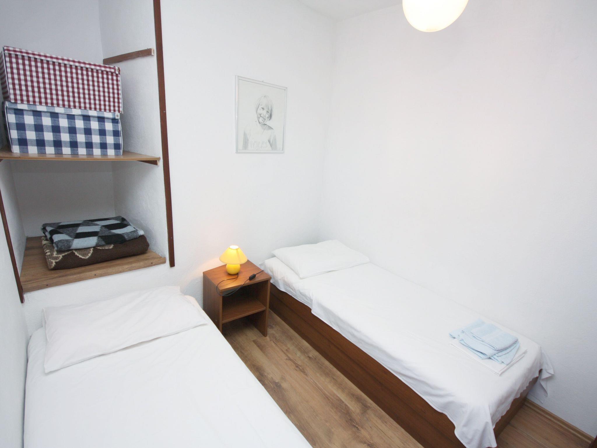 Ferienwohnung bietet Platz für 4 Gäste. Die Betten sind in Schlafzimmern, die es 2 gibt, innerhalb einer Gesamtfläche von 29m2, angeordnet. Die Gäste haben einen eigenen Balkon zur Verfügung, auf der sie in warmen Sommernächten genießen können. Das Apartment bietet Meerblick. In der Unterkunftseinheit besteht die Möglichkeit des Mitbringens von Haustieren, und die Dienstleistung ist im Preis der Unterkunft enthalten. IM PREIS INBEGRIFFEN: Kurtaxe, Endreinigung, Klimatisierung, Internet, Haustiere, Bügeleisen. VERBINDLICHE ZUSÄTZLICHE KOSTEN: Aufzahlung für Kurzaufenthalte (prozentualer Zuschlag pro Nächtigungsanzahl: 30% - 1, 20% - 2, 10% - 3). Die Verfügbarkeit zusätzlicher Dienstleistungen in Ihrem reservierten Termin und die Preise derselben (falls nicht aufgeführt) müssen im Voraus überprüft werden. Zusätzliche Dienstleistungen die in der Zahlungsaufforderung nicht aufgeführt sind werden direkt beim Vermieter bezahlt, angenommen der Gast nutzt auch diese. Ermäßigung auf den Grundpreis: Gratistag 14=13 (bei einem Aufenthalt von 14 Tagen oder mehr erhalten Sie einen Gratistag für den Aufenthalt bis 31.12.26).