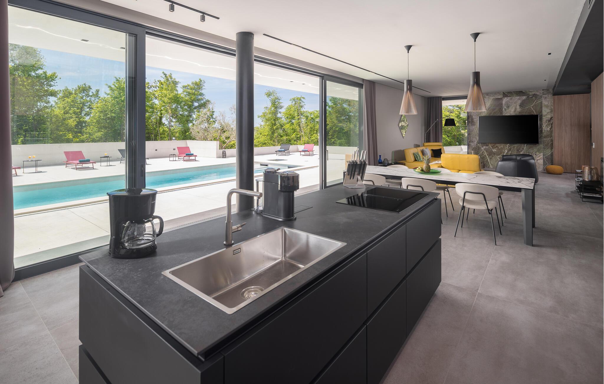 Oplev en uforglemmelig ferie i det nordlige Istrien i dette smukke og komfortable hus. På to store etager mødes udsøgt og smukt design med kvalitetsmøbler og byder på afslapning og underholdning. Nyd privatlivet i de store soveværelser med tilhørende badeværelser, og brug tiden sammen med familien eller venner i det skønne opholdsrum. Tilbered lækre retter i det moderne køkken, og spis sammen med udsigt over poolen.