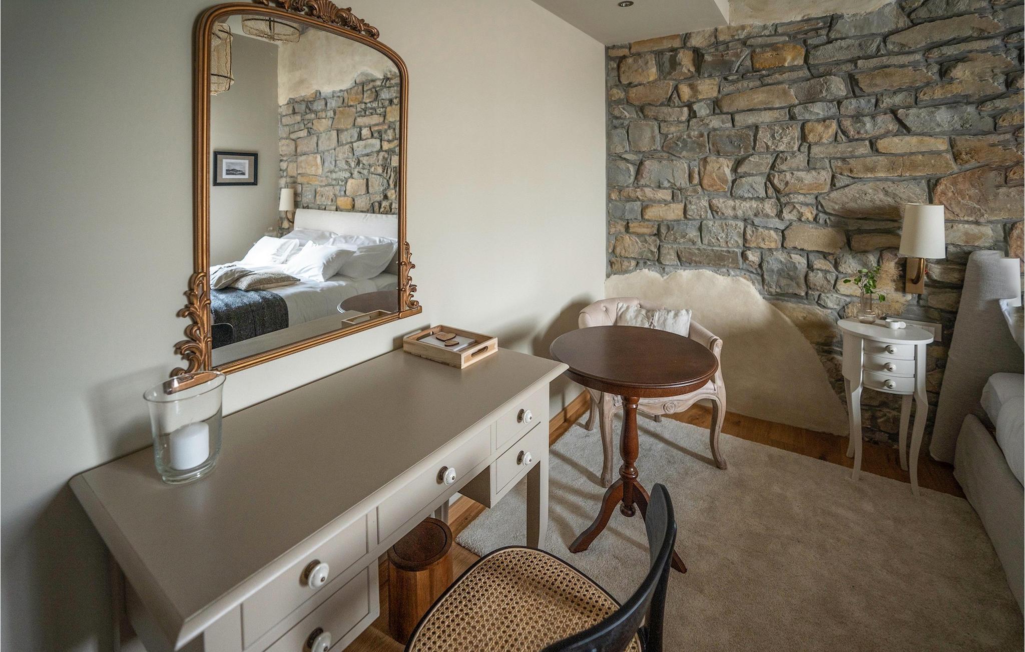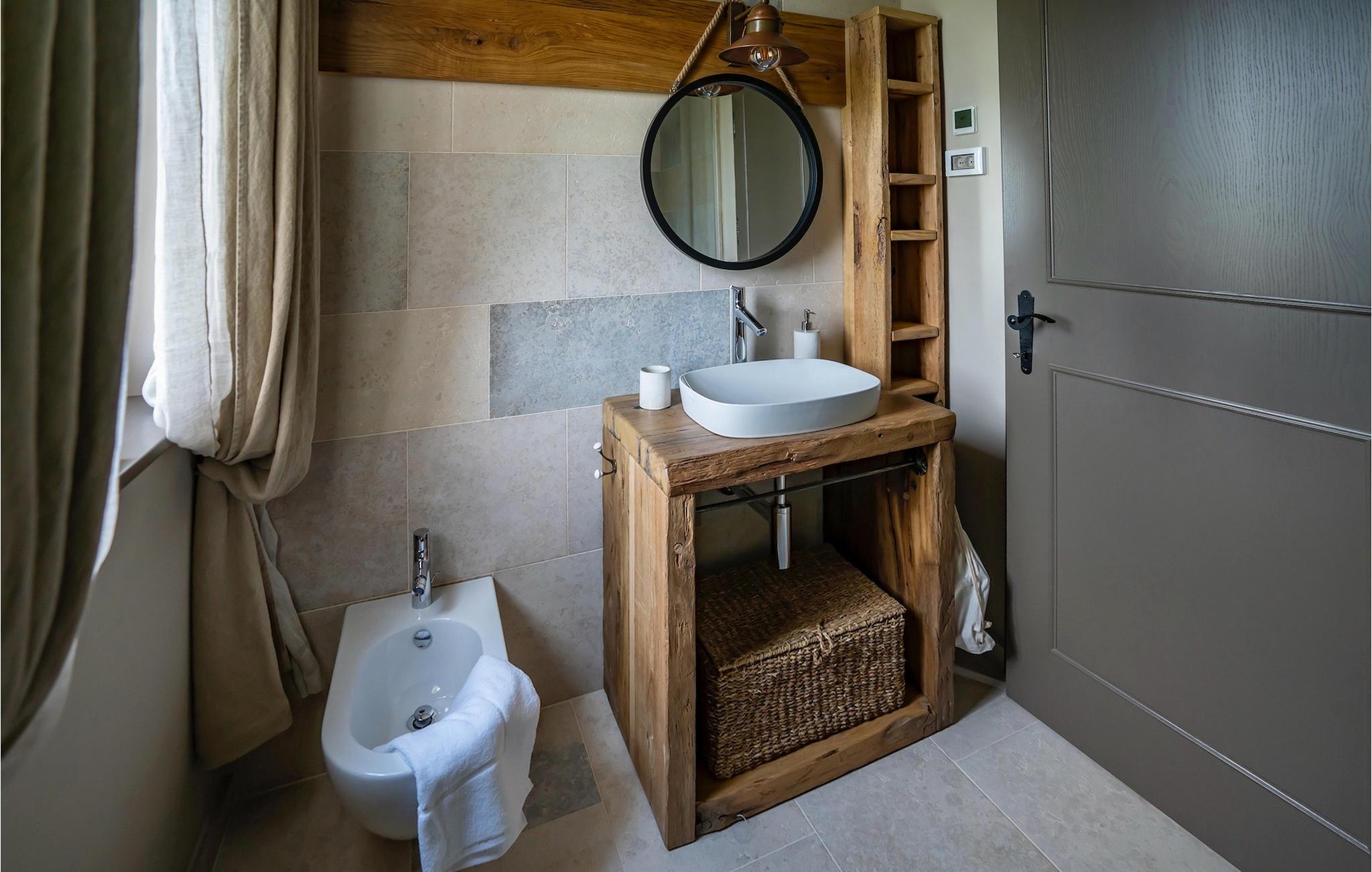 Træd ind i villaens rustikke interiør af høj kvalitet. Elementer lavet af sten og træ får hele opholdsrummet til at se meget hyggeligt ud, og alligevel vil du sætte pris på den moderne teknologi. Ud over opholdsområdet venter et professionelt, fuldt udstyret køkken og den smarte spiseplads på dig.