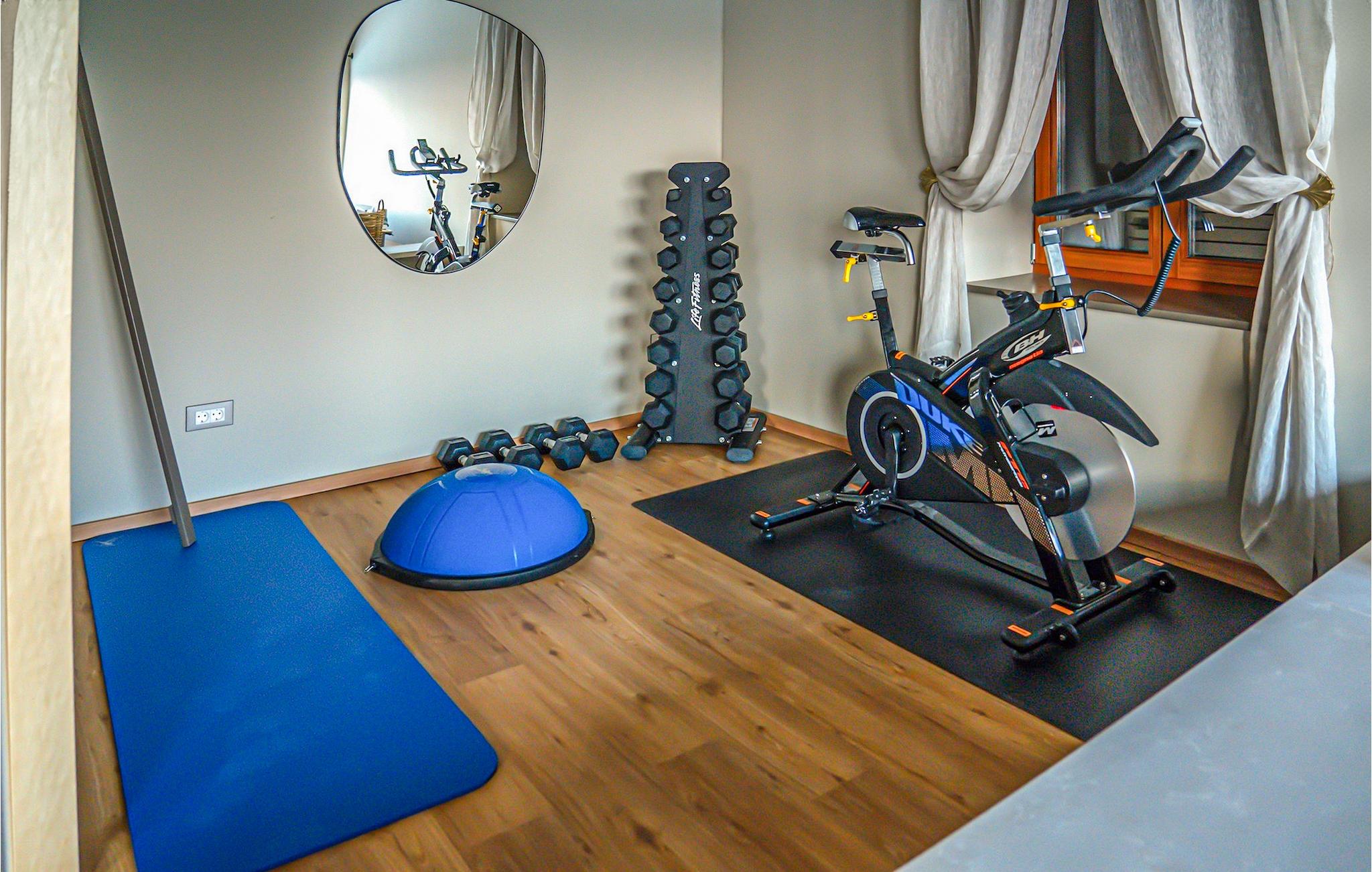 På samme niveau kan du være aktiv i fitnessområdet eller nyde saunaen med udsigt. Her er endnu et separat badeværelse med bruser. For børnene - store og små - byder en spillekonsol på ekstra sjov.