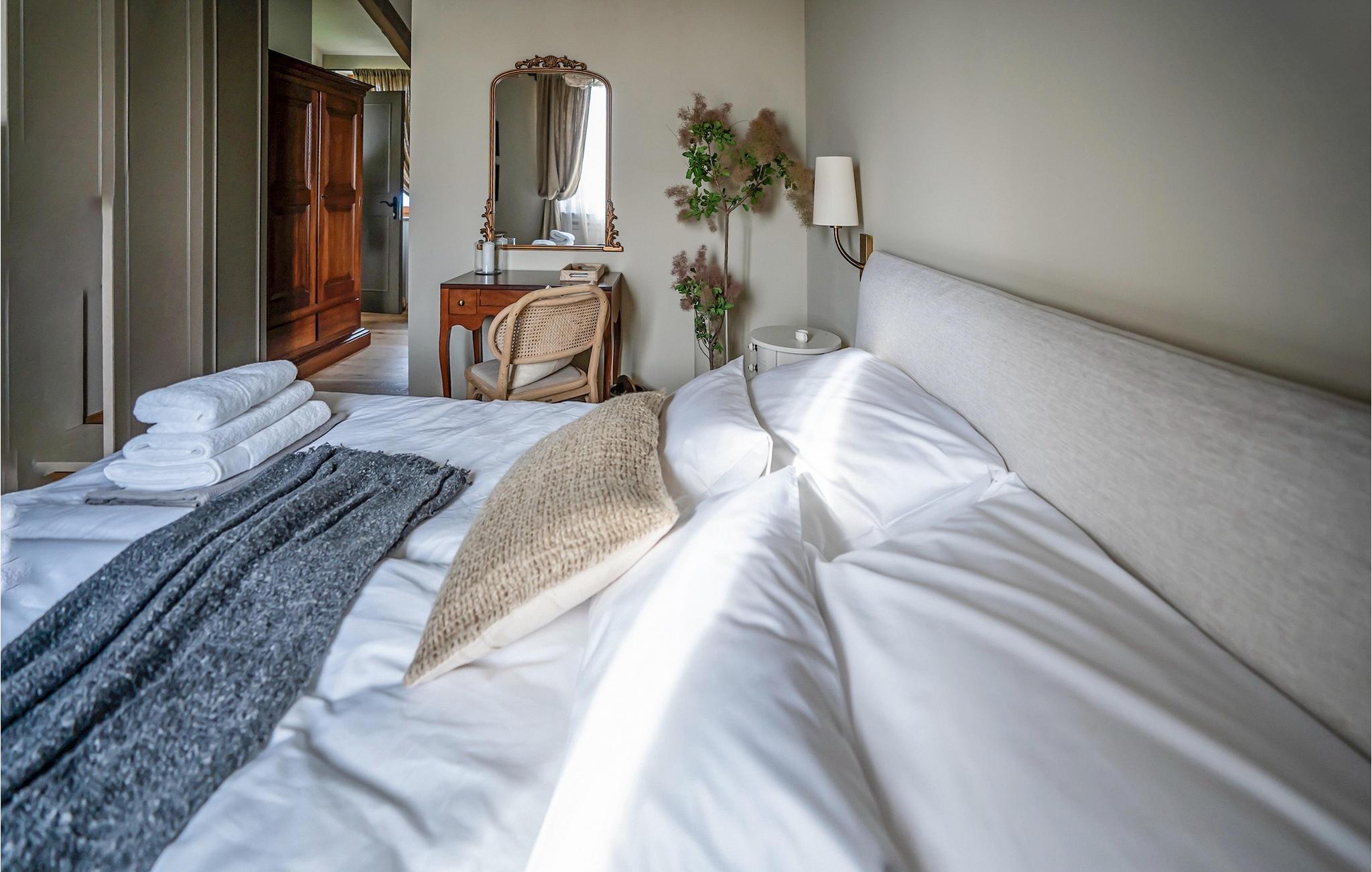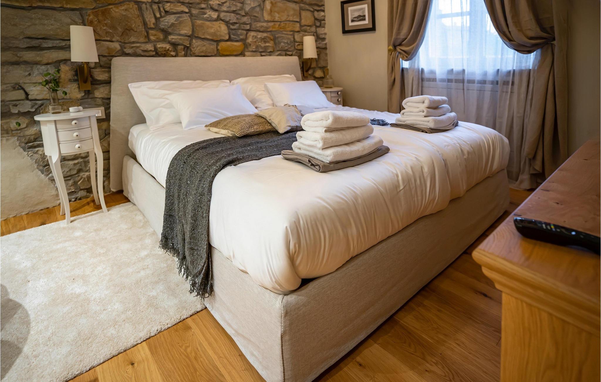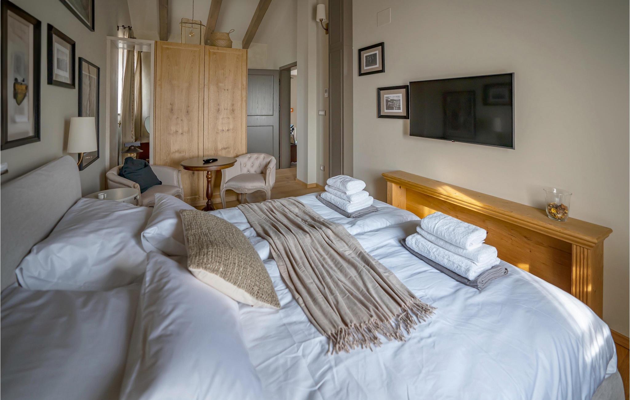 5 hyggelige soveværelser med komfortable dobbeltsenge, som er placeret på øverste etage, lover afslappende nætter. Hvert soveværelse har sit eget moderne badeværelse og er udstyret med aircondition og tv.