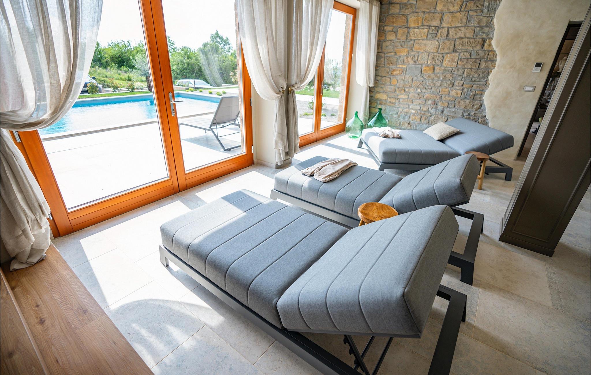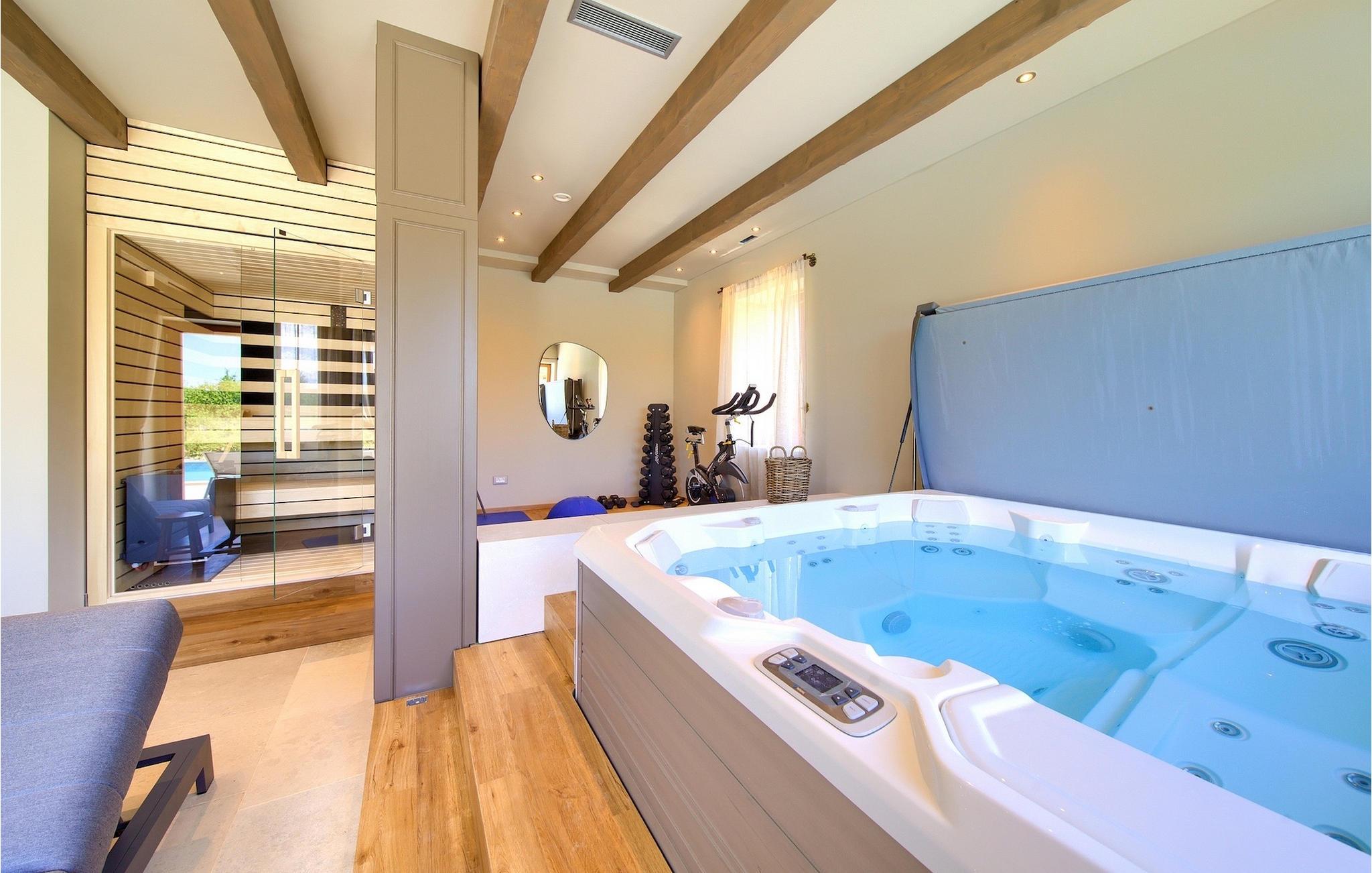 Den storslåede Villa Paradiso dIstria kan virkelig blive dit personlige paradis på jorden. Den imponerende bygning står på en bakke i det nordlige Istrien, omgivet af det fantastiske landskab. Med den smukke panoramaudsigt vil du helt sikkert komme til ro. Hjertet i villaen er dog den forfriskende 61m2 udendørs pool, hvor du sandsynligvis vil nyde det meste af din velfortjente ferie. Komfortable liggestole inviterer dig til at slappe af, mens du bliver forkælet af den istriske sol. Grillpladsen er ideel til at vise dine grillfærdigheder frem og nyde lækre måltider med lokale specialiteter sammen med familie og venner.