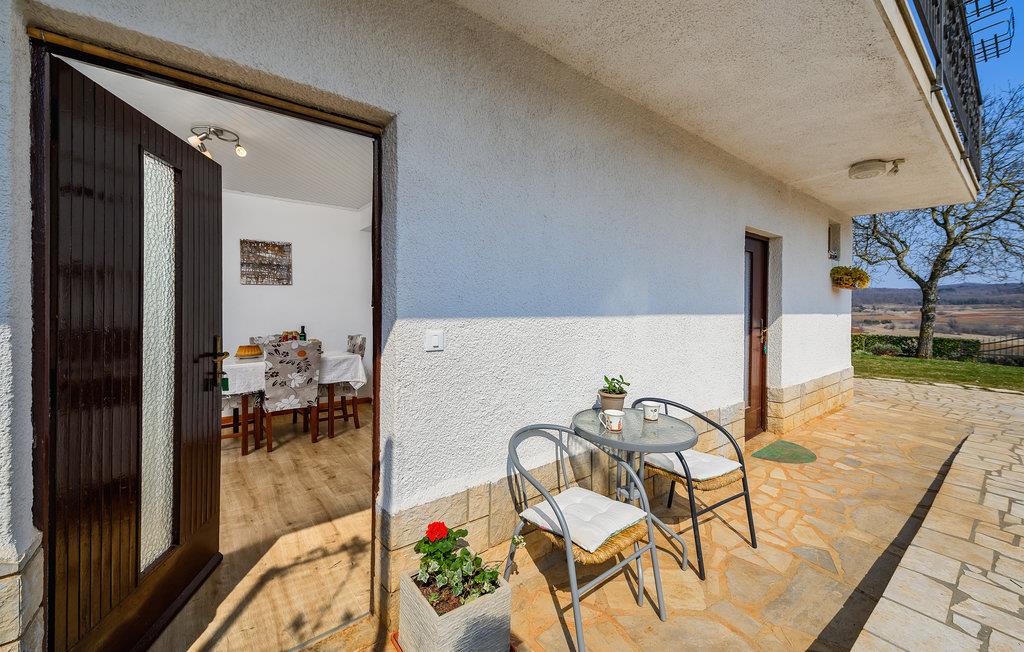 I Istriens bakkelandskaber, i nærheden af den maleriske Oprtalj ligger den lille fredelige by Makovci. Ferielejligheden ligger i stueplan, med en skøn udsigt ud over det omgivende landskab. Nyd de skønne sommerdage med fuglesang i ørerne, på den dejlige terrasse. I området kan I cykle ture på mountain-bike-stier (Parenzana), besøge bondegårde og købe friske produkter i gårdbutikkerne. Vi kan også anbefale besøg i de historiske byer Grožnjan og Motovun begge med borge, som kan nås på en kort køretur i bil. Smag de mange lækre egnsretter ikke mindst af de lækre trøfler som ofte tilbydes i den berømte by Livada.
