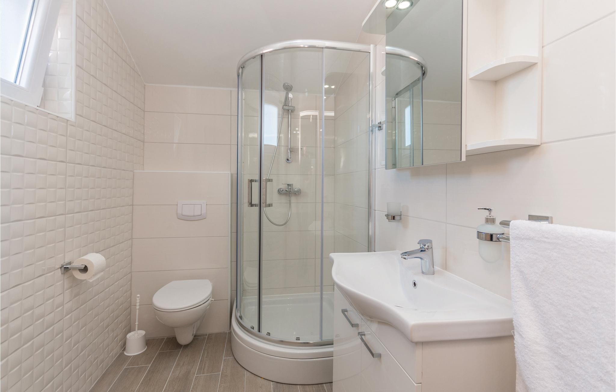 Badeværelse (nr. 1) - WC. Varmt og koldt vand. Bruser