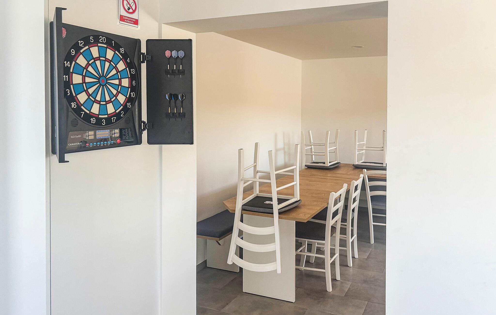Dette rummelige og komfortable feriehus tilbyder dejlige ekstrafunktioner for hele familien, hvilket gør jeres ferie til en virkelig mindeværdig oplevelse. Glæd jer til dejlige måltider og afslappende øjeblikke i saunaen, lad jeres børn more sig med dart, bordfodbold eller airhockey, og planlæg jeres aktiviteter over et glas vin på den behagelige sofa.