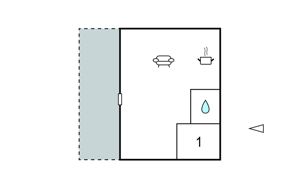 Badeværelse 3m2 (nr. 1) - WC. Varmt og koldt vand. Bruser