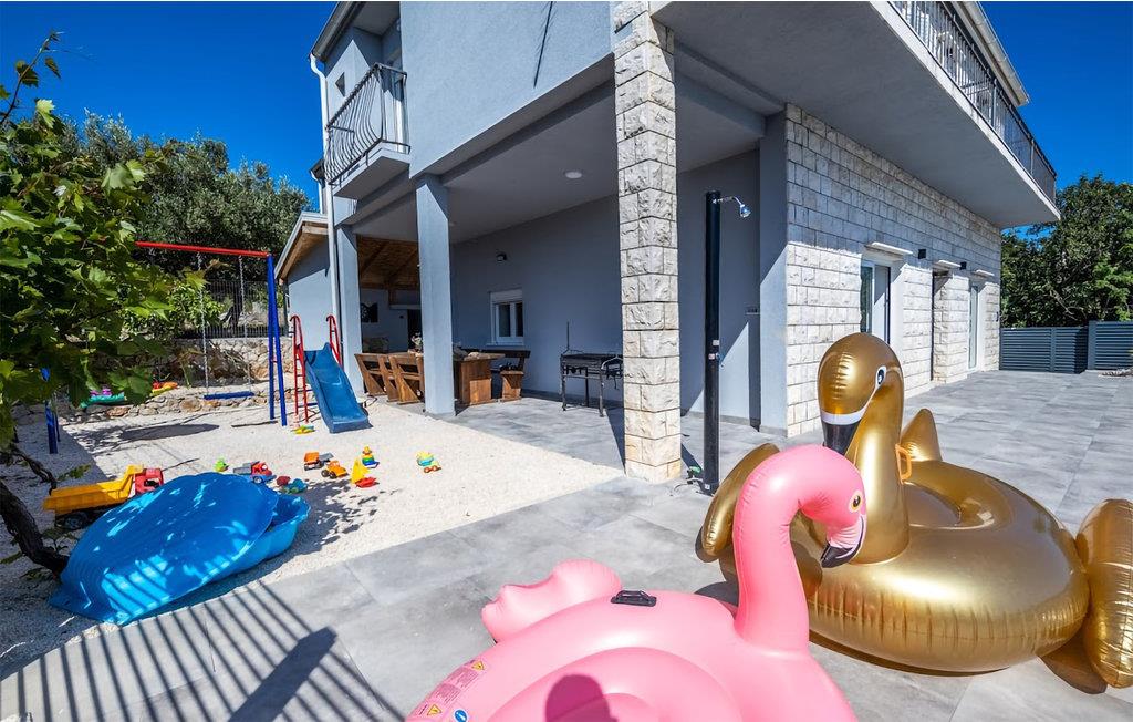 Med sine lyse værelser og moderne indretning i subtile farver er huset den ideelle kulisse for en hyggelig tid med familien i eksklusive omgivelser. Efter en dejlig feriedag kan I finde jer til rette i sofaen i stuen, spille spil i aktivitetsrummet, spise sammen og om aftenen reflektere over, hvad I har oplevet sammen. Husets attraktive udendørsareal indbyder til at tilbringe meget tid udendørs. Her kan I sætte jer til rette i en loungestol med en bog og nyde en dukkert af og til i poolen, mens jeres børn rutsjer og gynger. Senere samles hele familien til lækkerier fra grillen og nyder den milde sommeraften.