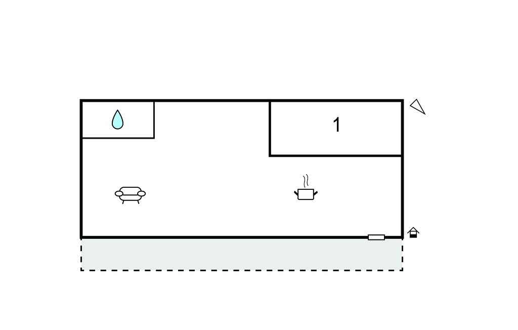 Opholdsstue/køkken 15m2 - 2 Sovepladser. (Sofa, madras eller lignende).