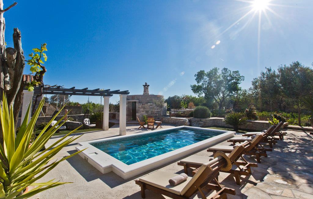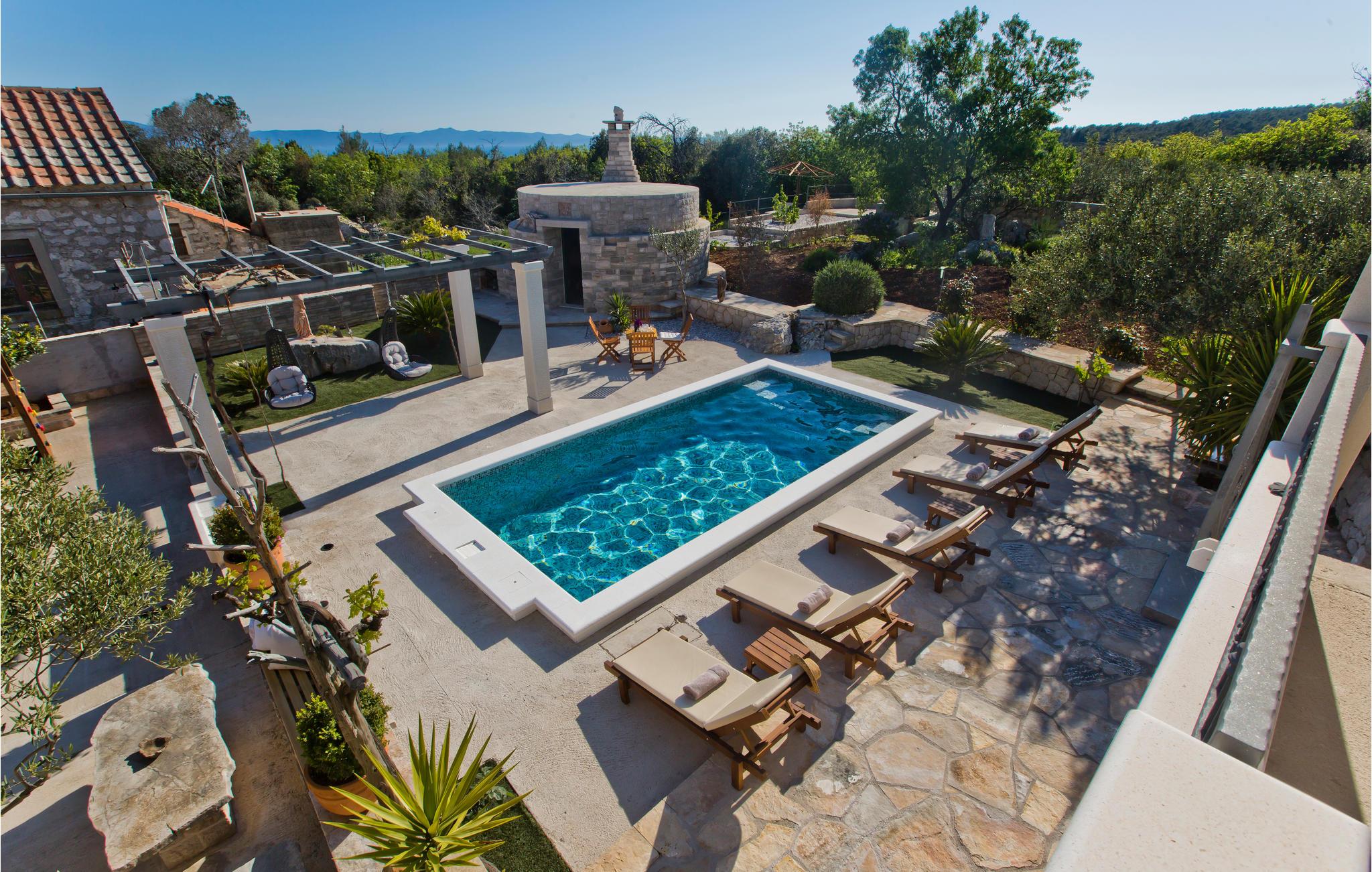 Kom til dette skønne feriehus med familie eller venner og jeres kæledyr. Her kan I virkelig slappe af og føle jer helt trygge. De behagelige og stilfuldt indrettede værelser inviterer jer til at slappe af og tilbyder jer alt, hvad I behøver for en ubekymret ferie. Frem for alt vil I blive imponeret over husets udendørsareal. Tilbring utallige timer ved poolen, lad jeres børn boltre sig på legeudstyret og nyd frisk frugt og kolde drinks i skyggen. Om aftenen kan I sidde hyggeligt sammen i det lille værtshus og smage regional spiritus og spille et spil kort.