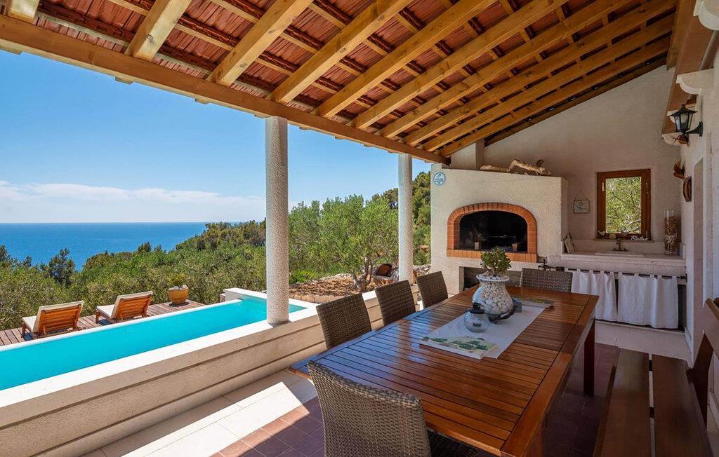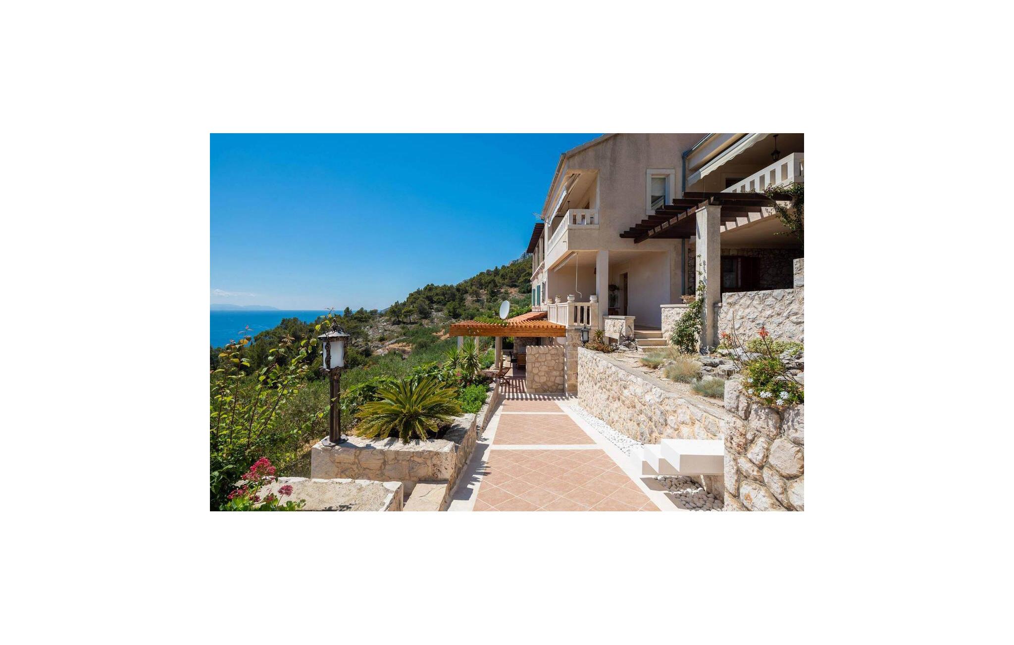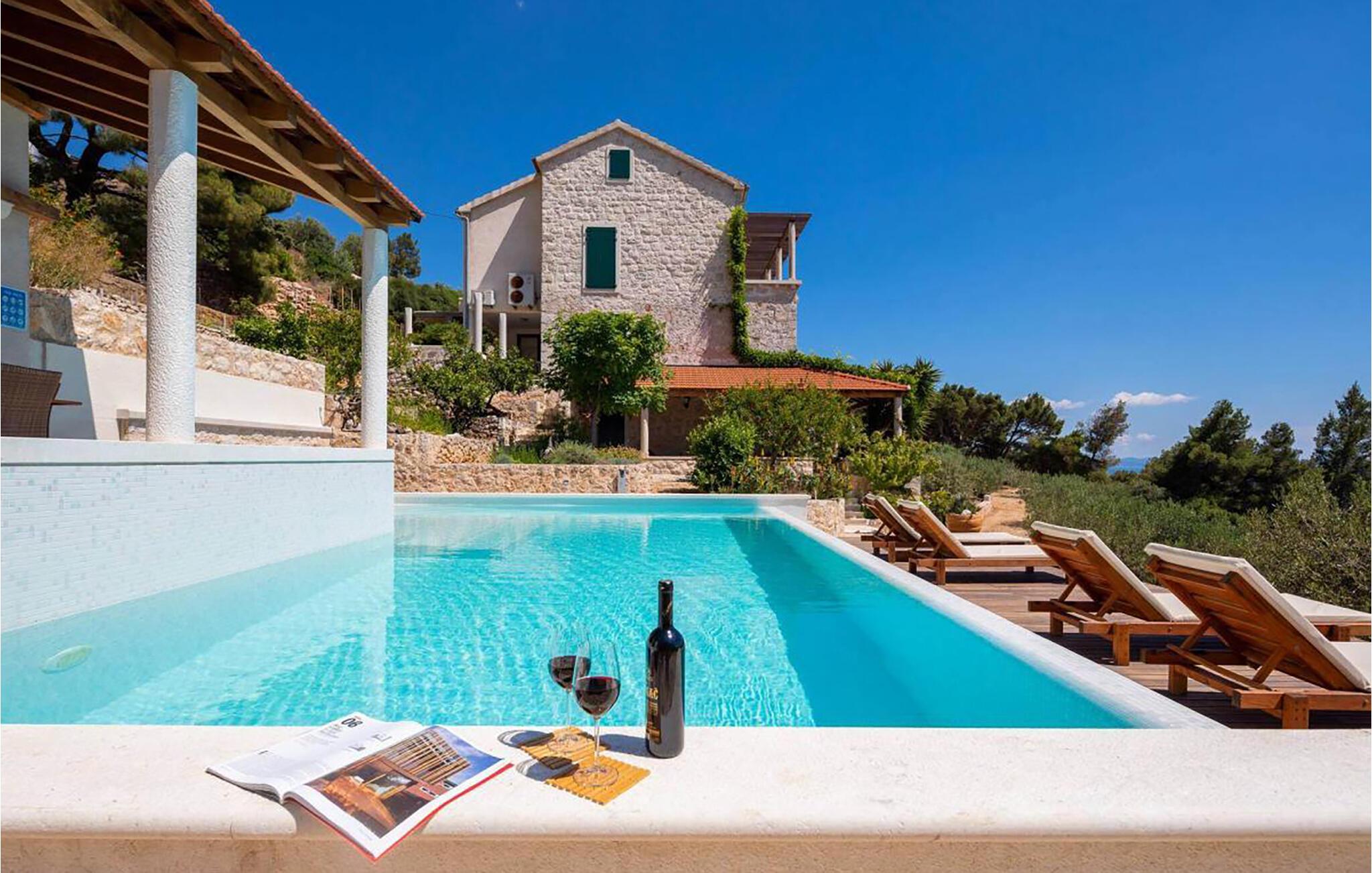 Tilbring en drømmeferie i dette rummelige feriehus med pool og havudsigt. Dette sensationelle, børnevenlige feriehus tilbyder masser af plads til at nyde adskillige ekstrafunktioner under en hyggelig ferie med venner eller den udvidede familie. Saml jer til hyggelige måltider og spilleaftener, mindes svundne tider, eller træk jer tilbage med en god bog i en af de mange indbydende kroge. Flere terrasser med fantastisk havudsigt inviterer jer til at spise og slappe af. Forfrisk jer selv i den pragtfulde pool, når I har lyst, udfordr hinanden til et spil bordtennis eller badminton, og lad jeres børn have det sjovt på de dejlige udendørslegepladser. Tænd op i grillen og nyd stemningsfulde aftener med vin og stearinlys. Udforsk de charmerende gader i Jelsa og prøv regionale retter i traditionelle konobas (taverner). Tag en bådtur til Pakleni-øerne og svøm i krystalklart vand. Beundr lavendelmarkerne nær Velo Grablje, vandr gennem olivenlunde og vinmarker, udforsk den historiske by Stari Grad og besøg Španjola-fæstningen over Hvar by.