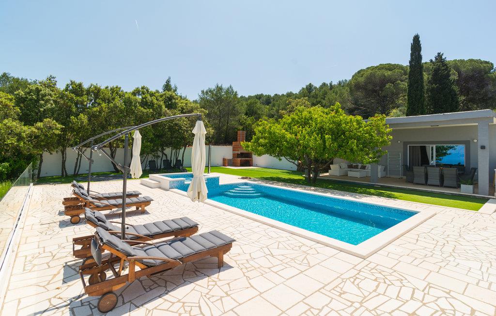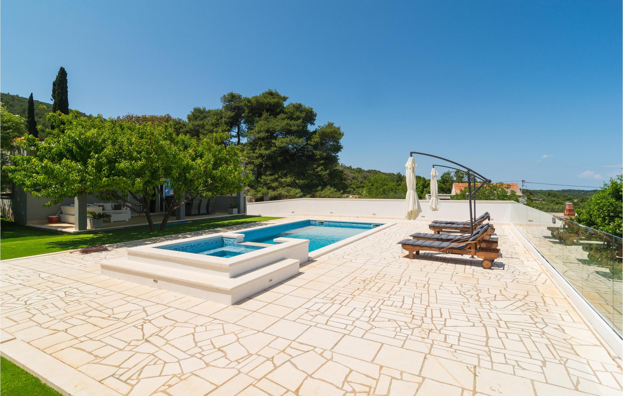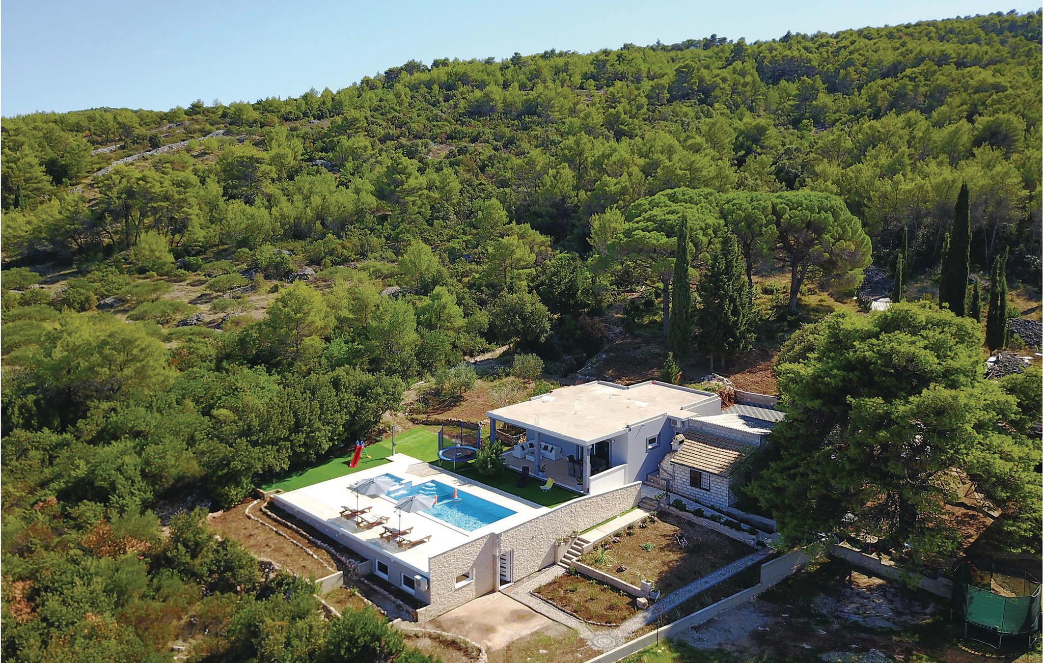 Ha en fantastisk ferie i dette moderne indrettede feriehus på øen Hvar. Øen er kendt som den kroatiske ø med de fleste solrige dage om året. Huset byder komfort med to siveværelser, et badeværelse og en stue med køkken i kombination. Udenfor har I et meget flot panoramaudsigt fra den overdækkede terrasse og poolområdet. I fitnessrummet i souterrain har en douche. I nærheden er der meget flotte bugter som bugten Zecja og Vela Stiniva. Udover garagen står to overdækkede parkeringspladser til jeres rådighed. Har I lyst til et eventyr, kan I køre til Adventure Park Jelsa. Den sidste weekend i august kan I besøge en vinfest i Jelsa.