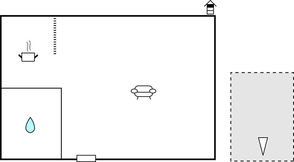 Opholdsstue/køkken - 2 Sovepladser. (Dobbeltseng(e)).