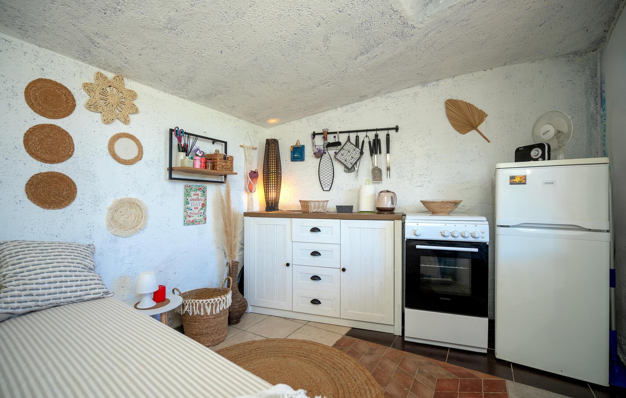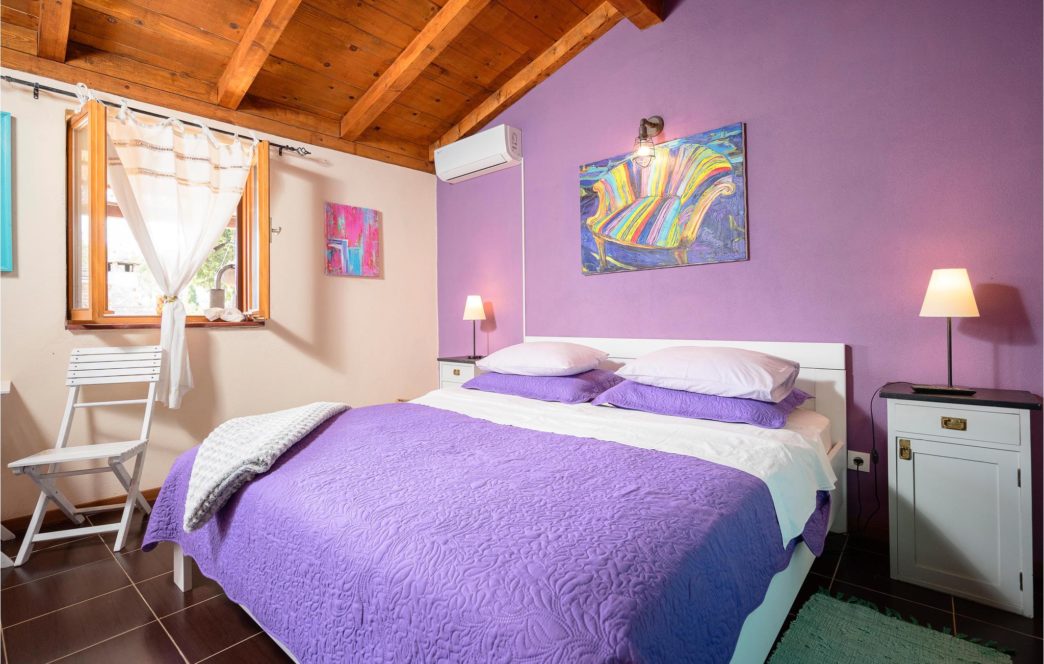 Huset er opført i den oprindelige dalmatiske stil og indrettet på en hjemlig og tiltalende måde, her finder I alt, hvad I behøver til en vellykket ferie. Der er to soveværelser, så huset kan rumme fire personer. To kæledyr er også velkomne. Huset kan bruges på alle tider af året, og der er en behagelig temperatur om sommeren takket være klimaanlægget. Om aftenen spreder pejsen en hyggelig varme.