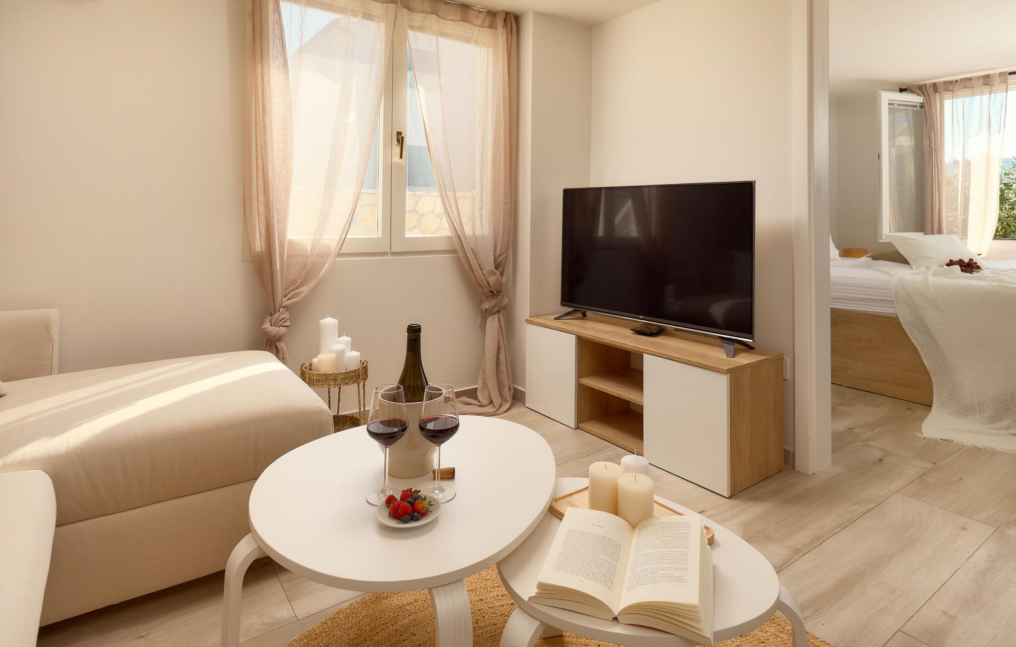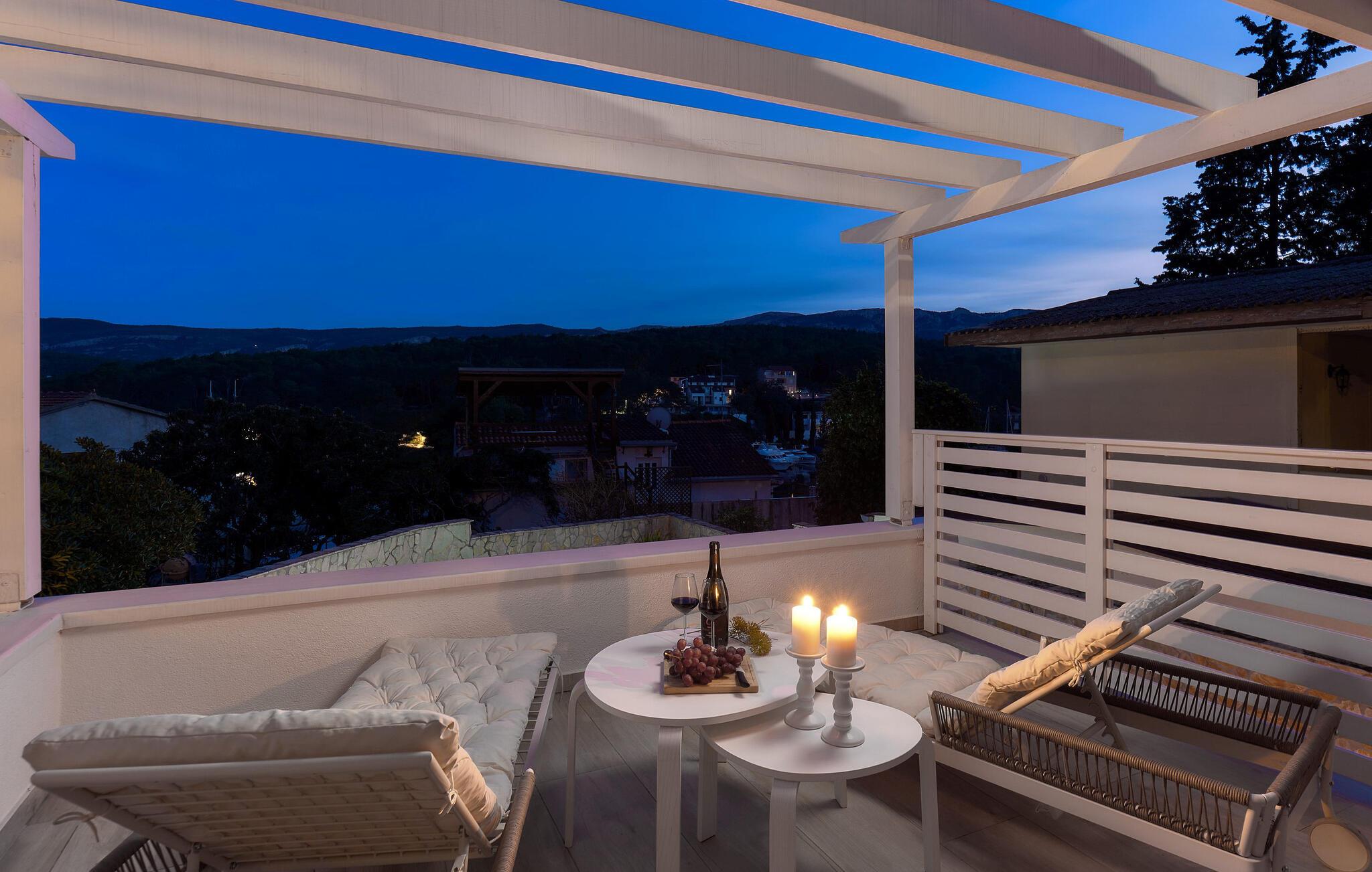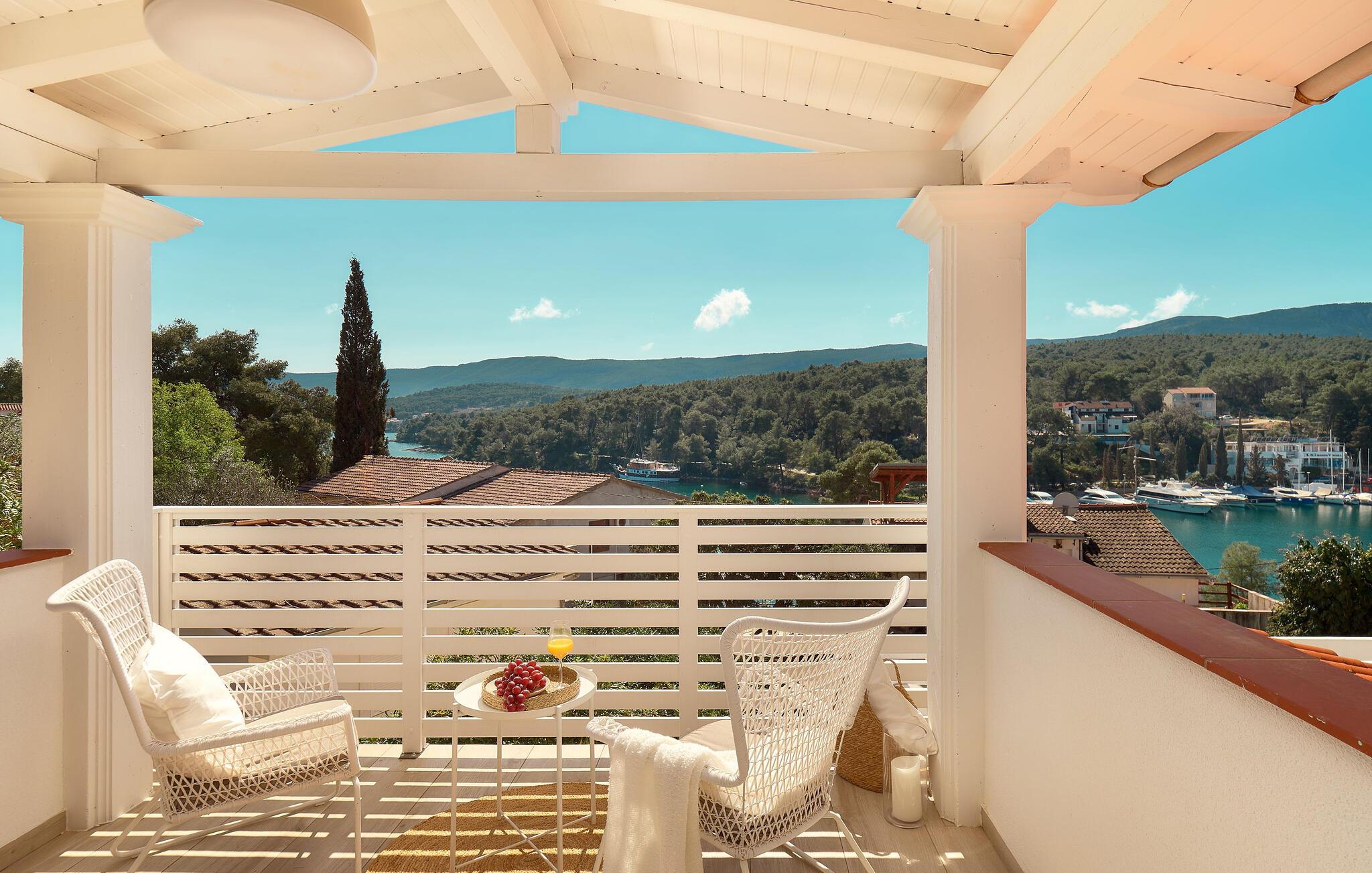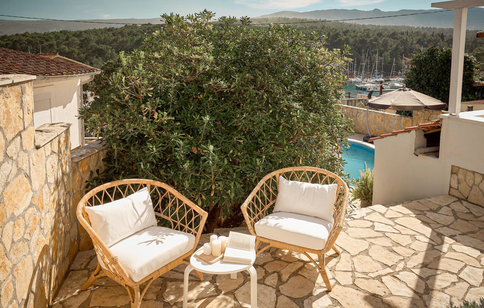 ?af ?fyrre- og cyprestræerne og dyppe jer i poolen fra morgen til aften. Lad en solrig dag gå på hæld med et godt glas vin, mens I lader blikket vandre over havet og lystbådehavnen.