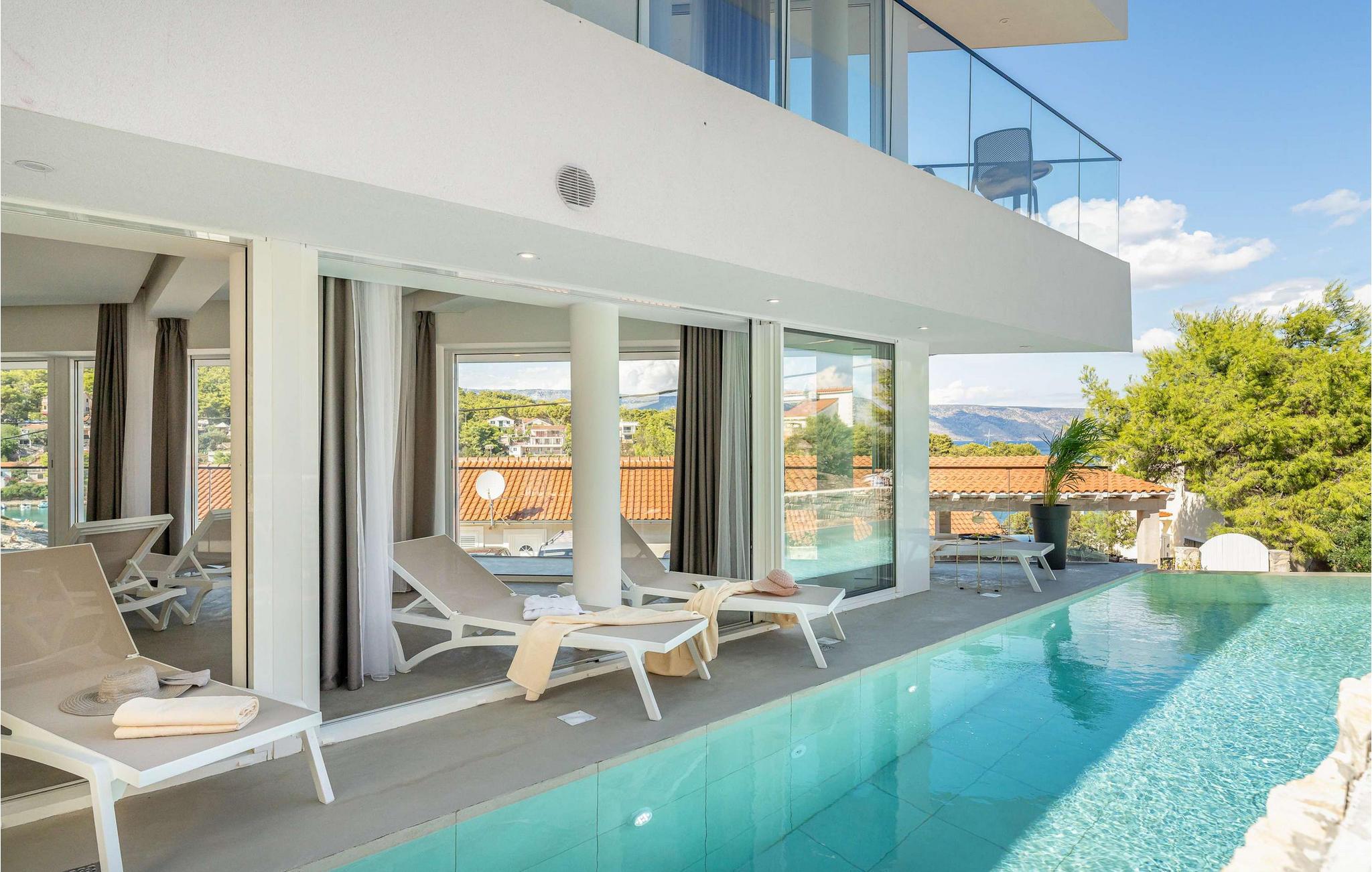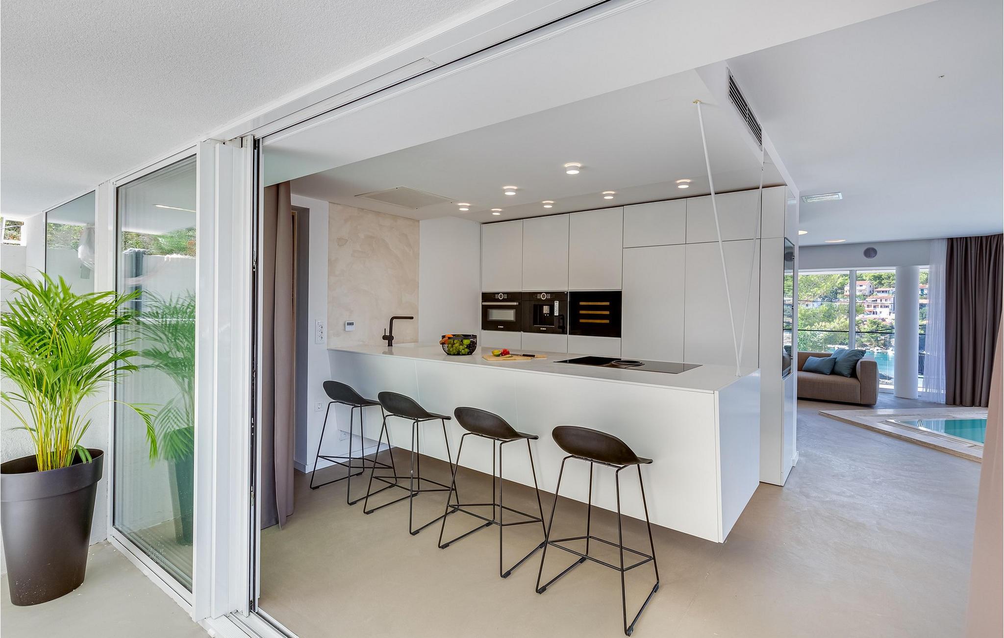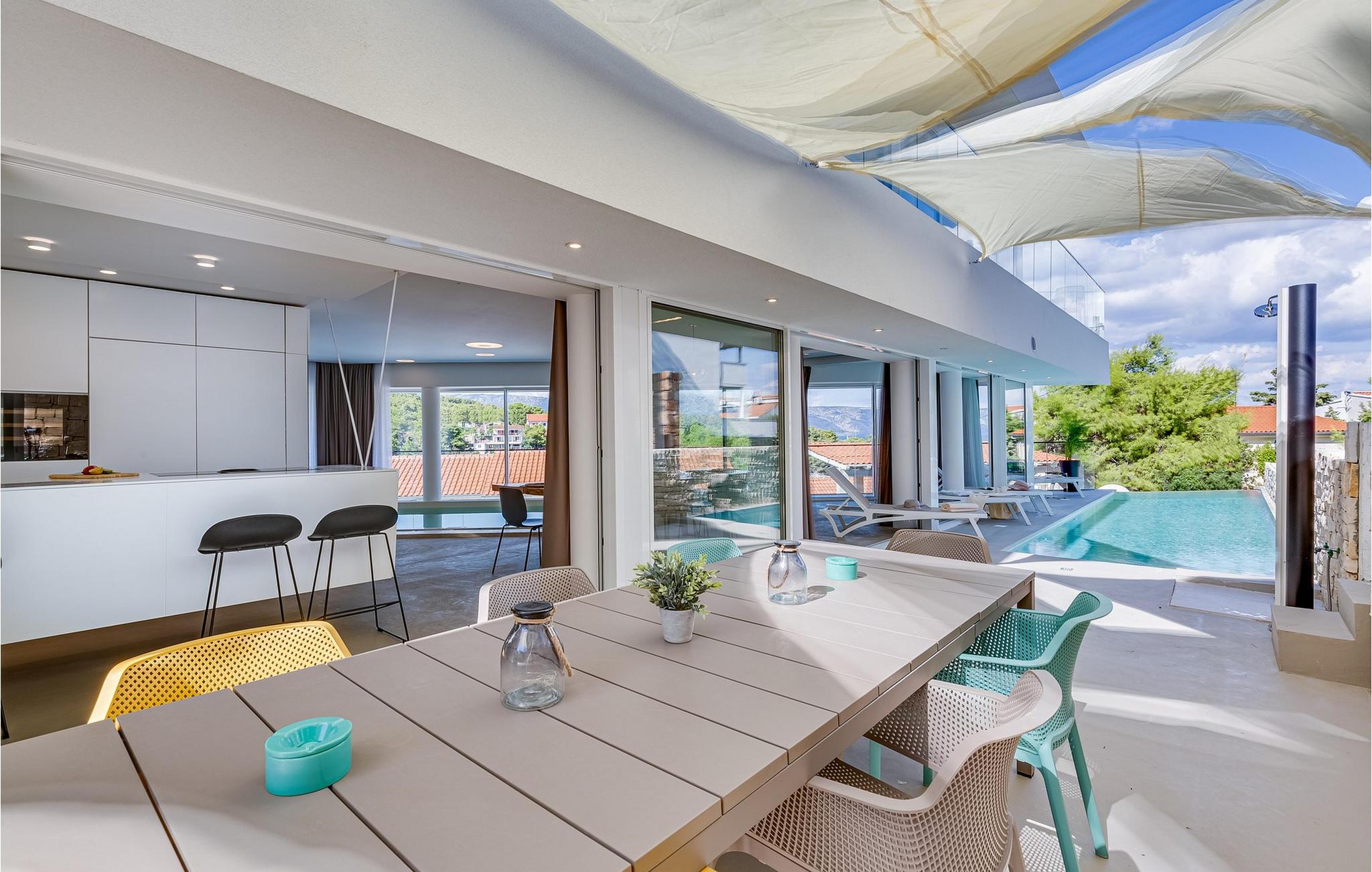 Det elegante udendørsområde er perfekt til at få mest muligt ud af Hvars lange solskinstimer. Tag en afslappet dukkert i den storslåede udendørs pool om morgenen, nyd en lækker morgenmad på den rummelige terrasse, lad batterierne op på de komfortable liggestole, og fejr kvalitetstid sammen med mindeværdige grillmiddage om aftenen.
