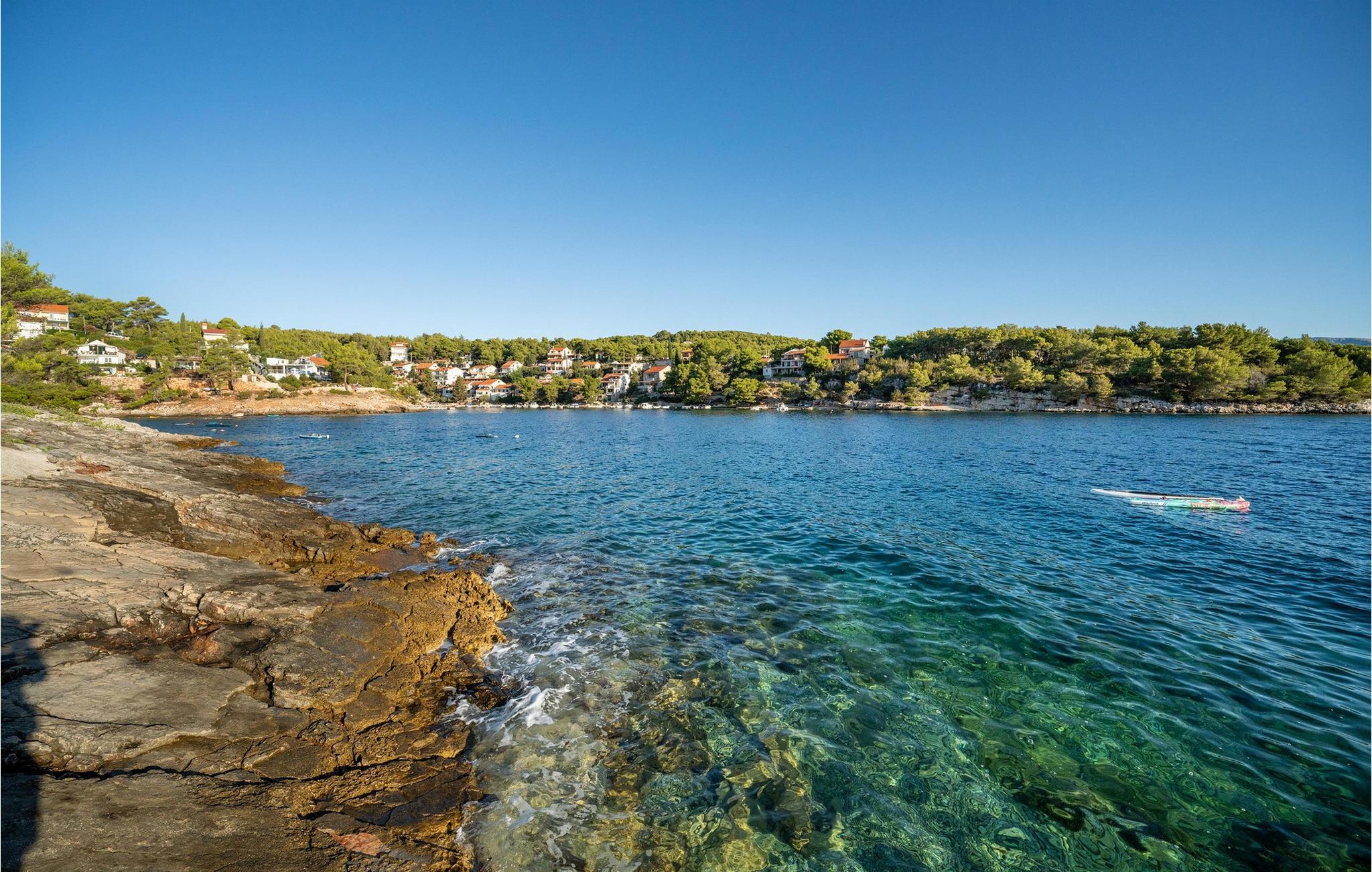 ` ...], Tag en slentretur til Basinas klippestrand, hvor I kan dyrke vandsport og svømme i det krystalklare Adriaterhav. Lyt til fårekyllingers kvidren og bølgerne, og tag en tur til naboøen Brac med dens berømte Zlatni-strand. Gå en tur gennem den maleriske landsby Vrbovska, besøg dens historiske kirker, og prøv dalmatiske specialiteter som skaldyr, frisk fisk eller risotto på hyggelige restauranter.
