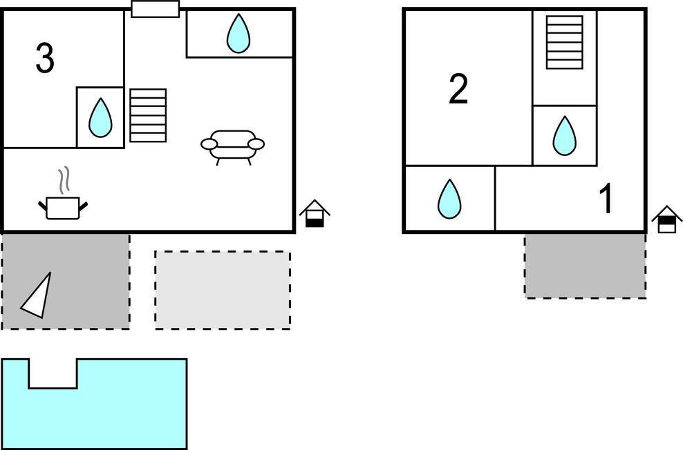 Opholdsstue/køkken 40m2 - 2 Sovepladser. (Sofa, madras eller lignende).
