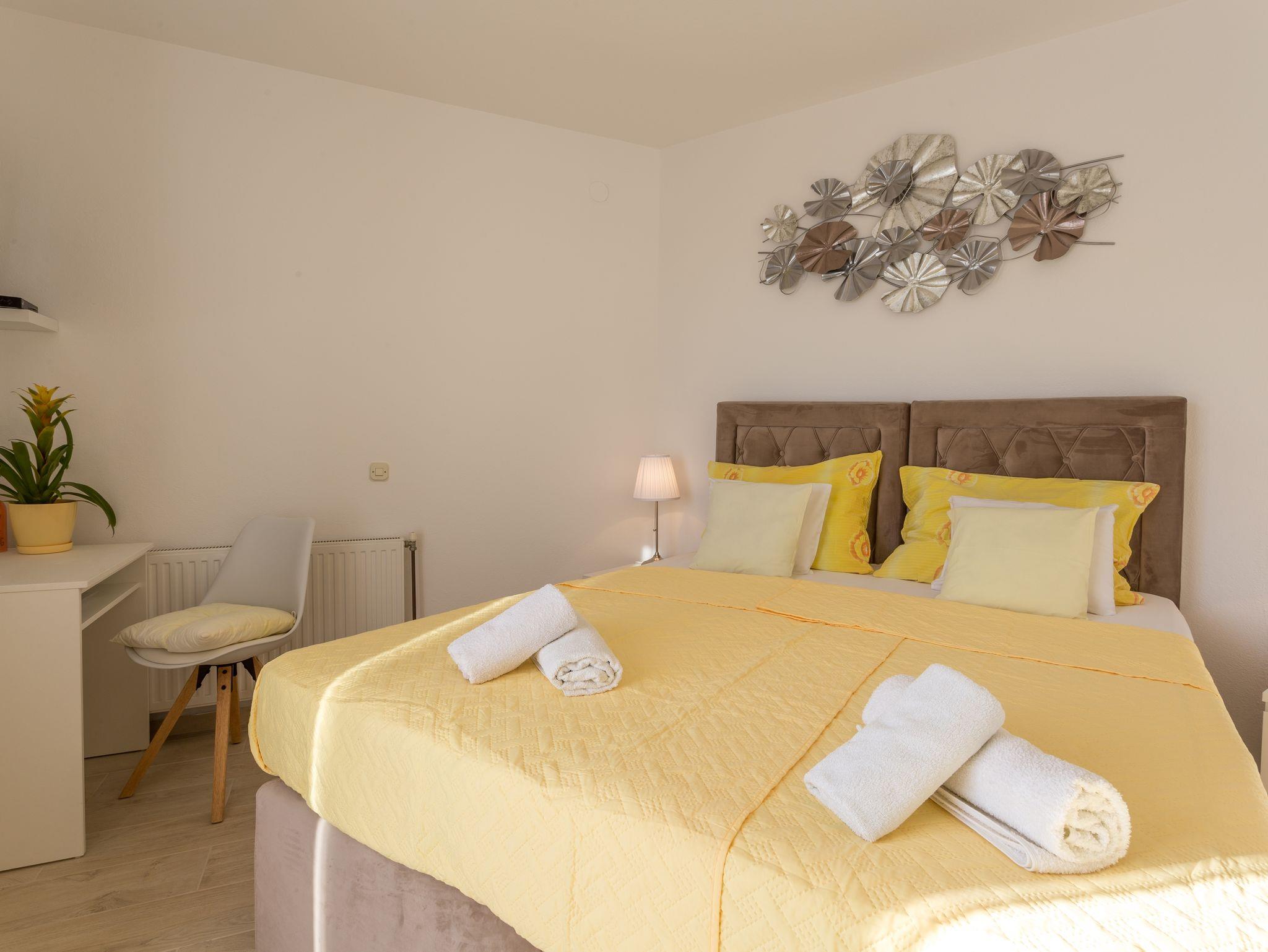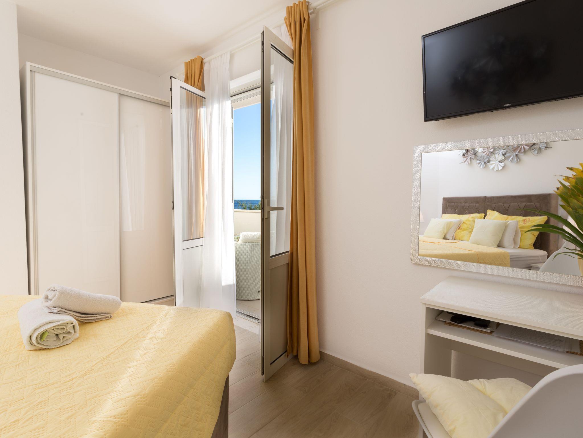 Zimmer bietet Platz für 2 Gäste. Die Betten sind in Schlafzimmern, die es 1 gibt, innerhalb einer Gesamtfläche von 18m2, angeordnet. Die Gäste haben einen eigenen Balkon zur Verfügung, auf der sie in warmen Sommernächten genießen können. Das Zimmer bietet Meerblick. Die reservierte Unterkunftseinheit ist ein Zimmer mit eigenem Badezimmer ohne die Möglichkeit der Nutzung einer Küche. IM PREIS INBEGRIFFEN: Kurtaxe, Endreinigung, Klimatisierung, Parkplatz, Internet. VERBINDLICHE ZUSÄTZLICHE KOSTEN: Aufzahlung für Kurzaufenthalte (prozentualer Zuschlag pro Nächtigungsanzahl: 30% - 1, 20% - 2, 10% - 3). Die Verfügbarkeit zusätzlicher Dienstleistungen in Ihrem reservierten Termin und die Preise derselben (falls nicht aufgeführt) müssen im Voraus überprüft werden. Zusätzliche Dienstleistungen die in der Zahlungsaufforderung nicht aufgeführt sind werden direkt beim Vermieter bezahlt, angenommen der Gast nutzt auch diese.