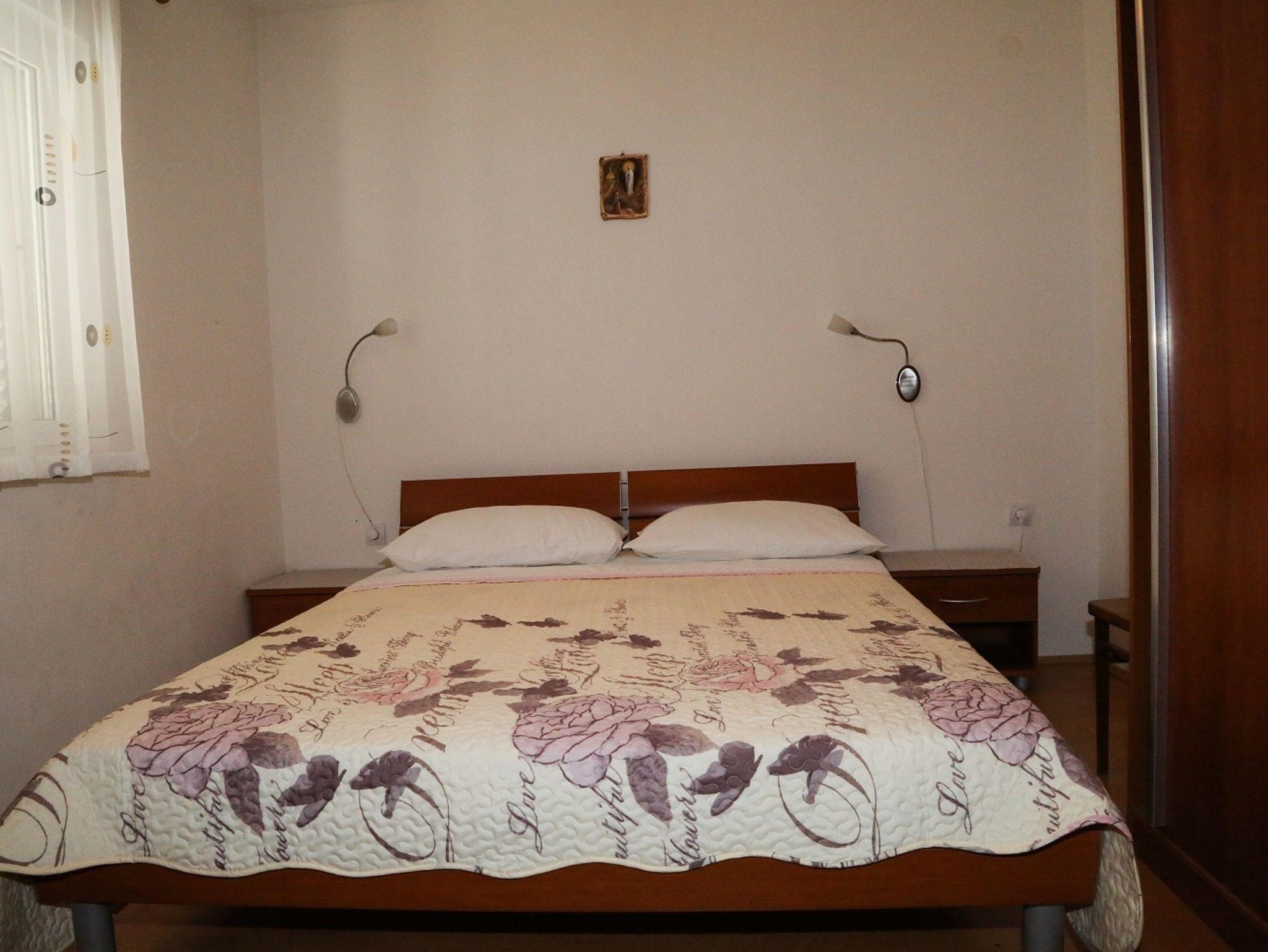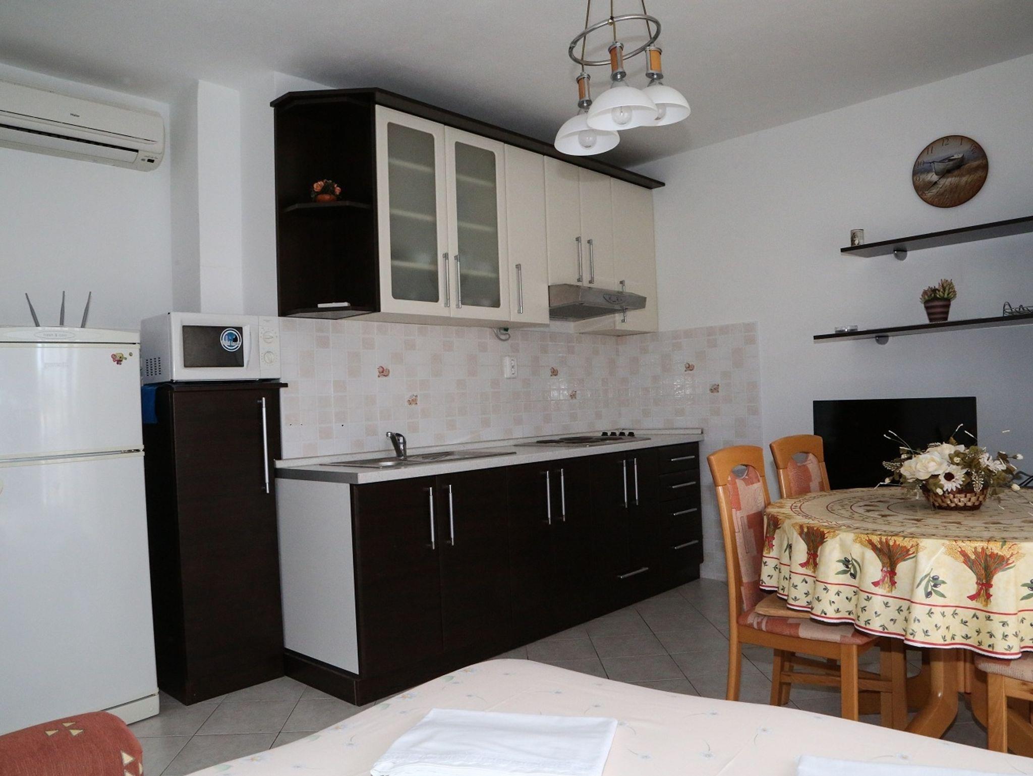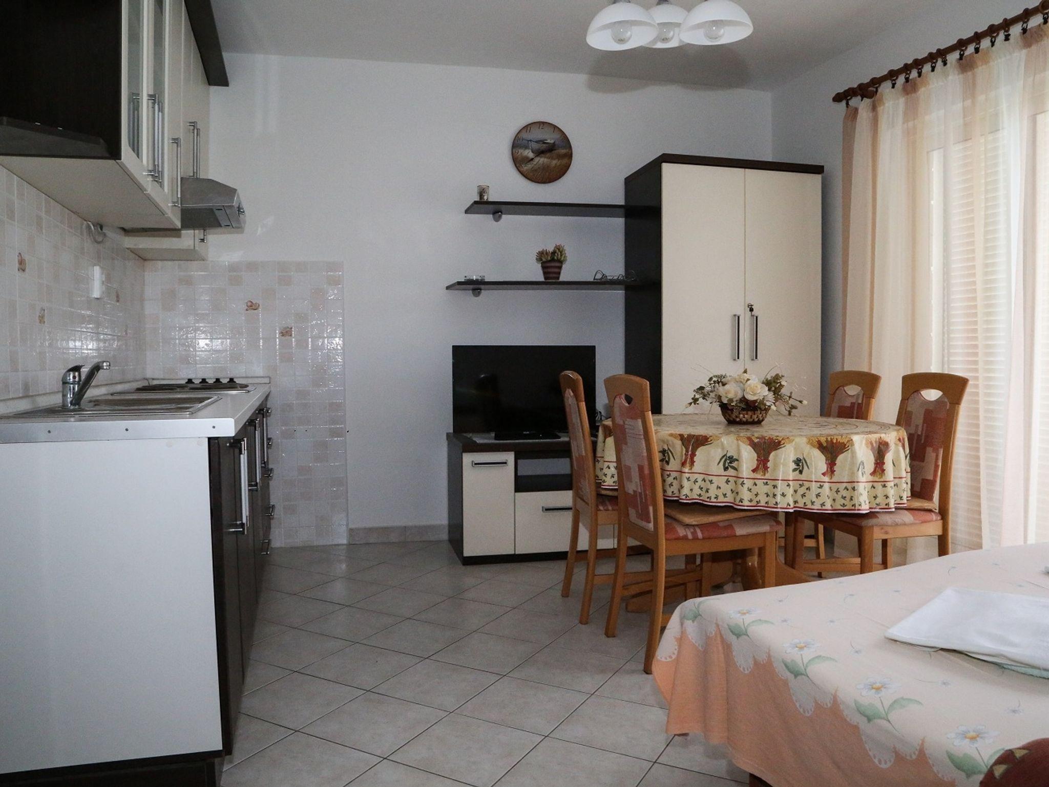 Ferienwohnung bietet Platz für 4 Gäste. Die Betten sind in Schlafzimmern, die es 1 gibt, und in Esszimmer, innerhalb einer Gesamtfläche von 33m2, angeordnet. Die Gäste haben eine eigene Terrasse zur Verfügung, auf der sie in warmen Sommernächten genießen können. Das Apartment bietet Meerblick. Es ist erlaubt, Speisen auf dem Gemeinschafts-Grill vorzubereiten. IM PREIS INBEGRIFFEN: Kurtaxe, Endreinigung, Klimatisierung, Internet, Zusatzbett. Die Verfügbarkeit zusätzlicher Dienstleistungen in Ihrem reservierten Termin und die Preise derselben (falls nicht aufgeführt) müssen im Voraus überprüft werden. Zusätzliche Dienstleistungen die in der Zahlungsaufforderung nicht aufgeführt sind werden direkt beim Vermieter bezahlt, angenommen der Gast nutzt auch diese.