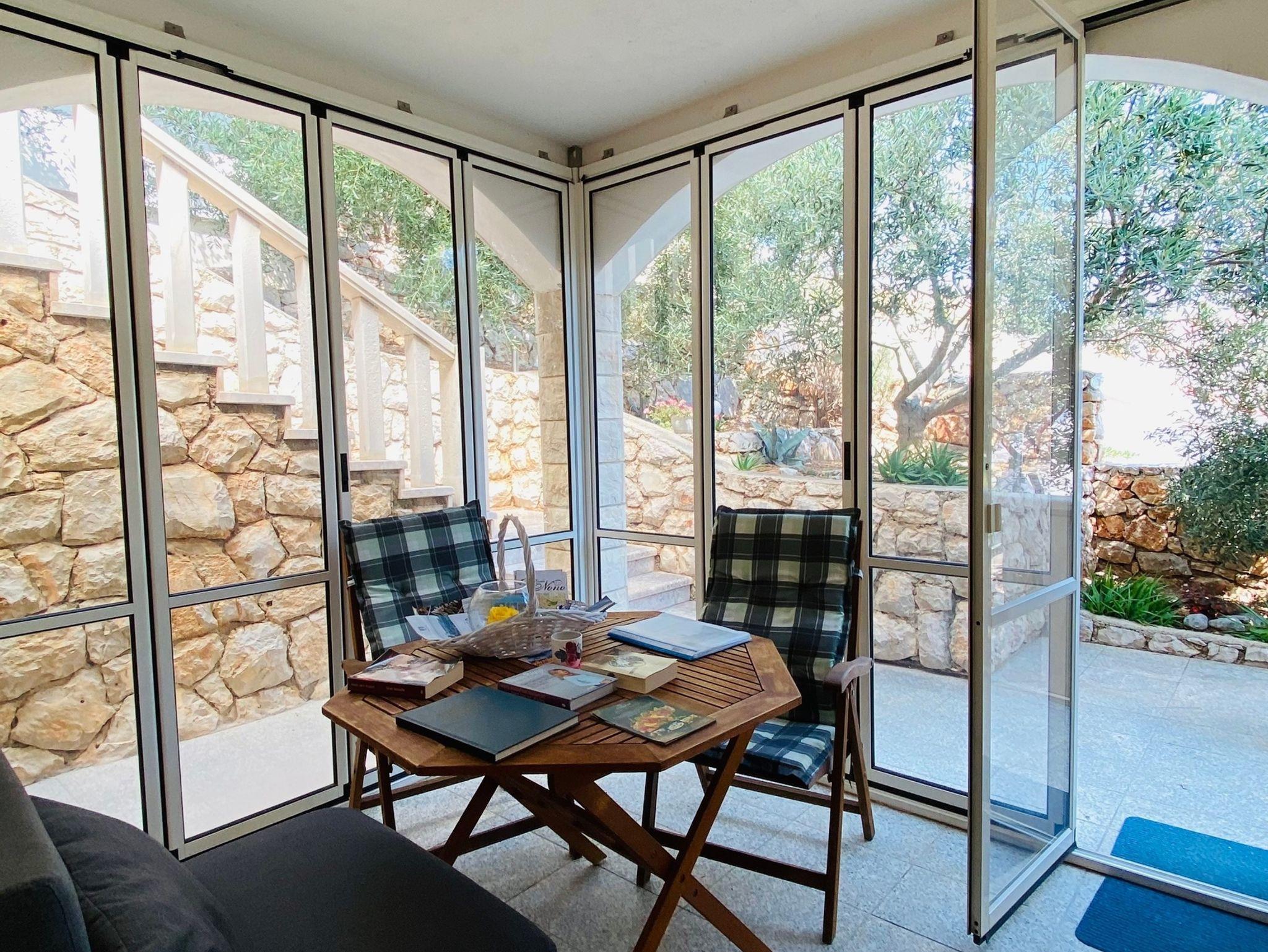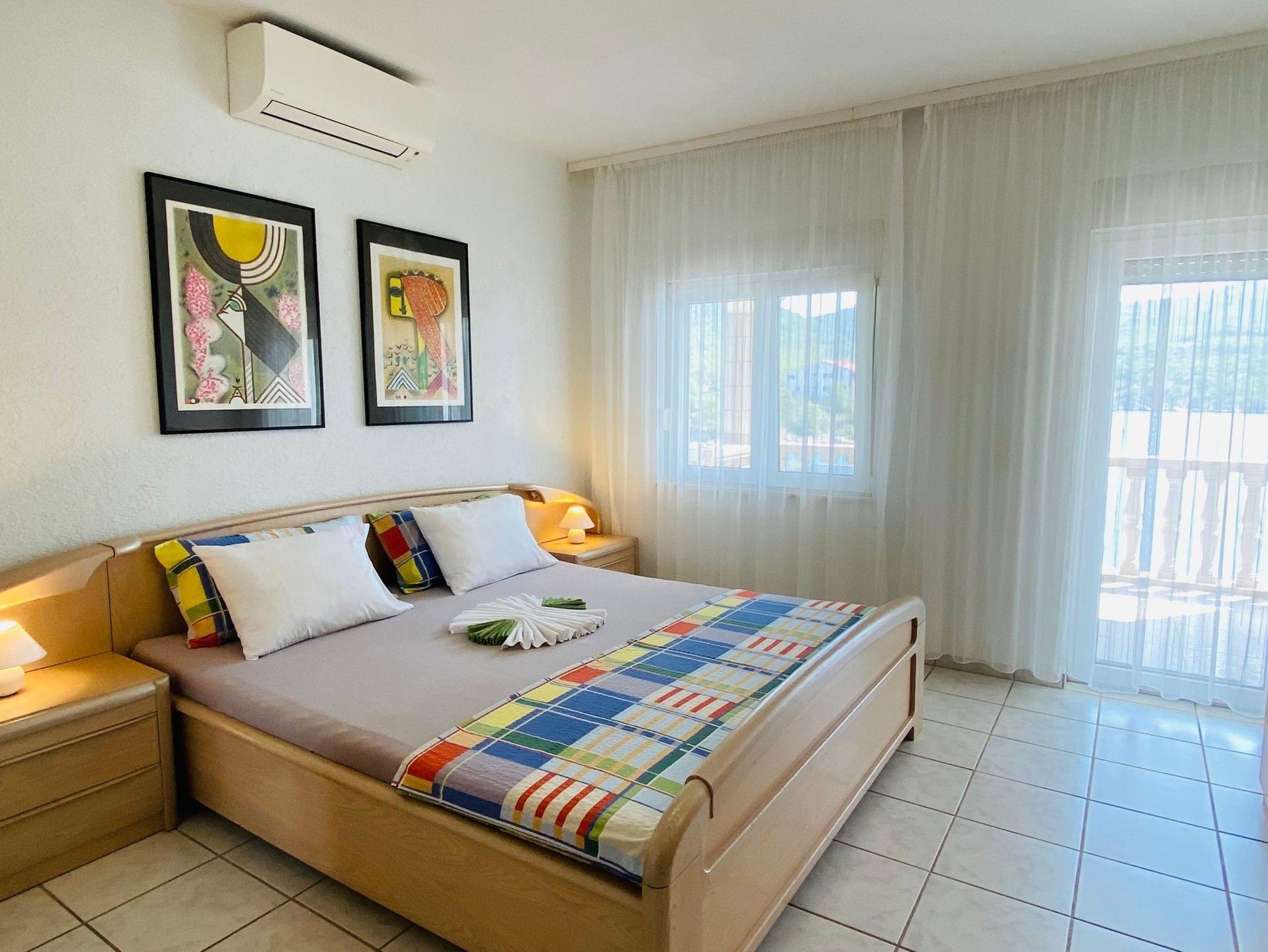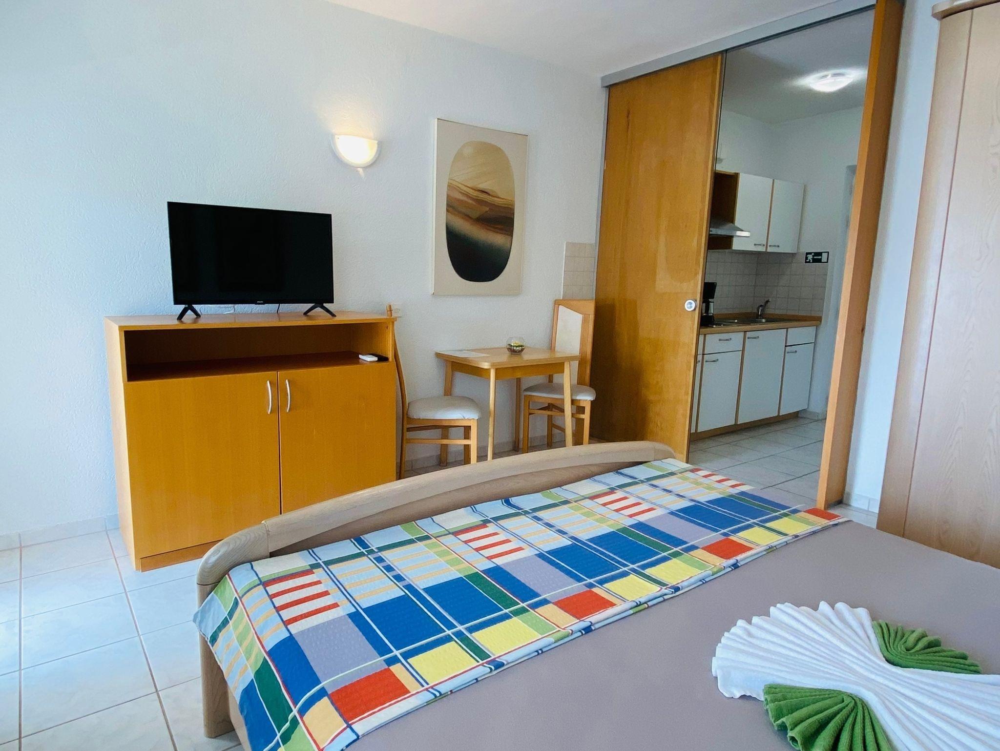 Ferienwohnung bietet Platz für 2 Gäste. Die Betten sind in Schlafzimmern, die es 1 gibt, innerhalb einer Gesamtfläche von 26m2, angeordnet. Die Gäste haben eine eigene Terrasse zur Verfügung, auf der sie in warmen Sommernächten genießen können. Das Apartment bietet Meerblick. Es ist erlaubt, Speisen auf dem Gemeinschafts-Grill vorzubereiten. Während ihres Aufenthalts können Gäste das gemeinsam zur Nutzung stehende Schwimmbad benutzen. In der Unterkunftseinheit besteht die Möglichkeit des Mitbringens von Haustieren, und die Dienstleistung ist im Preis der Unterkunft enthalten. IM PREIS INBEGRIFFEN: Kurtaxe, Endreinigung, Klimatisierung, Pool, Parkplatz, Internet, Wäschewaschen, Haustiere, Liegestühle, 1 Bett für Kinder (im Preis enthalten). Die Verfügbarkeit zusätzlicher Dienstleistungen in Ihrem reservierten Termin und die Preise derselben (falls nicht aufgeführt) müssen im Voraus überprüft werden. Zusätzliche Dienstleistungen die in der Zahlungsaufforderung nicht aufgeführt sind werden direkt beim Vermieter bezahlt, angenommen der Gast nutzt auch diese. Ermäßigung auf den Grundpreis: Gratistag 14=13 (bei einem Aufenthalt von 14 Tagen oder mehr erhalten Sie einen Gratistag für den Aufenthalt bis 31.12.26).