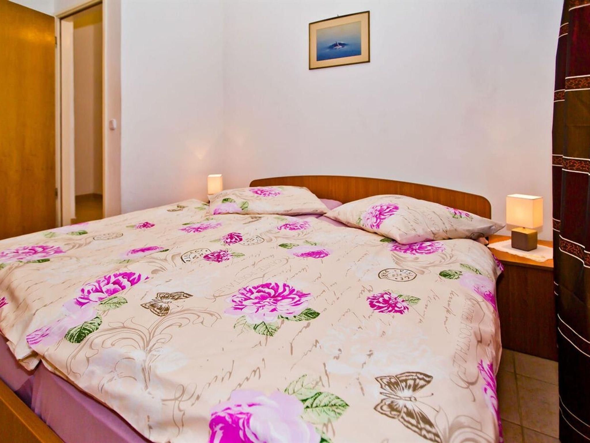 Ferienwohnung bietet Platz für 2 Gäste. Die Betten sind in Schlafzimmern, die es 1 gibt, innerhalb einer Gesamtfläche von 44m2, angeordnet. Die Gäste haben einen eigenen Balkon zur Verfügung, auf der sie in warmen Sommernächten genießen können. Das Apartment bietet Meerblick. IM PREIS INBEGRIFFEN: Kurtaxe, Endreinigung, Klimatisierung, Parkplatz, Internet, Bügeleisen, Bügelbrett, Föhn. VERBINDLICHE ZUSÄTZLICHE KOSTEN: Aufzahlung für Kurzaufenthalte (prozentualer Zuschlag pro Nächtigungsanzahl: 30% - 1, 20% - 2, 10% - 3). Die Verfügbarkeit zusätzlicher Dienstleistungen in Ihrem reservierten Termin und die Preise derselben (falls nicht aufgeführt) müssen im Voraus überprüft werden. Zusätzliche Dienstleistungen die in der Zahlungsaufforderung nicht aufgeführt sind werden direkt beim Vermieter bezahlt, angenommen der Gast nutzt auch diese.