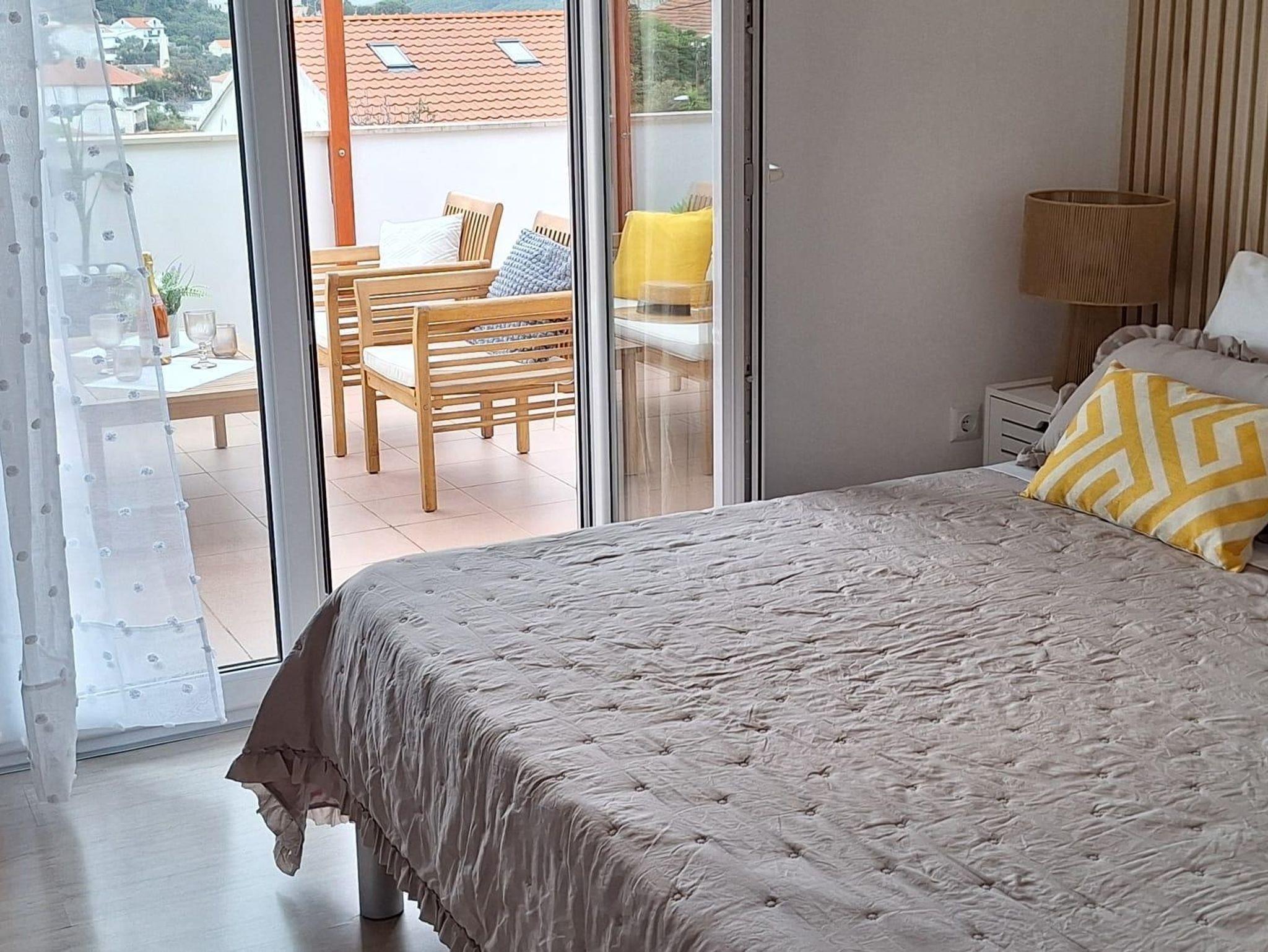 Zimmer bietet Platz für 2 Gäste. Die Betten sind in Schlafzimmern, die es 1 gibt, innerhalb einer Gesamtfläche von 16m2, angeordnet. Die Gäste haben eine eigene Terrasse zur Verfügung, auf der sie in warmen Sommernächten genießen können. Das Zimmer bietet Meerblick. Die reservierte Unterkunftseinheit ist ein Zimmer mit eigenem Badezimmer ohne die Möglichkeit der Nutzung einer Küche. IM PREIS INBEGRIFFEN: Kurtaxe, Endreinigung, Klimatisierung, Parkplatz, Internet, Kinderbett, Bügeleisen, Bügelbrett, Föhn. VERBINDLICHE ZUSÄTZLICHE KOSTEN: Aufzahlung für Kurzaufenthalte (prozentualer Zuschlag pro Nächtigungsanzahl: 30% - 1, 20% - 2, 10% - 3). Die Verfügbarkeit zusätzlicher Dienstleistungen in Ihrem reservierten Termin und die Preise derselben (falls nicht aufgeführt) müssen im Voraus überprüft werden. Zusätzliche Dienstleistungen die in der Zahlungsaufforderung nicht aufgeführt sind werden direkt beim Vermieter bezahlt, angenommen der Gast nutzt auch diese.