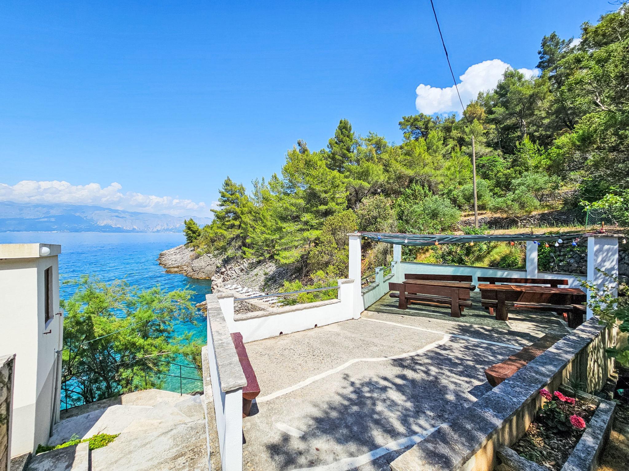 Apartment block "Octopus". 37 km from the centre of Jelsa, in a secluded, quiet, sunny position on a slope, from the sea, 10 m from the beach. For shared use: property 1'500 m2. Terrace (50 m2), garden furniture, barbecue house, children's playground (slide, swing). In the house: internet access, washing machine. Parking at the house on the premises. Shop 3.3 km, bus stop 29.1 km, pebble beach, shingle beach 10 m. Please note: private mooring, on request. The owner lives in the same residence. The tap water has no drinking water quality.