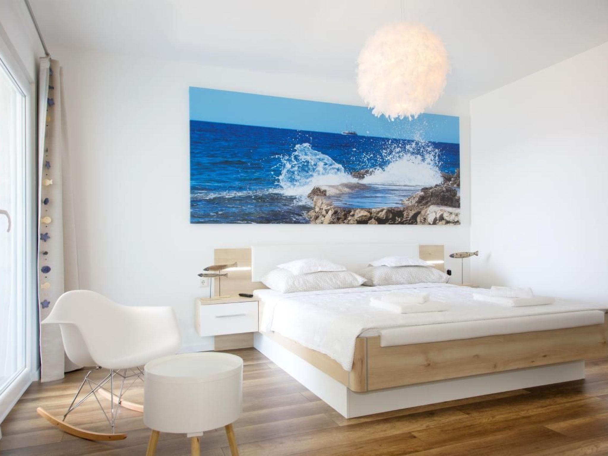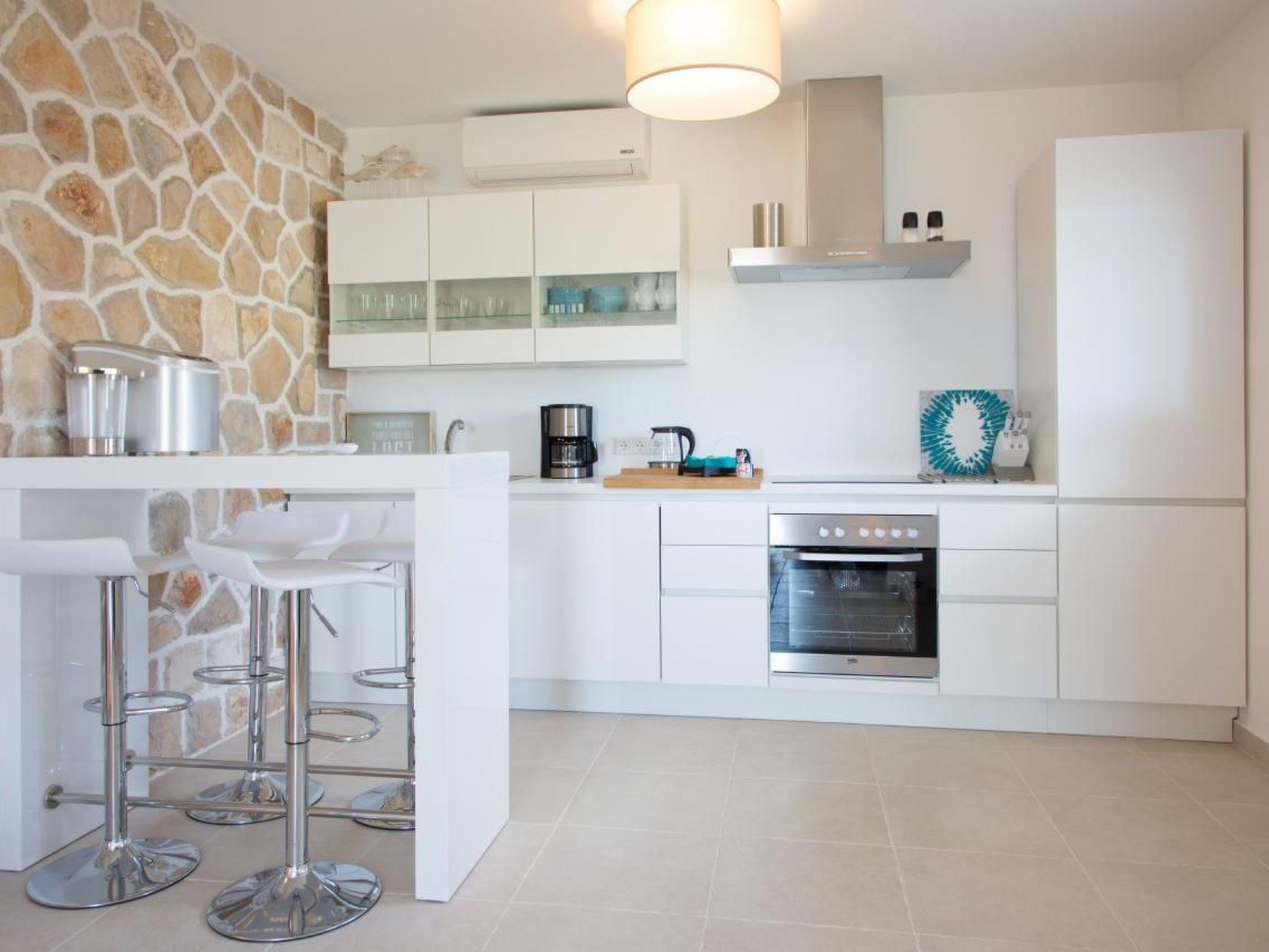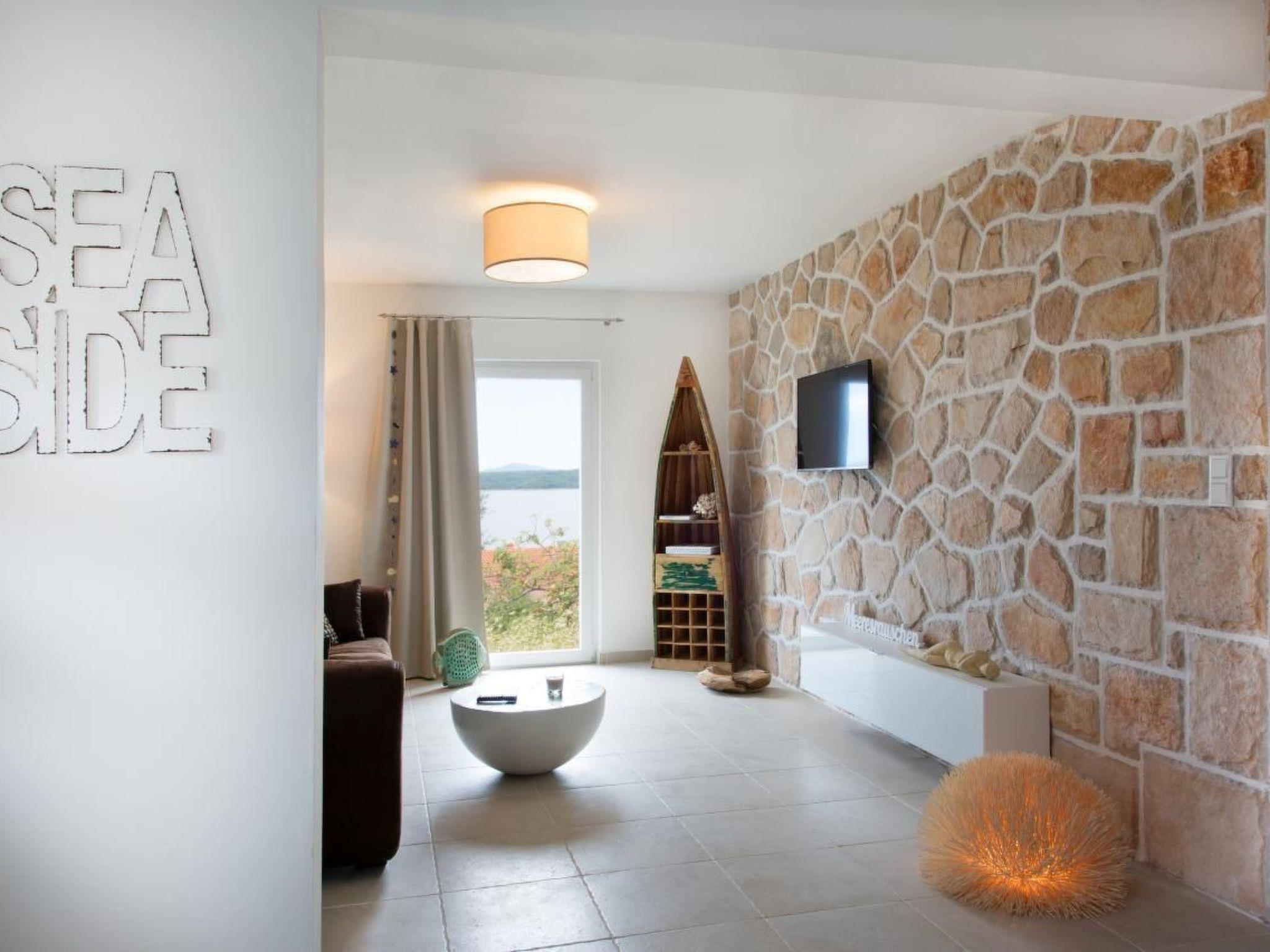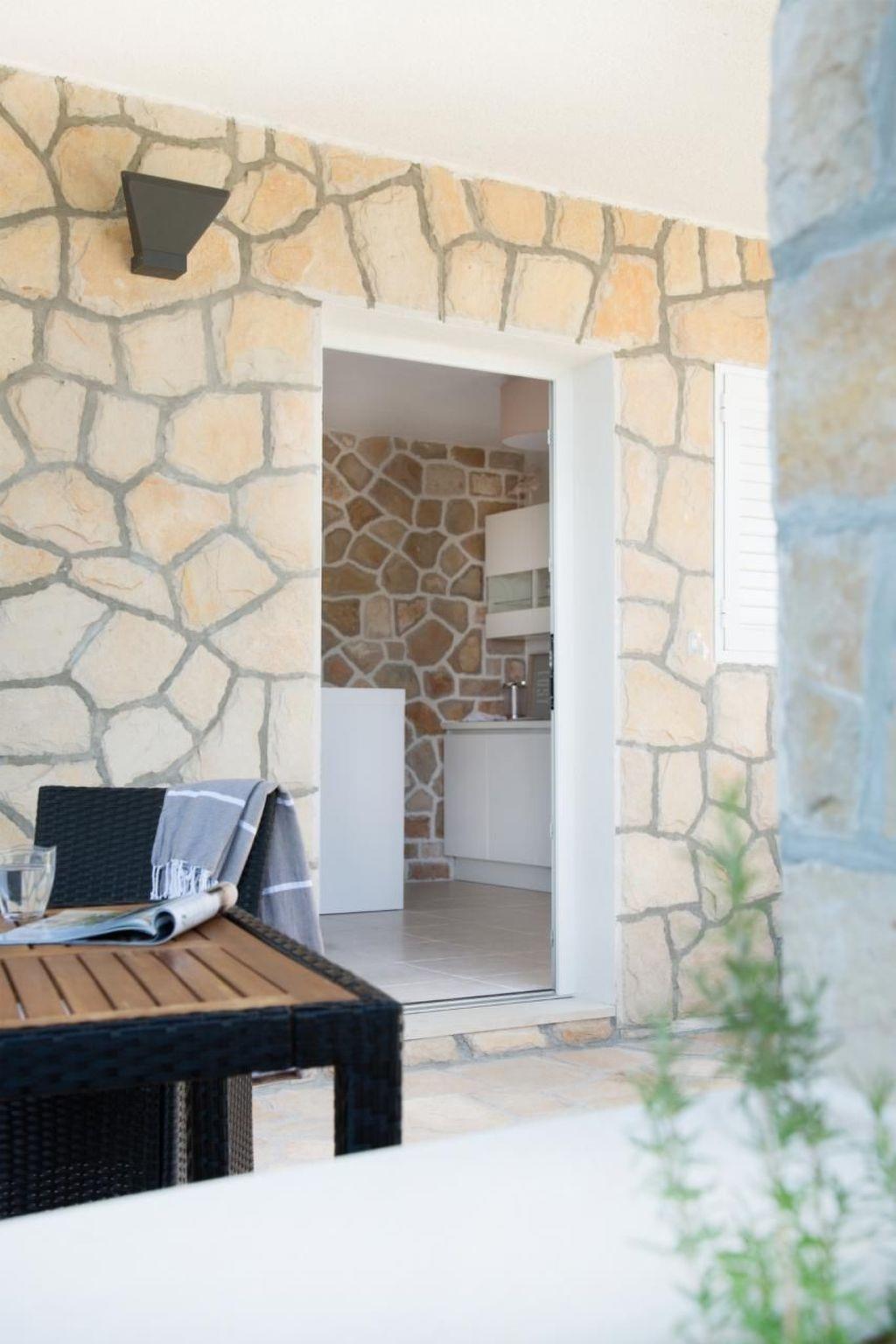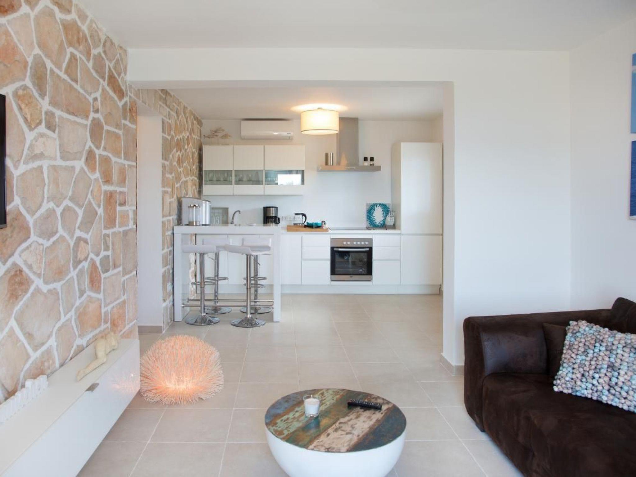The luxurious Seaside Zavala holiday flat has 2 bedrooms with double beds, TV and great sea views. One bedroom has a balcony. There is a bathroom with WC inside and a separate bathroom and WC outside, which can be reached via the terrace.