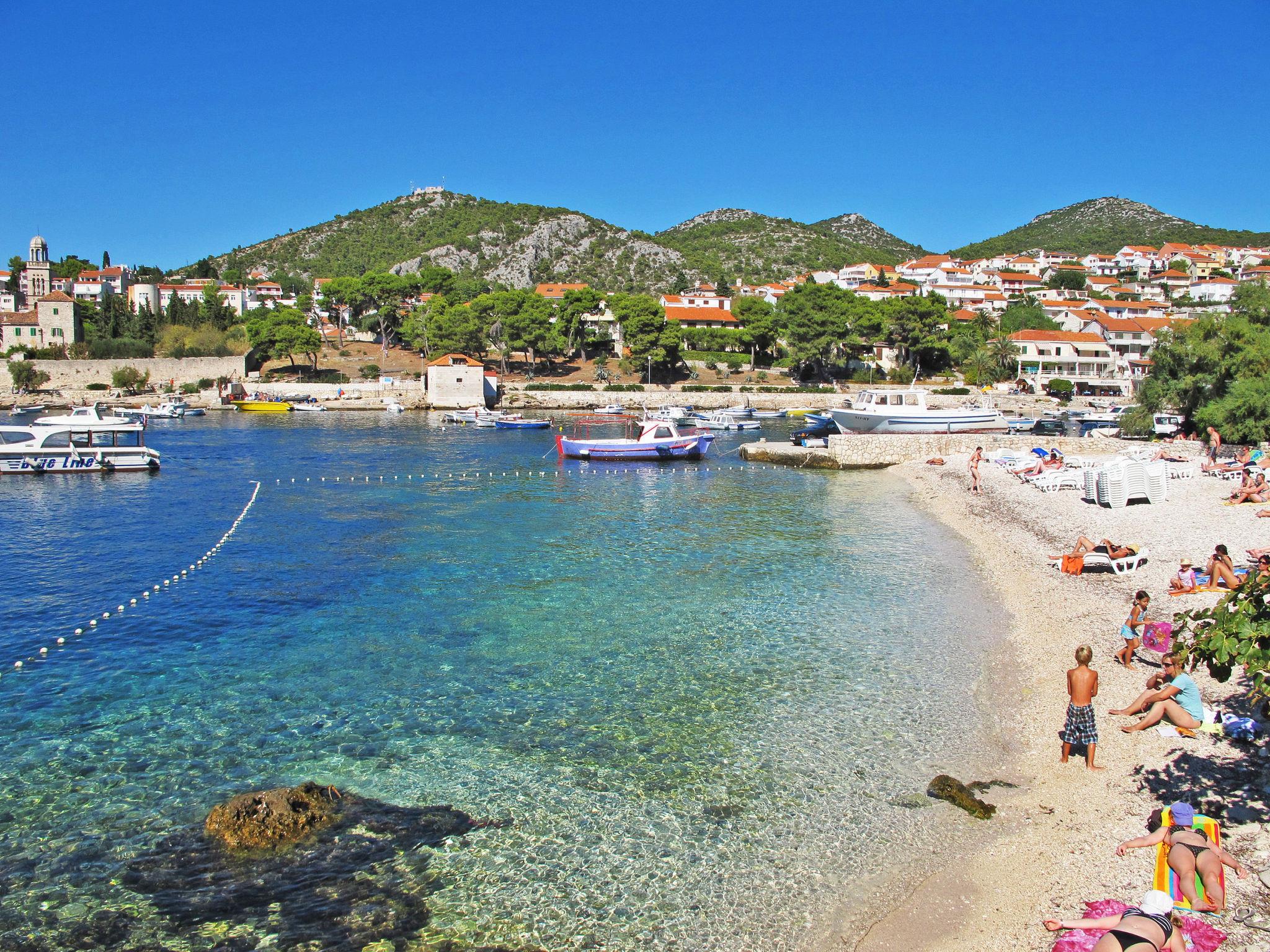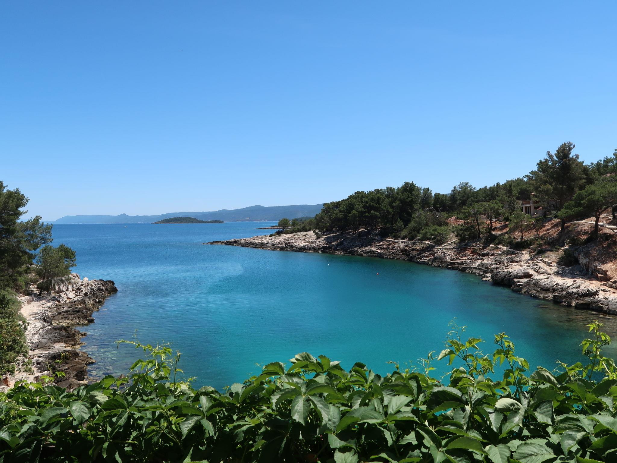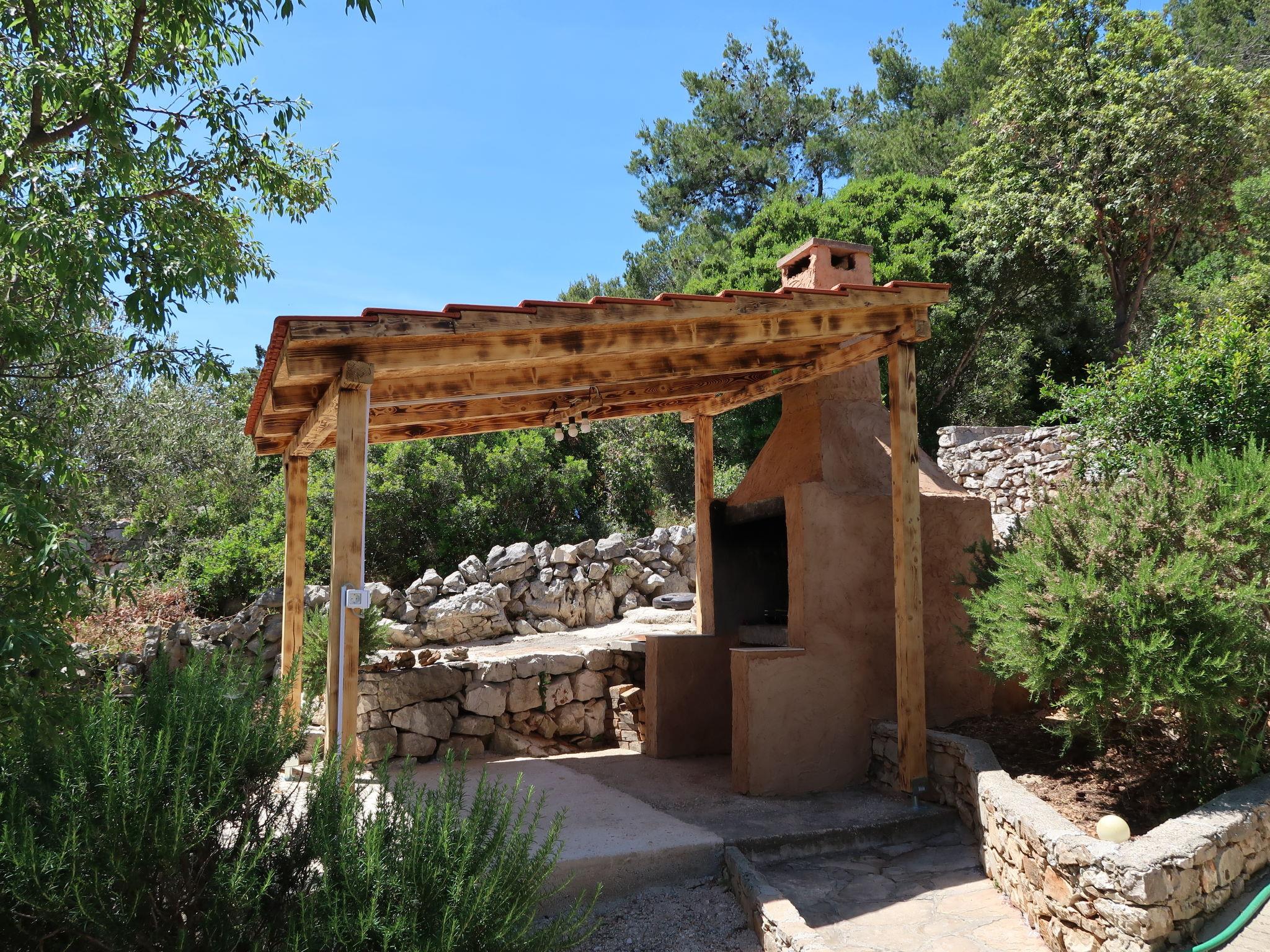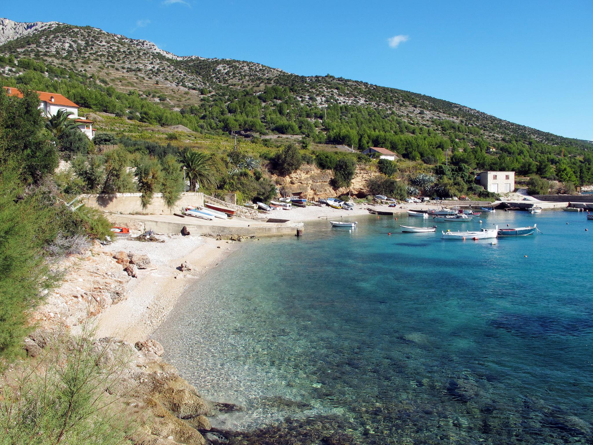 Apartment house "Buda". 400 m from the centre of Bašina, 4 km from the centre of Vrboska, 10 km from the centre of Starigrad, from the sea, 10 m from the beach, in a cul-de-sac. For shared use: property 1'500 m2 with trees. Barbecue. In the house: internet access. 300 m long narrow motor access. Parking on the premises. Shop 4 km, supermarket 10 km, bus stop 77 km, ferry 10 km, rocky beach, concrete beach 10 m. Please note: airfield 77 km from the property. Access to the beach via steps.