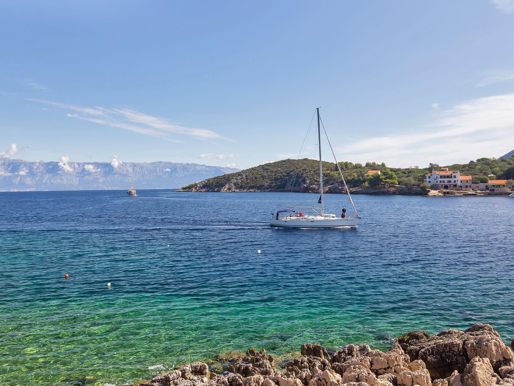 Apartment house "Rubin". 4 km from the centre of Zastražišce, in a quiet, sunny position, 10 m from the sea, 10 m from the beach. For shared use: property 1'000 m2. Barbecue. In the house: internet access, bicycle rental. Parking at the house on the premises. Shop 4 km, restaurant 15 km, bus stop 54.5 km, rocky beach, concrete beach 10 m. Please note: private mooring, on request. Motor-boat rental possible (on request, extra).