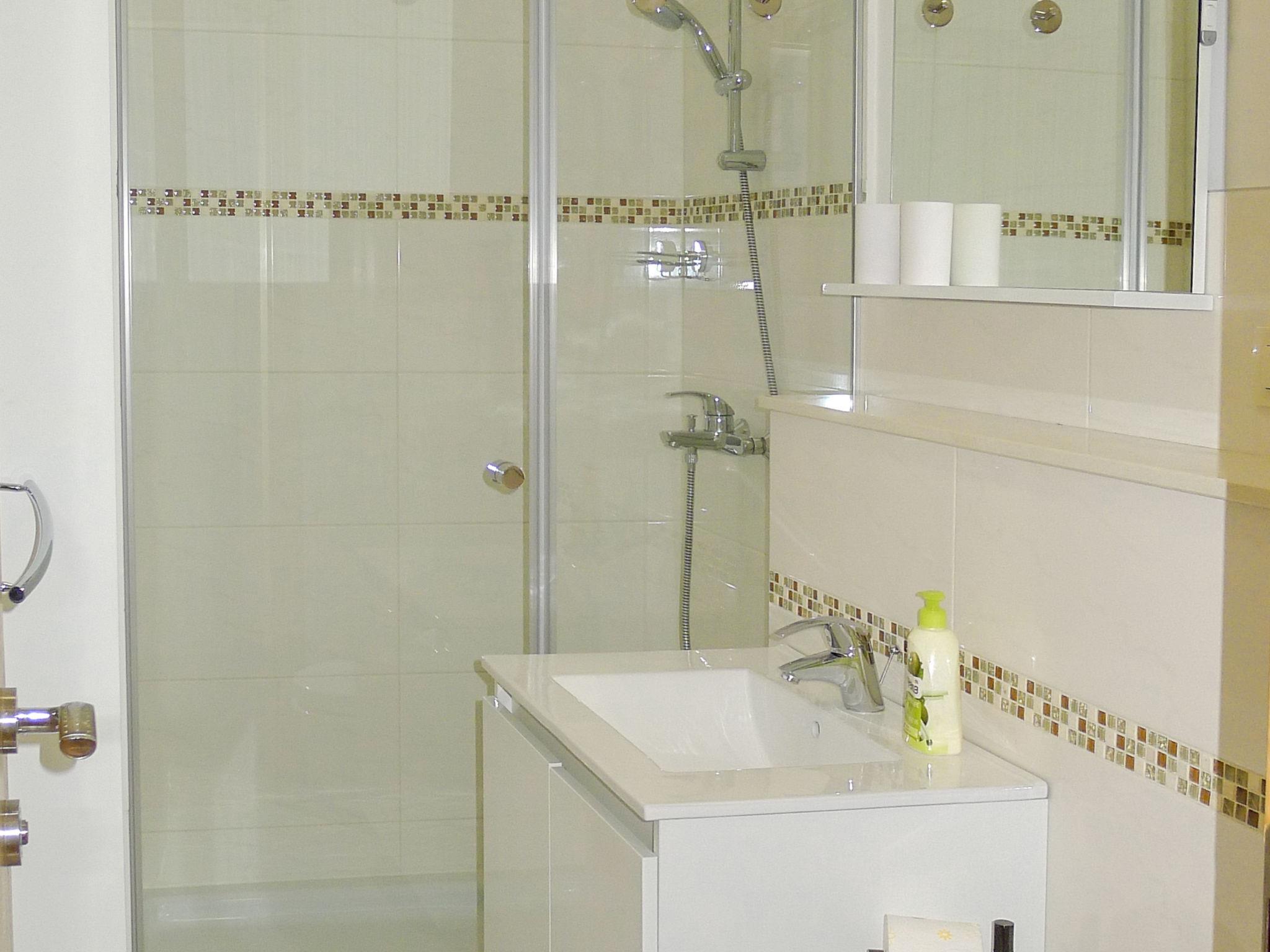 5-room semi-detached house 120 m2 on 2 levels, south facing position. Living/dining room with satellite TV (flat screen), air conditioning. Exit to the terrace. 1 room with 2 beds (90 cm, length 200 cm), shower/WC and air conditioning. Exit to the terrace. Open kitchen (oven, dishwasher, 4 ceramic glass hob hotplates, microwave, freezer). Shower/WC. Upper floor: living/dining room with satellite TV (flat screen), air conditioning. Exit to the terrace. 1 room with 2 beds (90 cm, length 200 cm), shower/WC and air conditioning. 1 room with 1 french bed (160 cm, length 200 cm), air conditioning. Open kitchen (oven, dishwasher, 4 ceramic glass hob hotplates, microwave, freezer). Shower/WC. Terrace 7 m2 partly roofed, terrace 5 m2 partly roofed. Terrace furniture, barbecue (portable), deck chairs. View of the swimming pool. Facilities: safe, baby cot, hair dryer. Internet (WiFi, free).